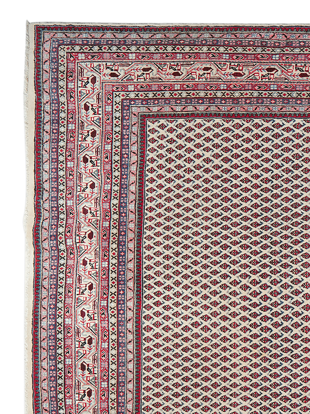 Le sarouk Le tapis vintage mesurant 324 x 222 cm est une expression d'un savoir-faire magistral et d'une histoire culturelle. Ces tapis sont connus pour leur tissage serré et leur utilisation de laine filée à la main, ce qui leur confère une texture et une durabilité uniques. Les designs sont souvent inspirés de la nature et du mode de vie des nomades Gashgai et Lori qui fabriquent ces tapis. Ils sont non seulement décoratifs mais aussi fonctionnels car ils apportent chaleur et confort à n'importe quelle pièce.