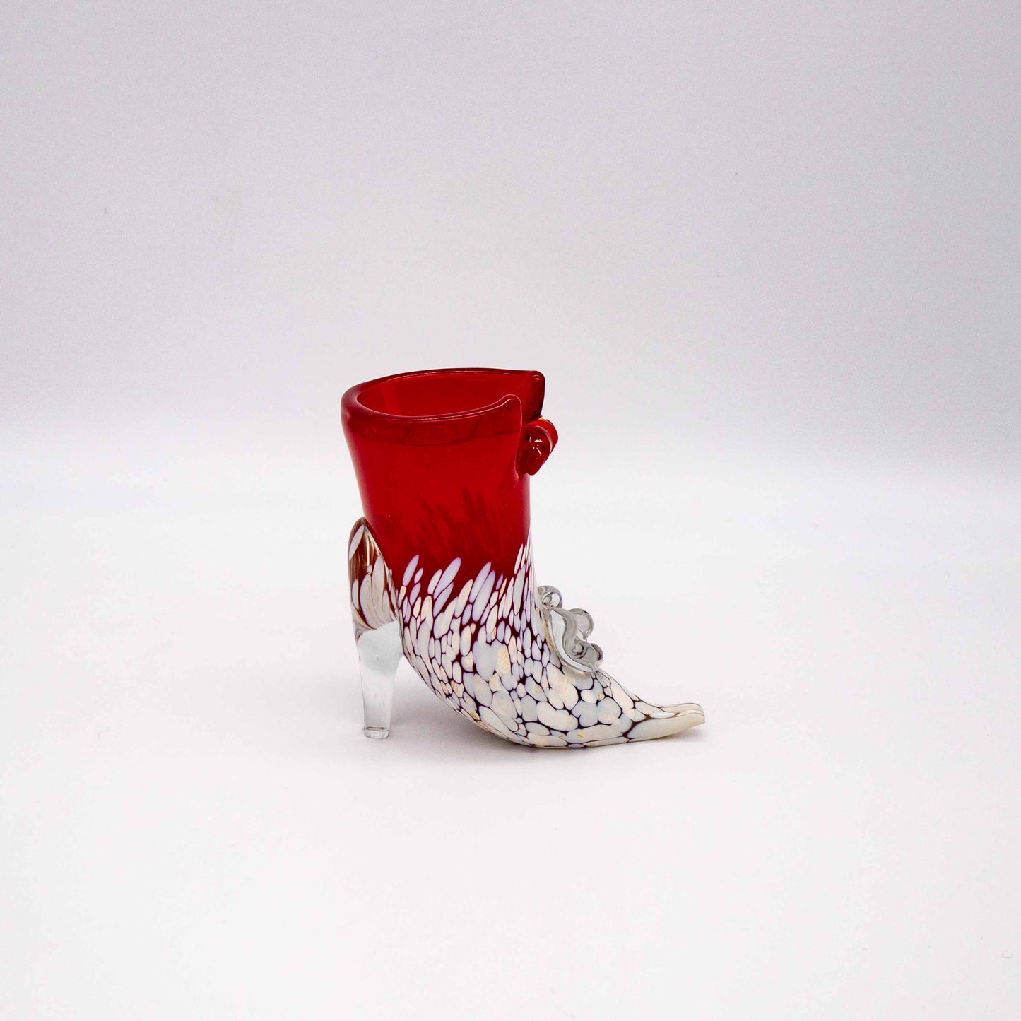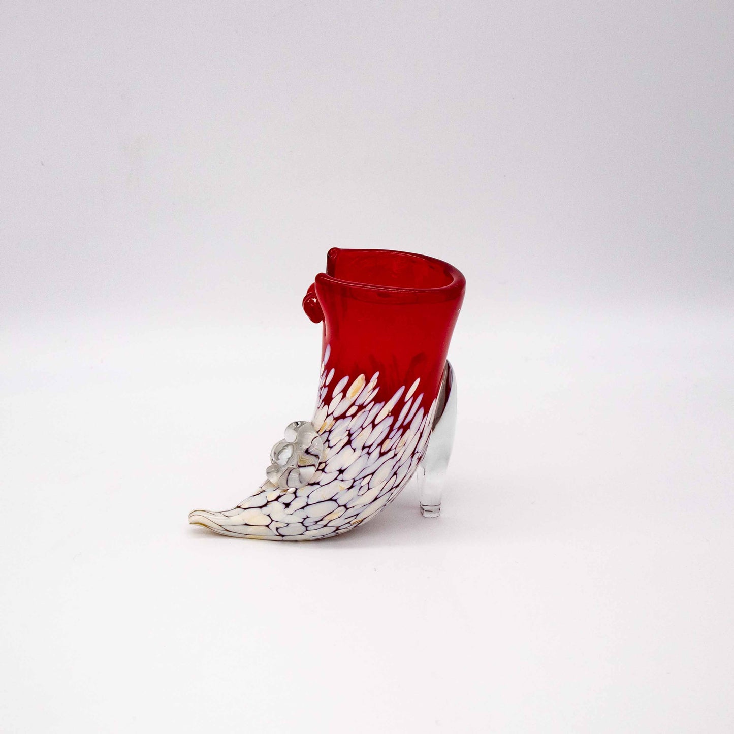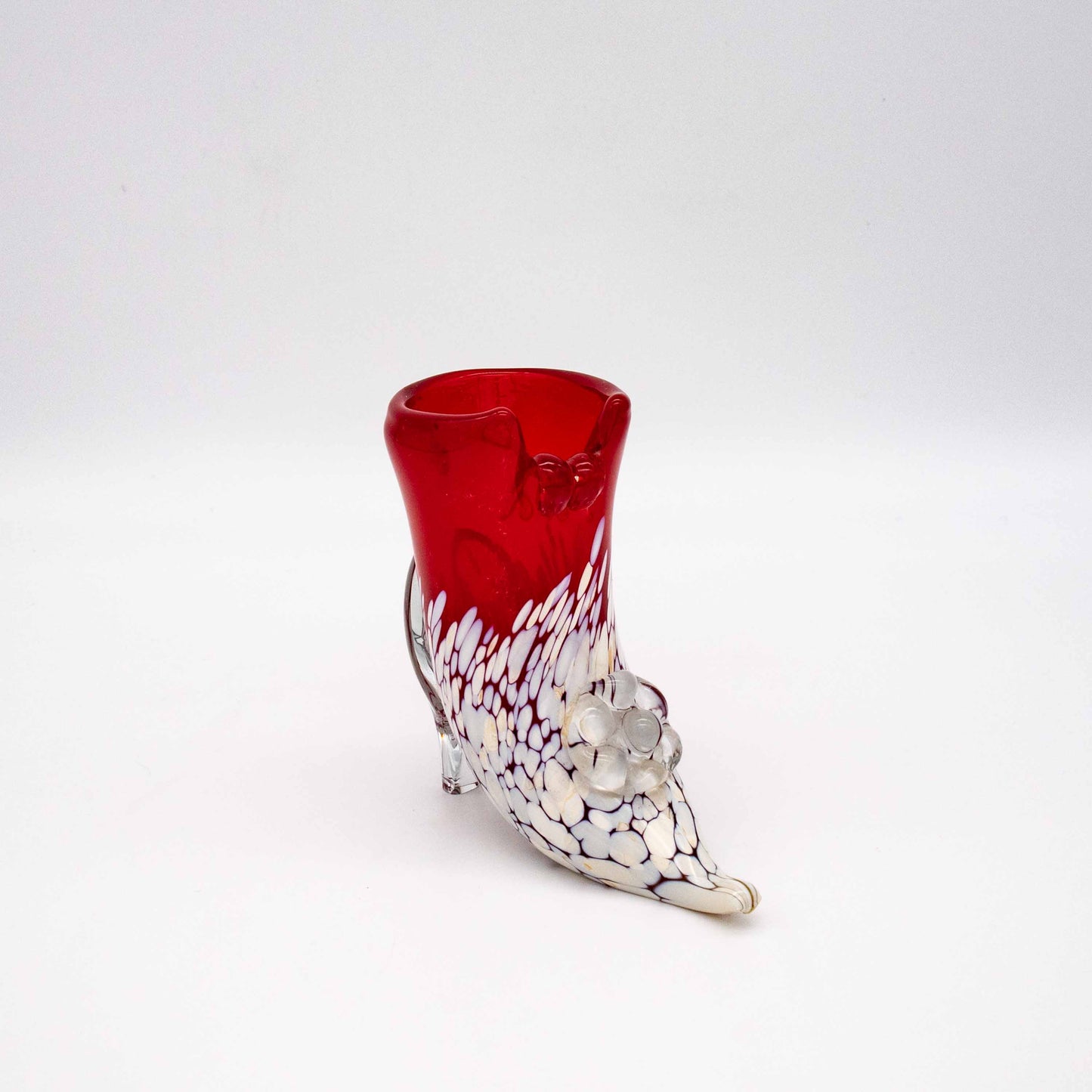 Le vase spécial en forme de chaussure a été créé dans les années 1950. Il a été produit par Ząbkowice Glas en Pologne et se caractérise par ses détails soignés.