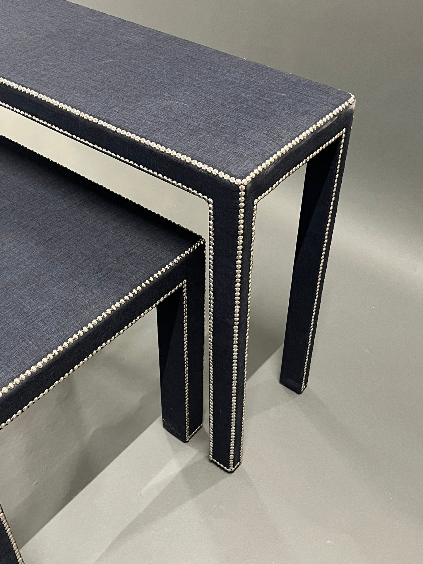 Un ensemble de trois tables d'appoint empilables au style résolument moderne du milieu du siècle. Des proportions élégantes, des lignes épurées et une touche futuriste. Idéales à côté d'un canapé, d'un fauteuil ou d'un lit. Elles offrent un espace pratique pour les livres, les lampes et les objets décoratifs. Utilisables individuellement ou ensemble, ces tables s'intègrent harmonieusement à tous les intérieurs. Un charme vintage sans ostentation. Une fabrication de haute qualité et un style intemporel. Un meuble pour ceux qui apprécient l'ordre et l'harmonie dans leur décoration. Ensemble, elles créent une topographie subtile qui met en valeur leur fonction sans dominer l'espace. Leur empilabilité permet un gain de place et une grande flexibilité au quotidien. Convient aussi bien aux petits espaces qu'aux grandes pièces.