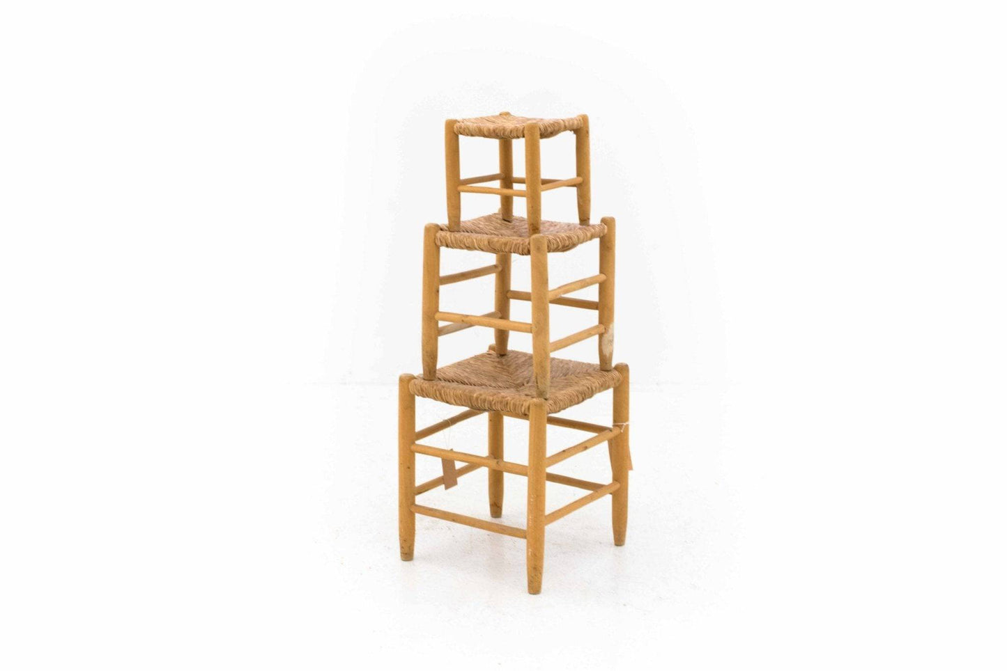 En savoir plus : Grand tabouret : Hauteur : 44 cm / Largeur : 38 cm / Profondeur : 39 cm Tabouret moyen : Hauteur : 35 cm / Largeur : 31 cm / Profondeur : 32 cm Petit tabouret : Hauteur : 25 cm / Largeur : 23 cm / Profondeur : 23 cm