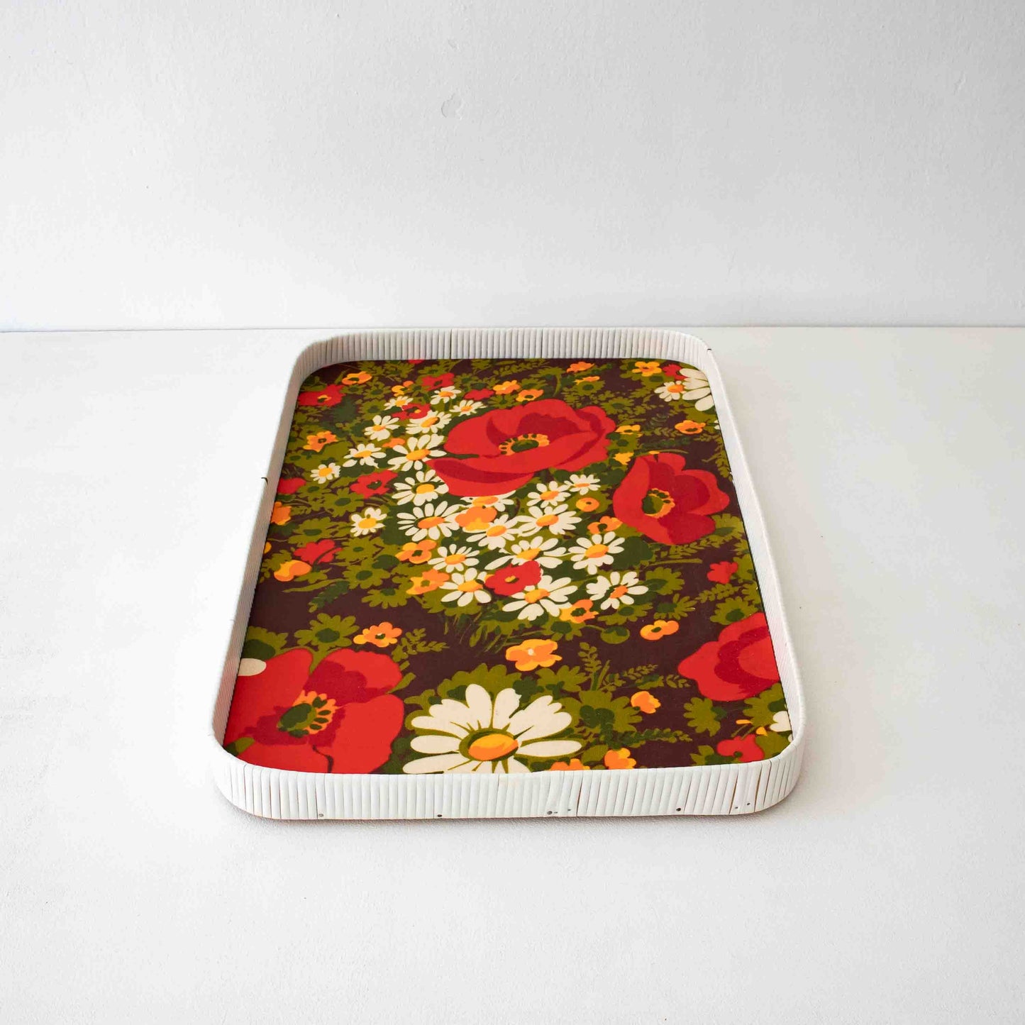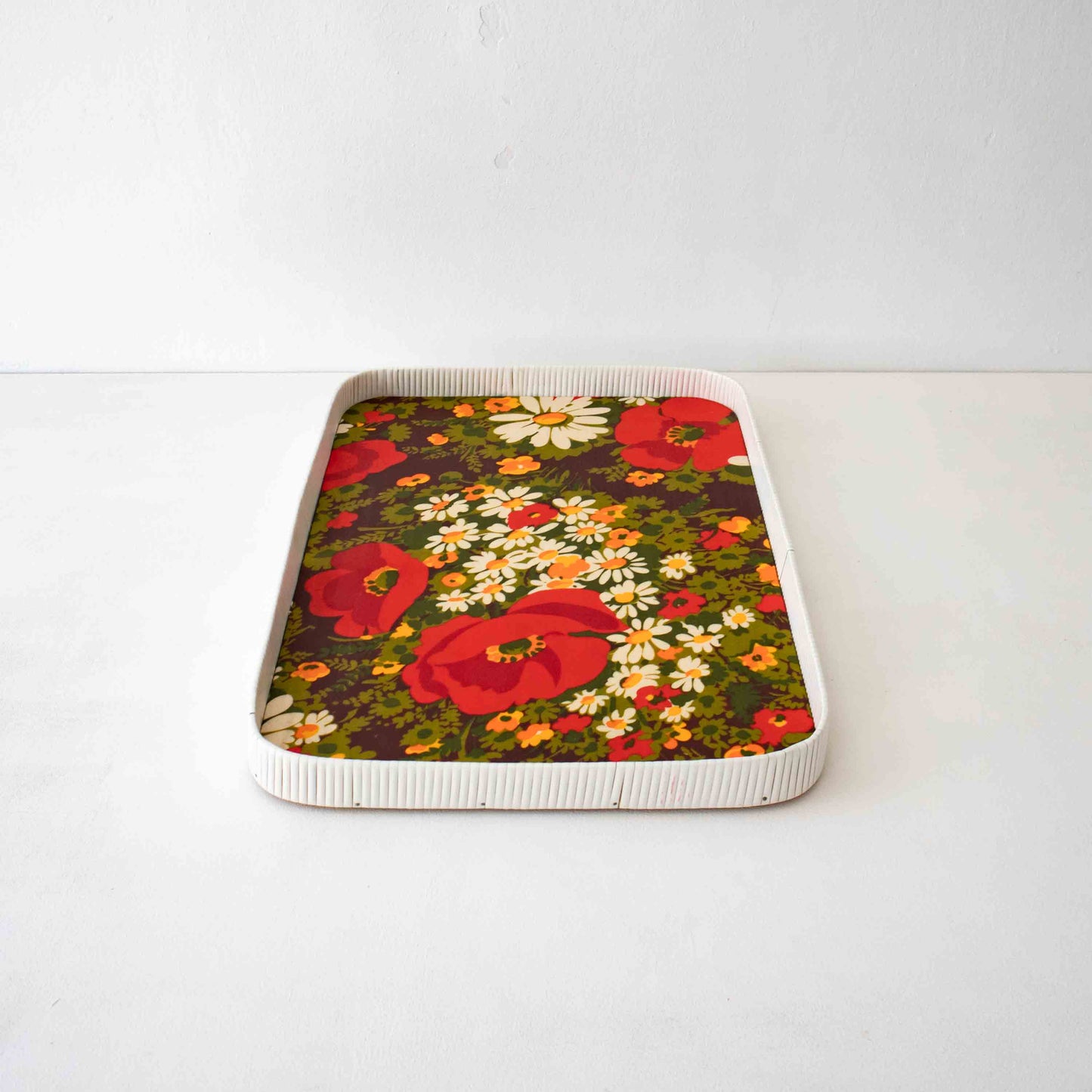 Plateau vintage avec décor floral en plastique