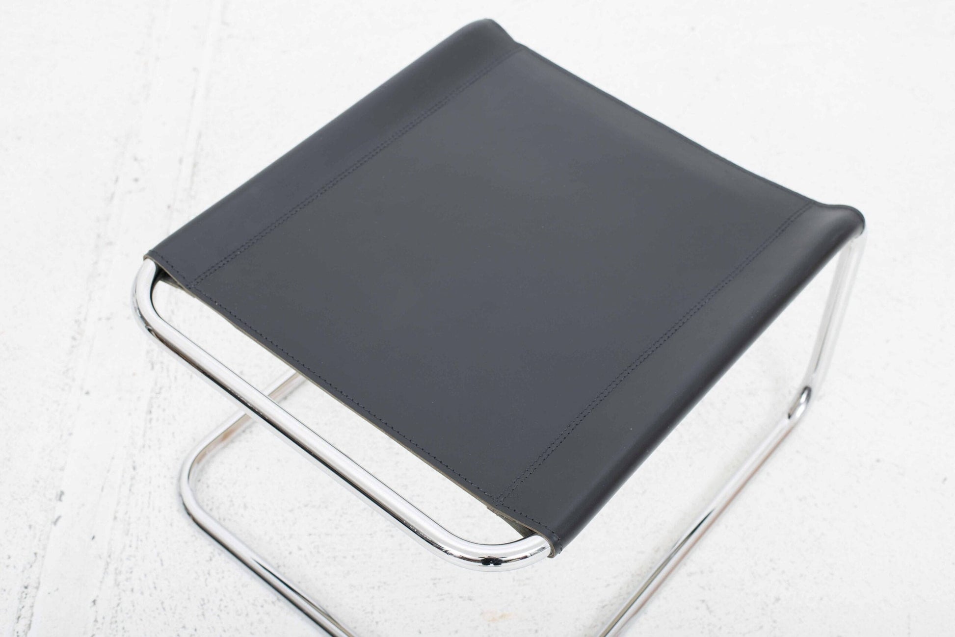Le fauteuil et le pouf assorti sont recouverts de cuir noir de haute qualité, offrant confort et esthétique intemporelle. Le prix comprend le fauteuil et le pouf, faisant de cet ensemble un atout précieux pour tout intérieur élégant. Laissez-vous inspirer par l'alliance de la fonctionnalité et du design et apportez une touche d'histoire du design à votre intérieur.