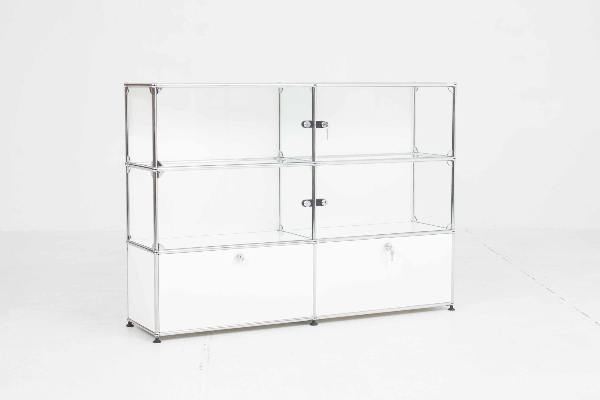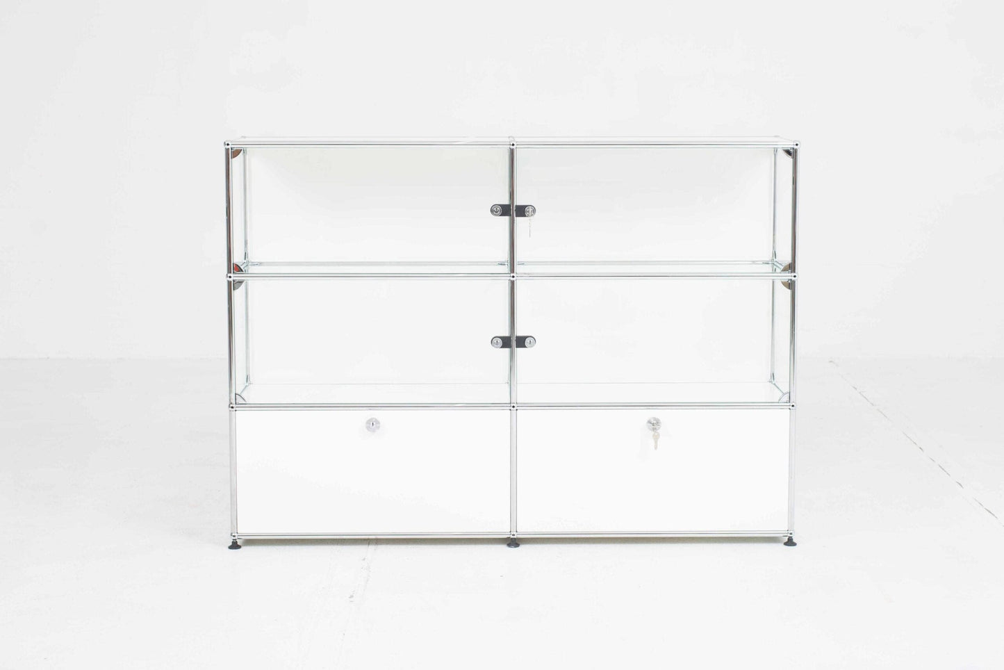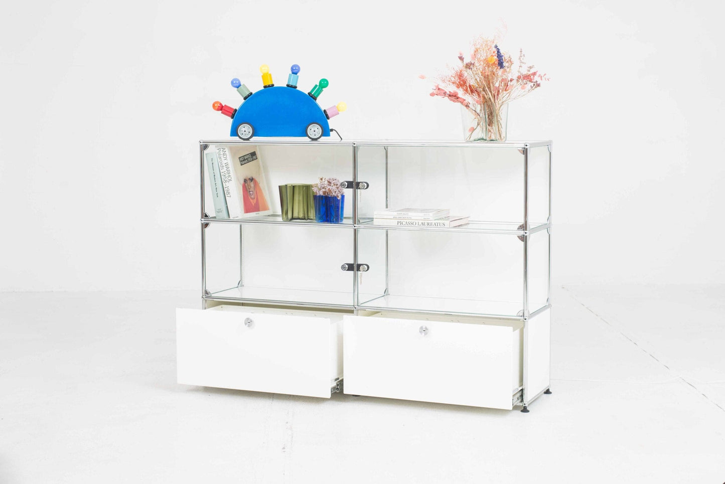Commode à tiroirs vintage USM par USM en verre blanc Mid Century Modern