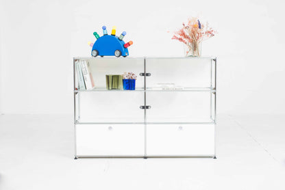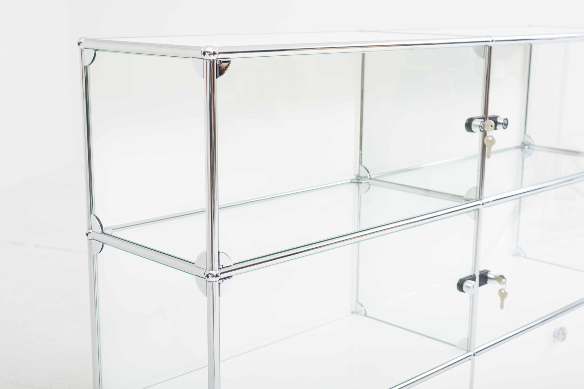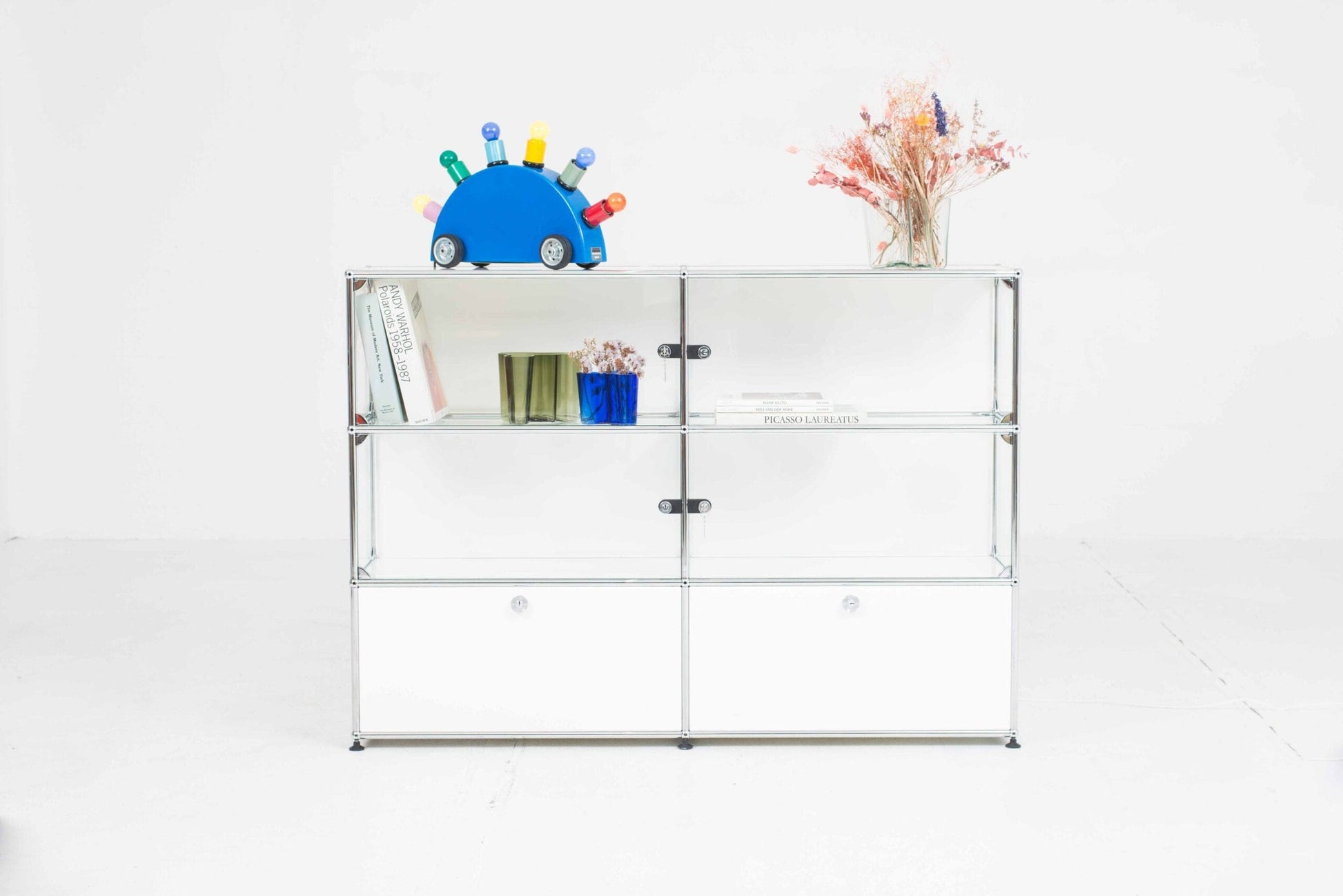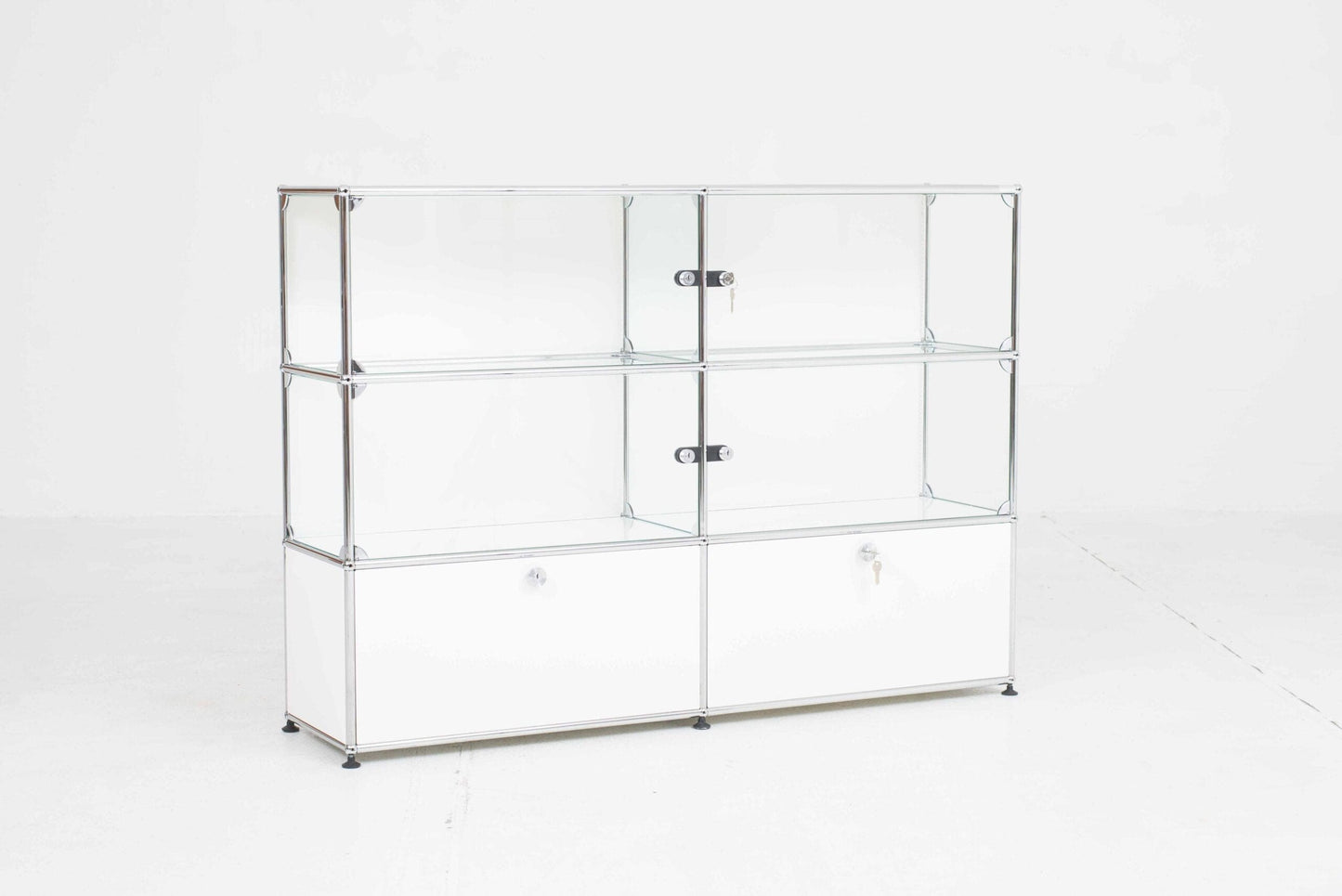Commode à tiroirs vintage USM par USM en verre blanc Mid Century Modern
