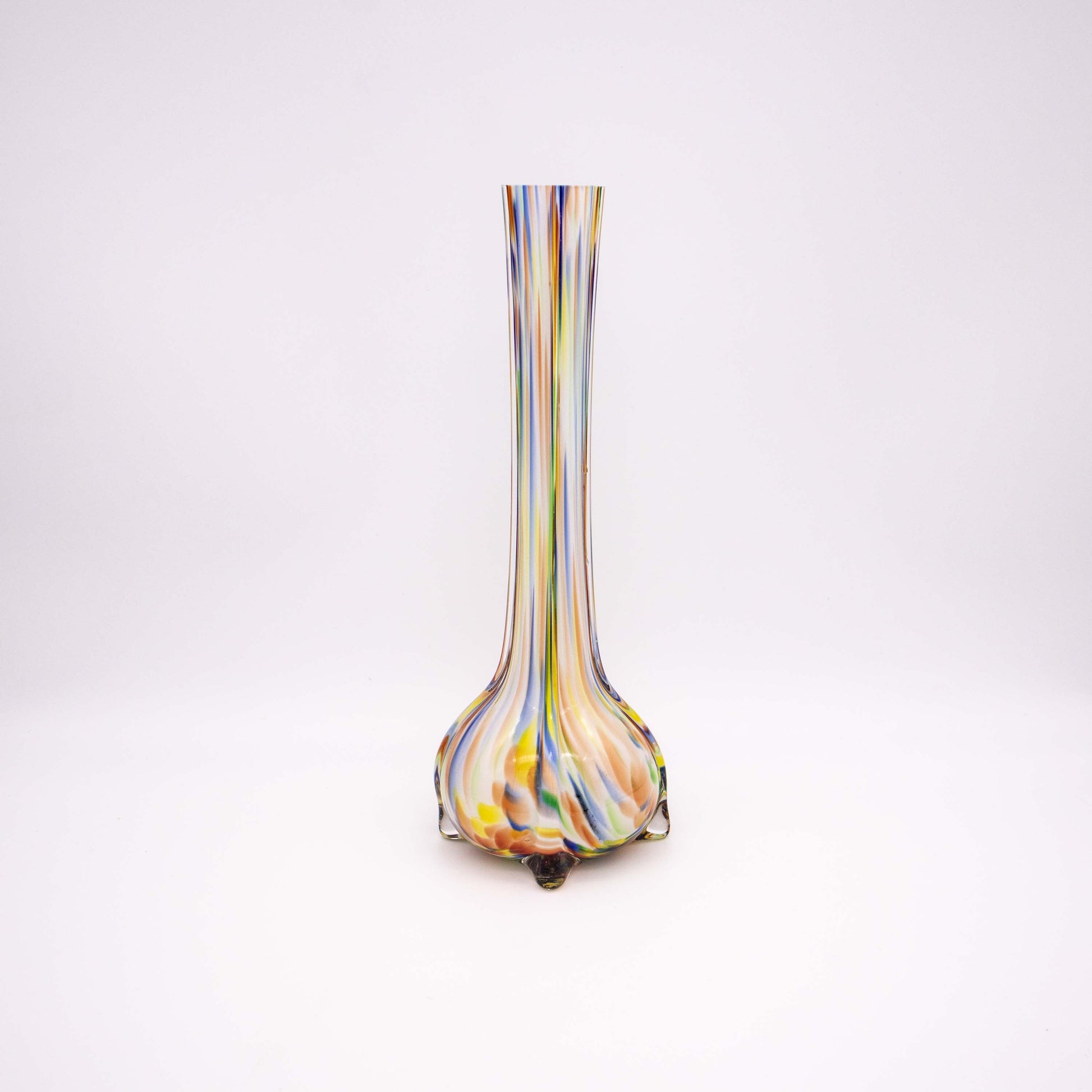 Le vase en verre opale avec des inclusions de verre colorées est entouré de verre transparent. C'est un point fort particulier pour tout amateur de vintage. Le vase a été créé dans la première moitié du 20e siècle et donne à chaque pièce une touche et un charme particuliers.