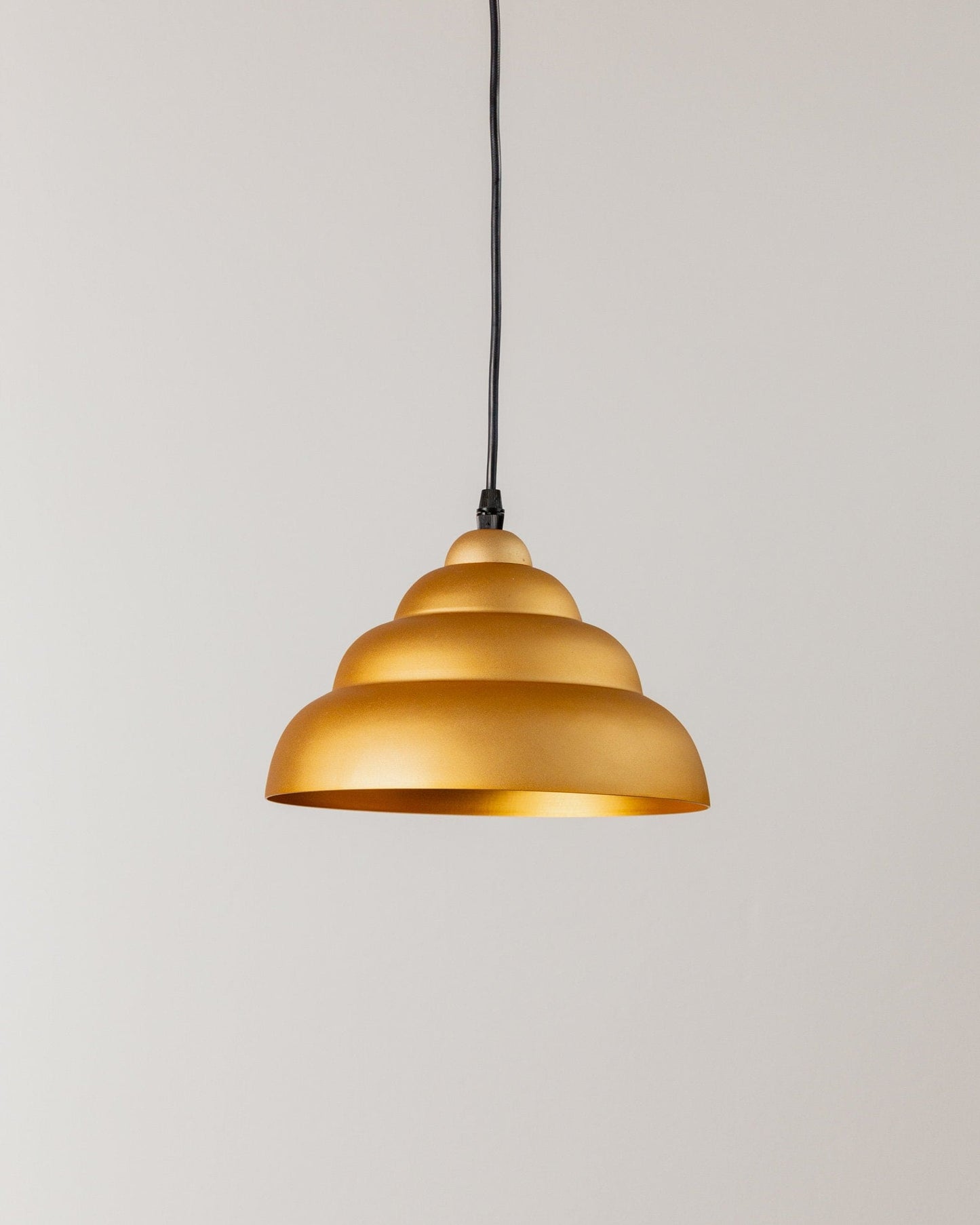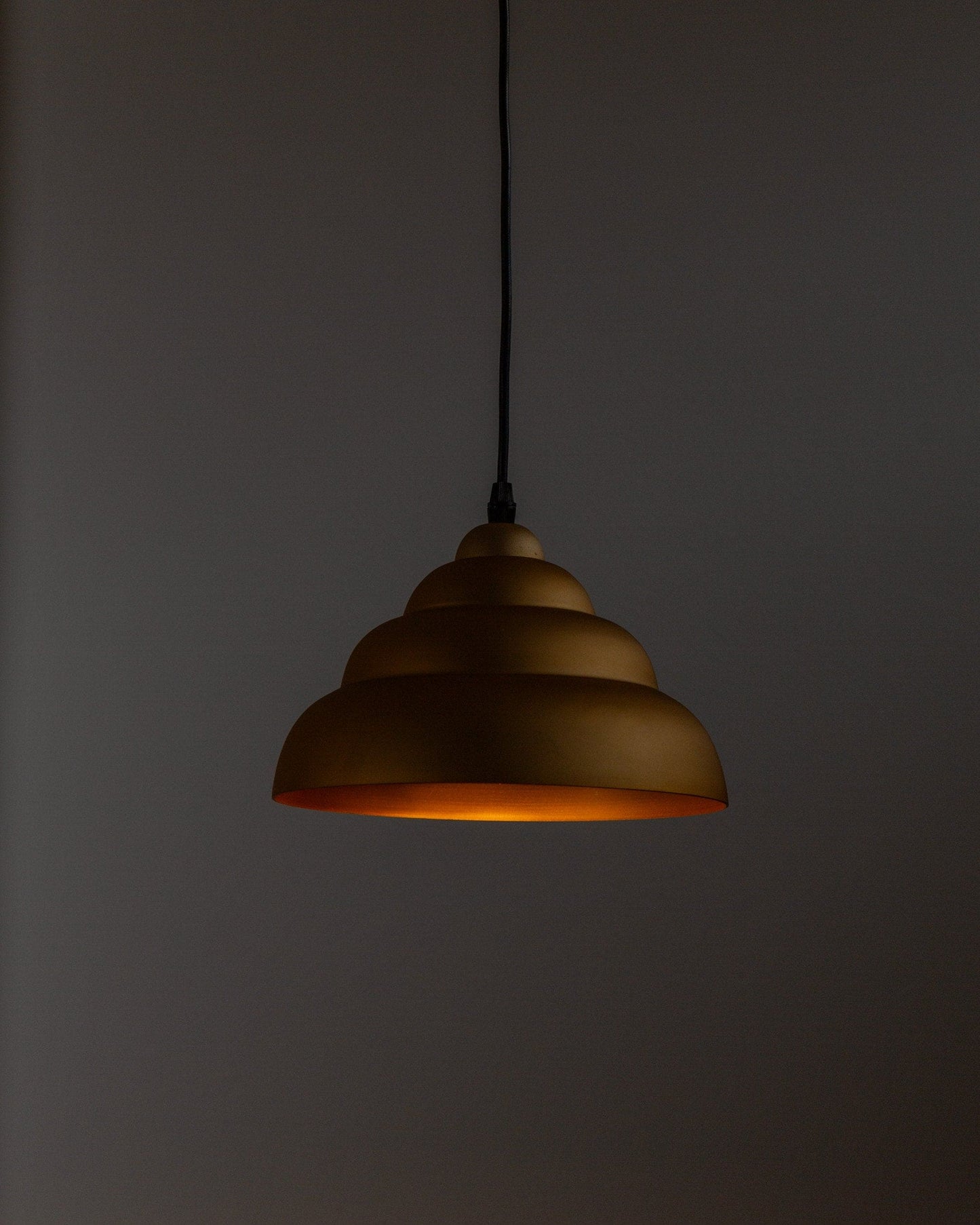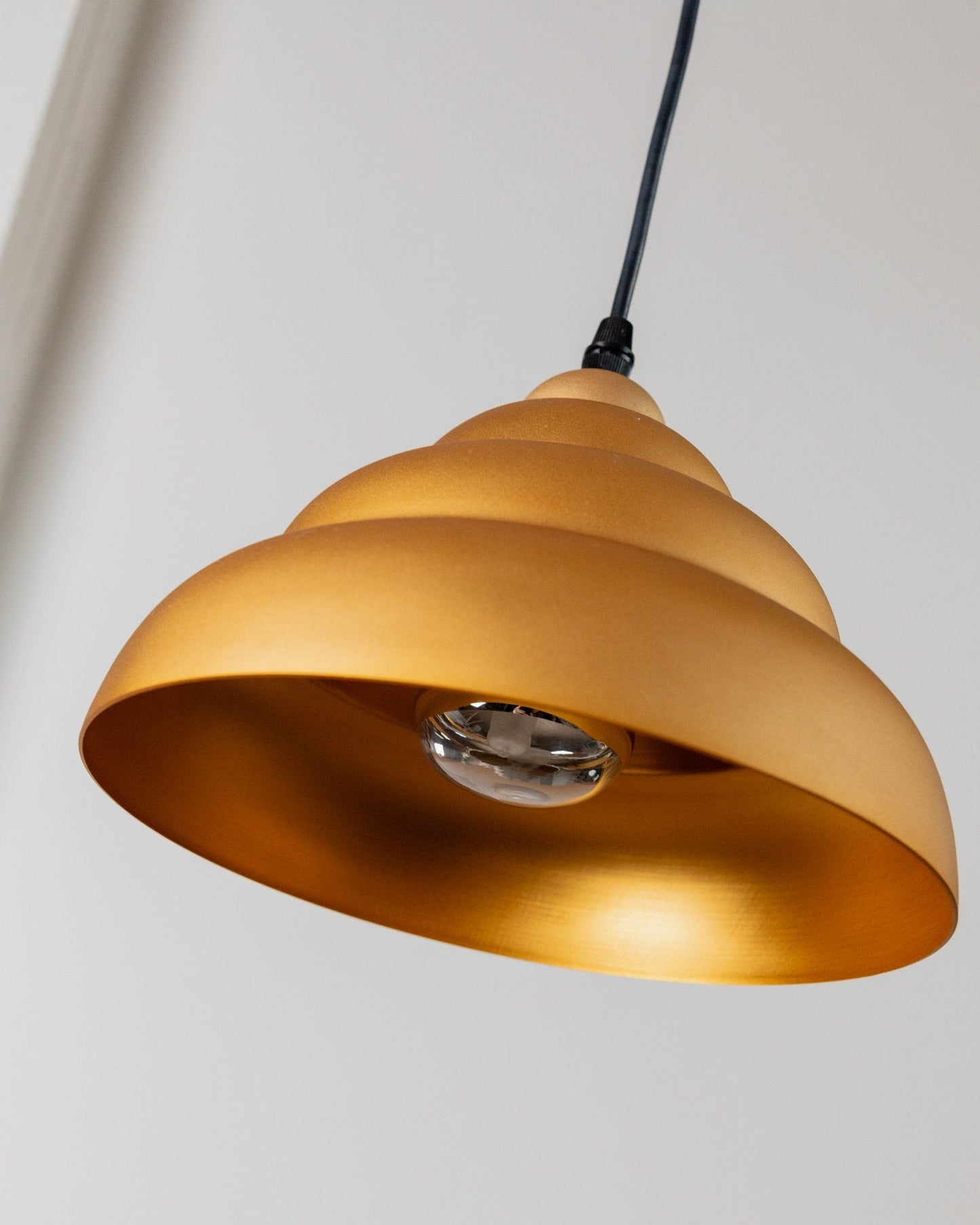 Ajoutez une touche vibrante à votre espace avec ce plafonnier en métal accrocheur des années 1980, inspiré du style postmoderne de Memphis. Cette lampe en or jaune vif avec un câble rayé ajoute une élégance ludique à n'importe quelle pièce et est parfaite pour les amateurs d'intérieurs rétro et pop art. Un élément d'éclairage unique et coloré qui constitue un excellent cadeau pour les fans du design des années 80.
