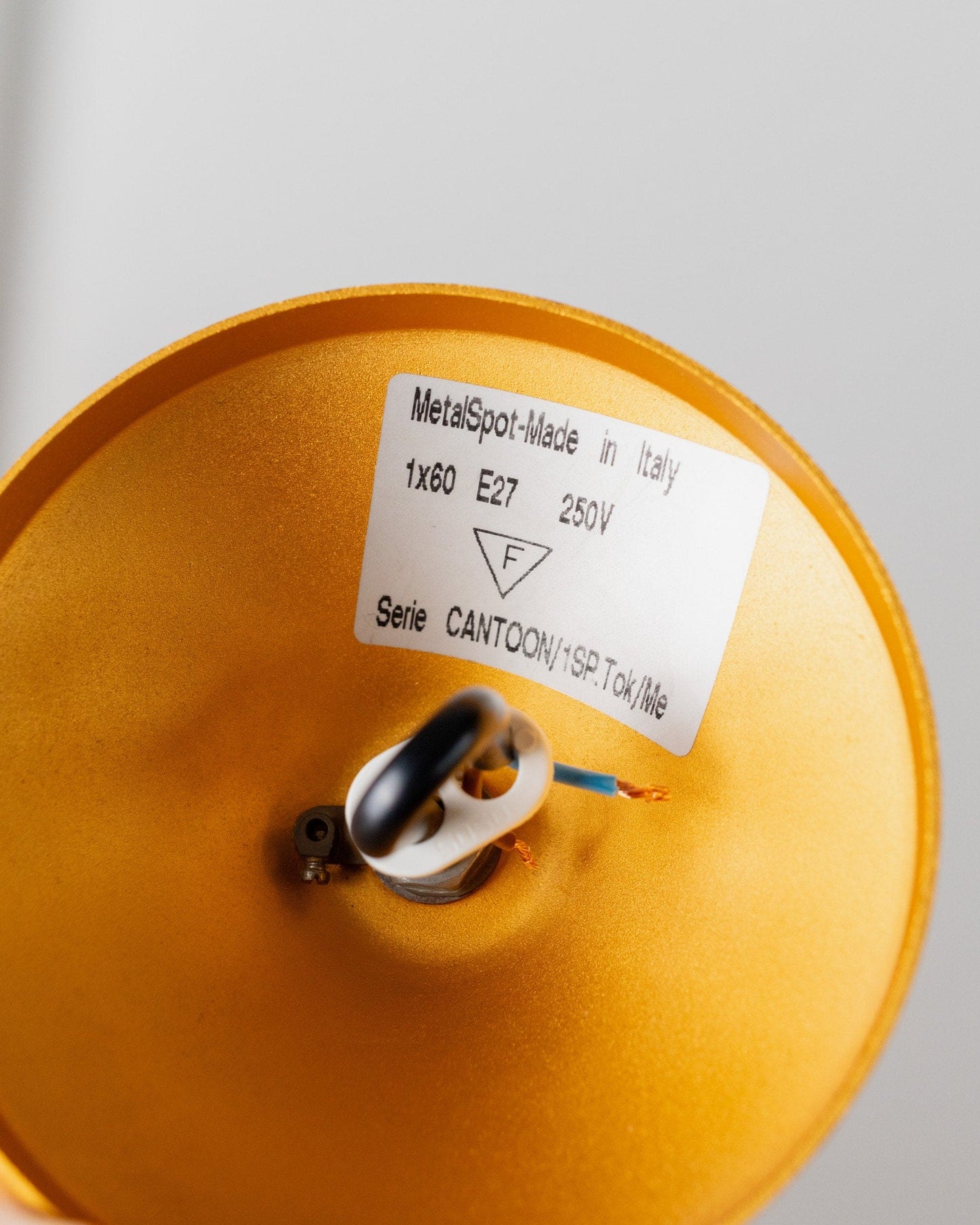 Plafonnier vintage Metal Spot câble rayé jaune doré Rétro années 80