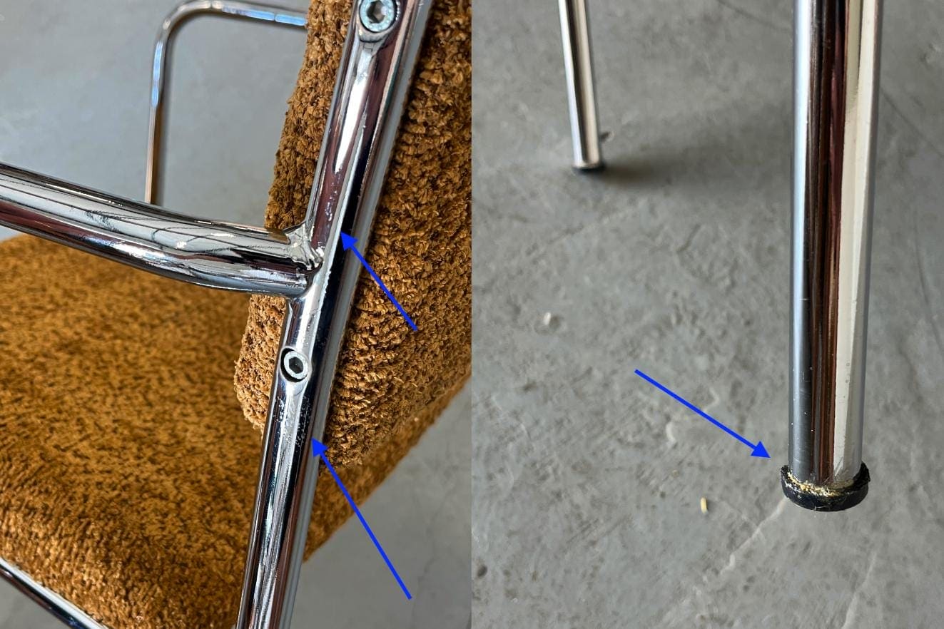 - Matériau : Acier chromé et tissu bouclé ocre de haute qualité