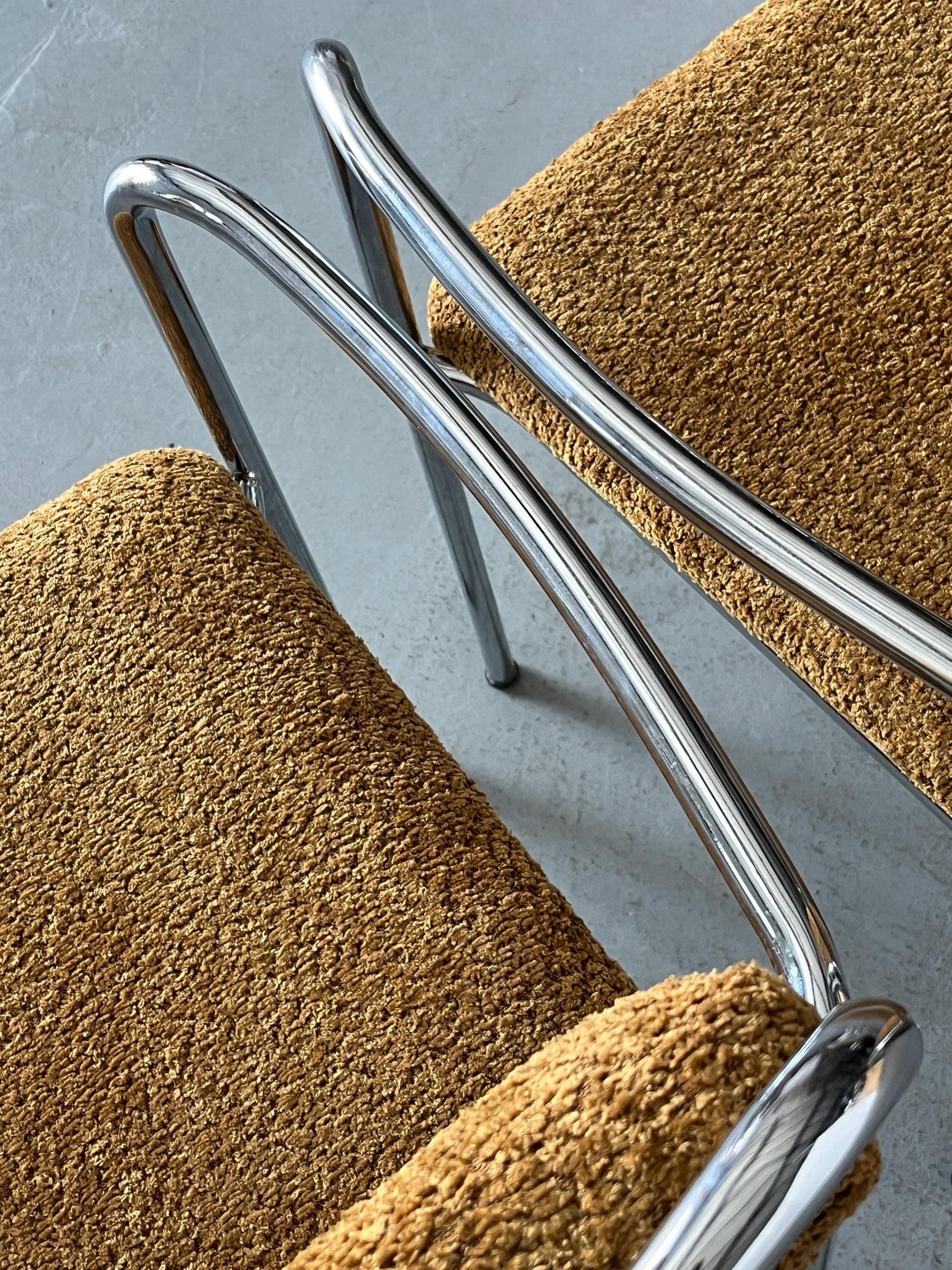 Fauteuil vintage de H. Fiedler et H. Heyder en bouclé ocre, Bauhaus, années 1970, paire