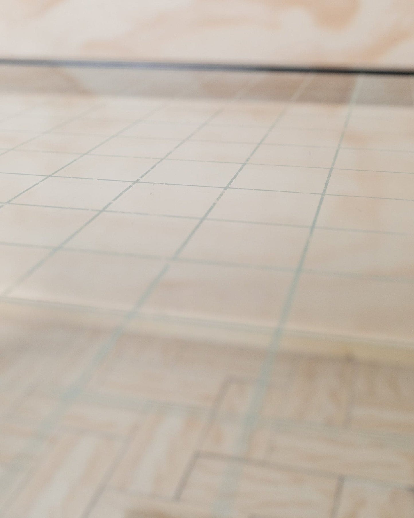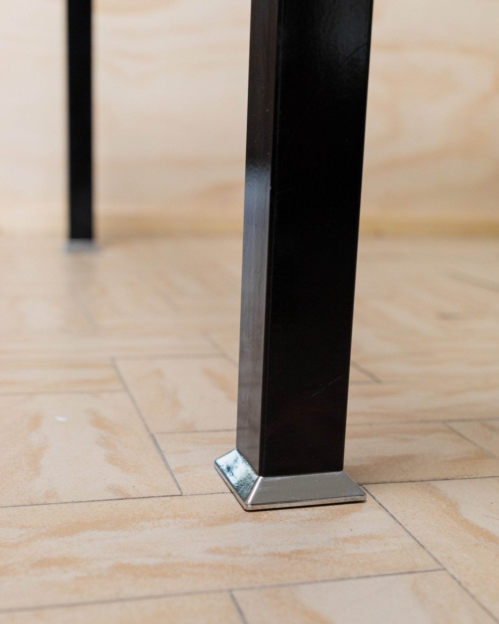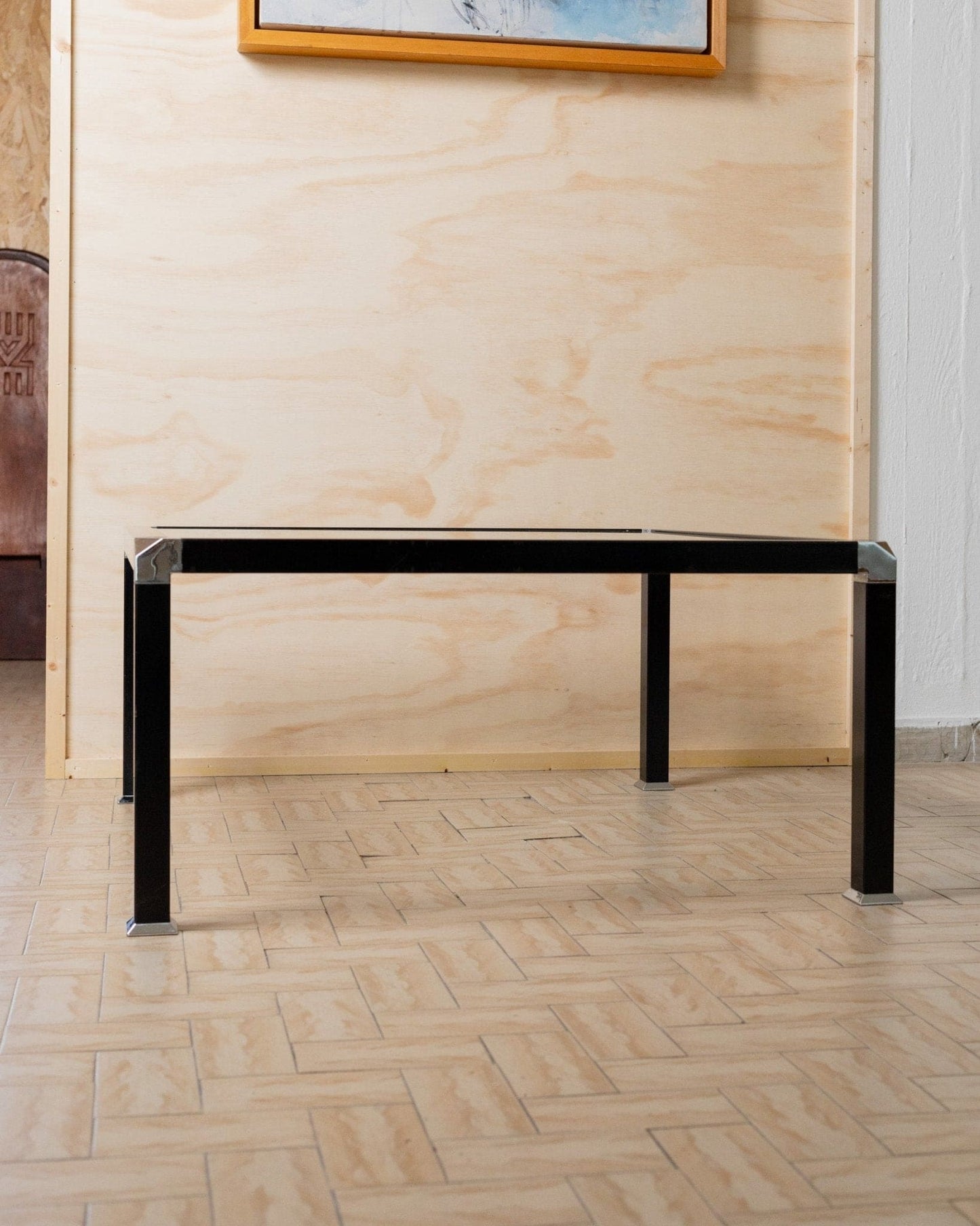- Matière : Métal laqué noir, coins chromés, verre à carreaux