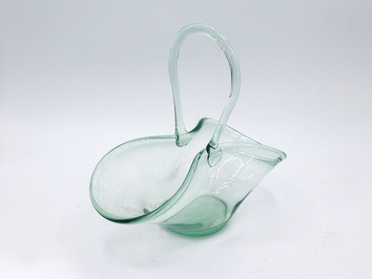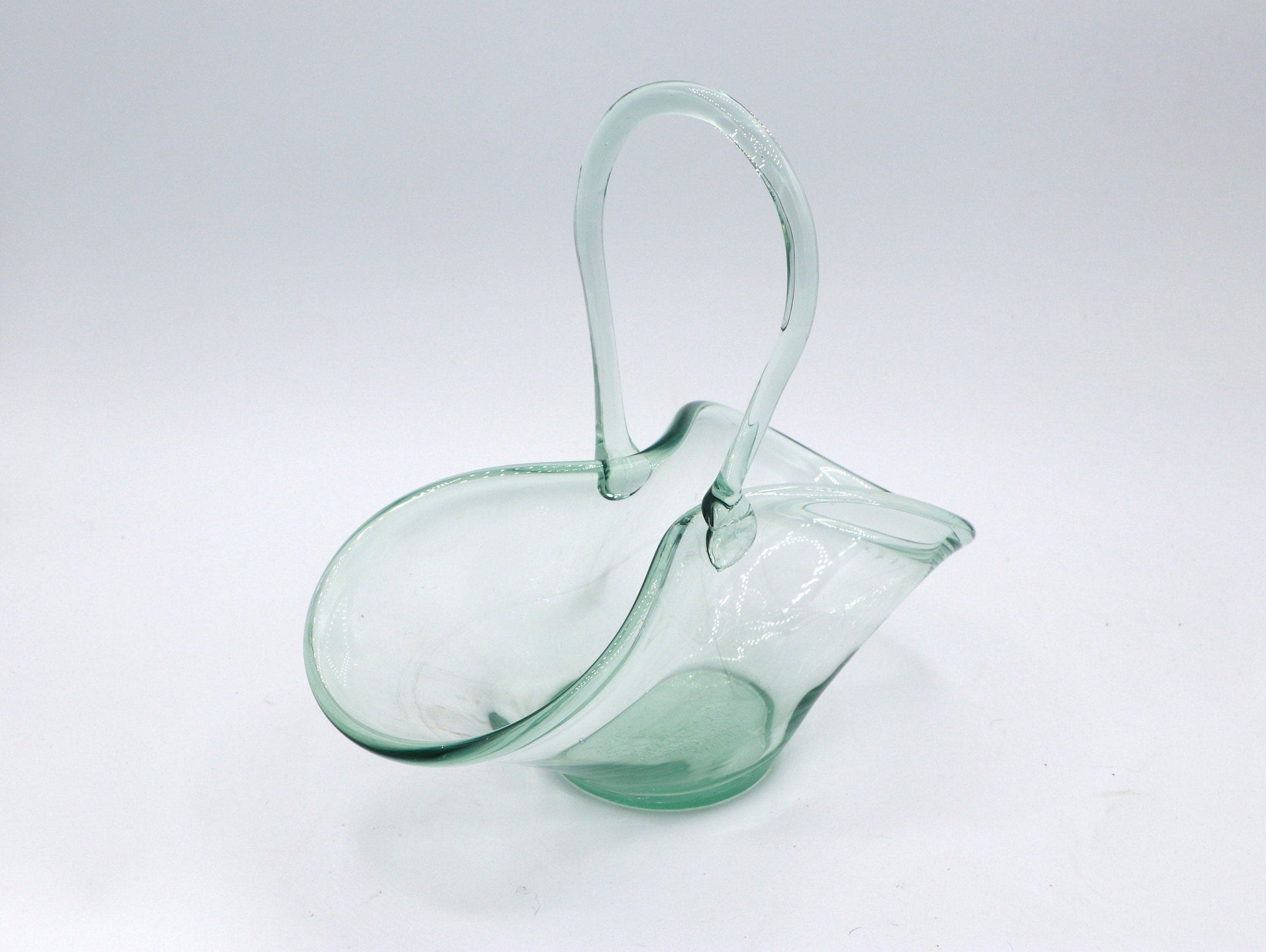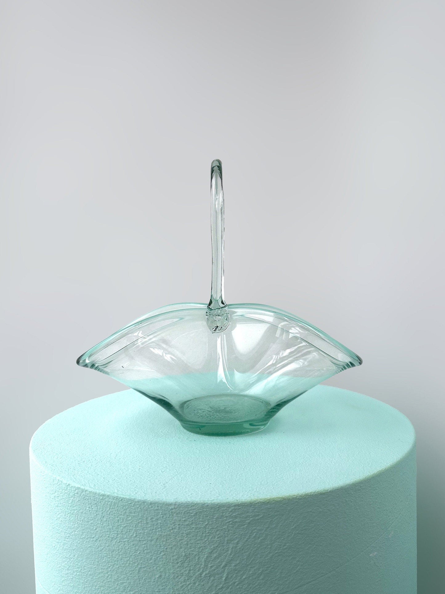 Panier Bonbonnière Vintage en Verre Vert Menthe Années 70 Murano Italie