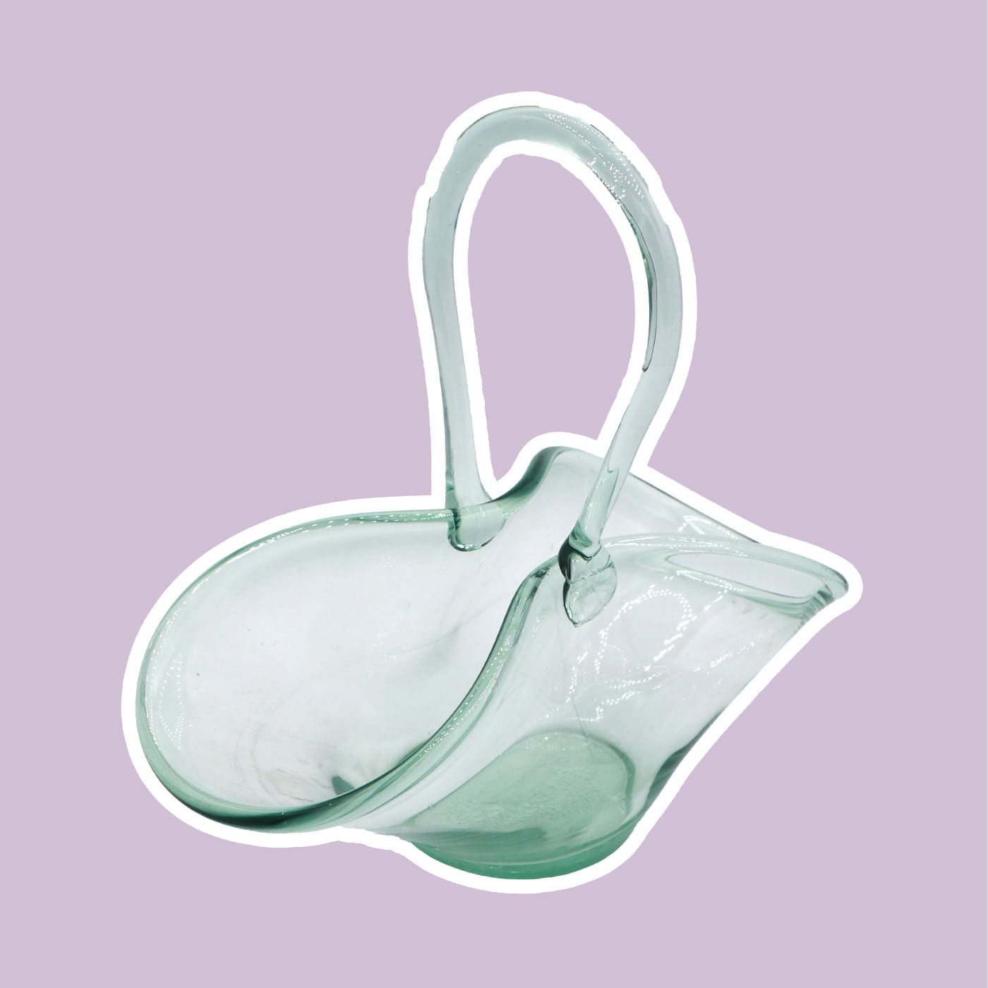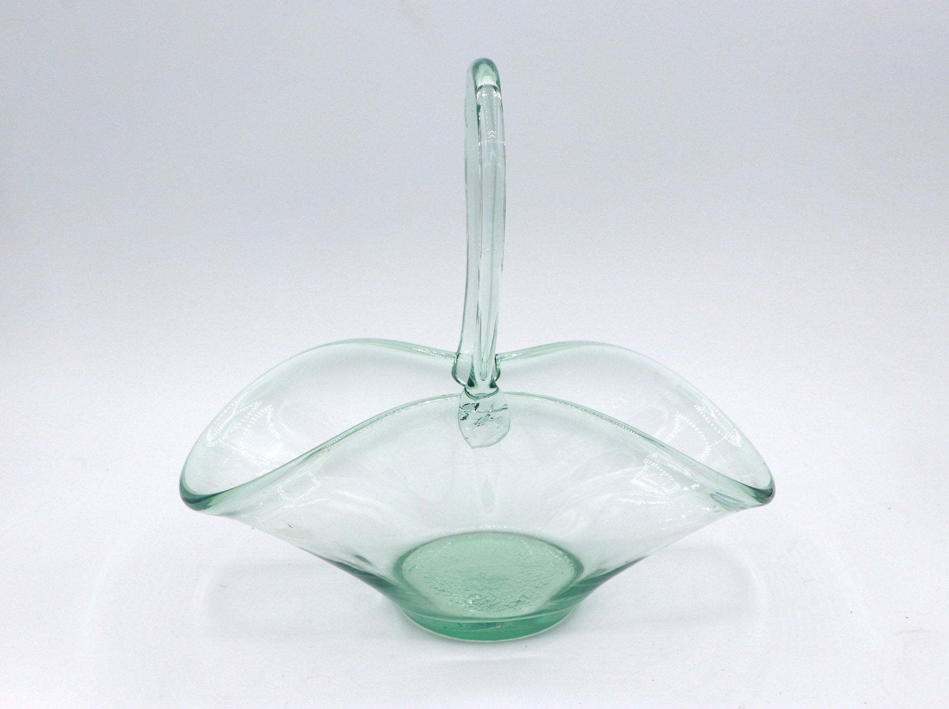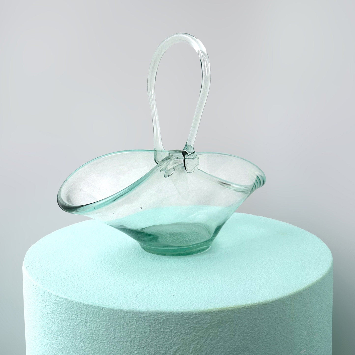 Panier Bonbonnière Vintage en Verre Vert Menthe Années 70 Murano Italie