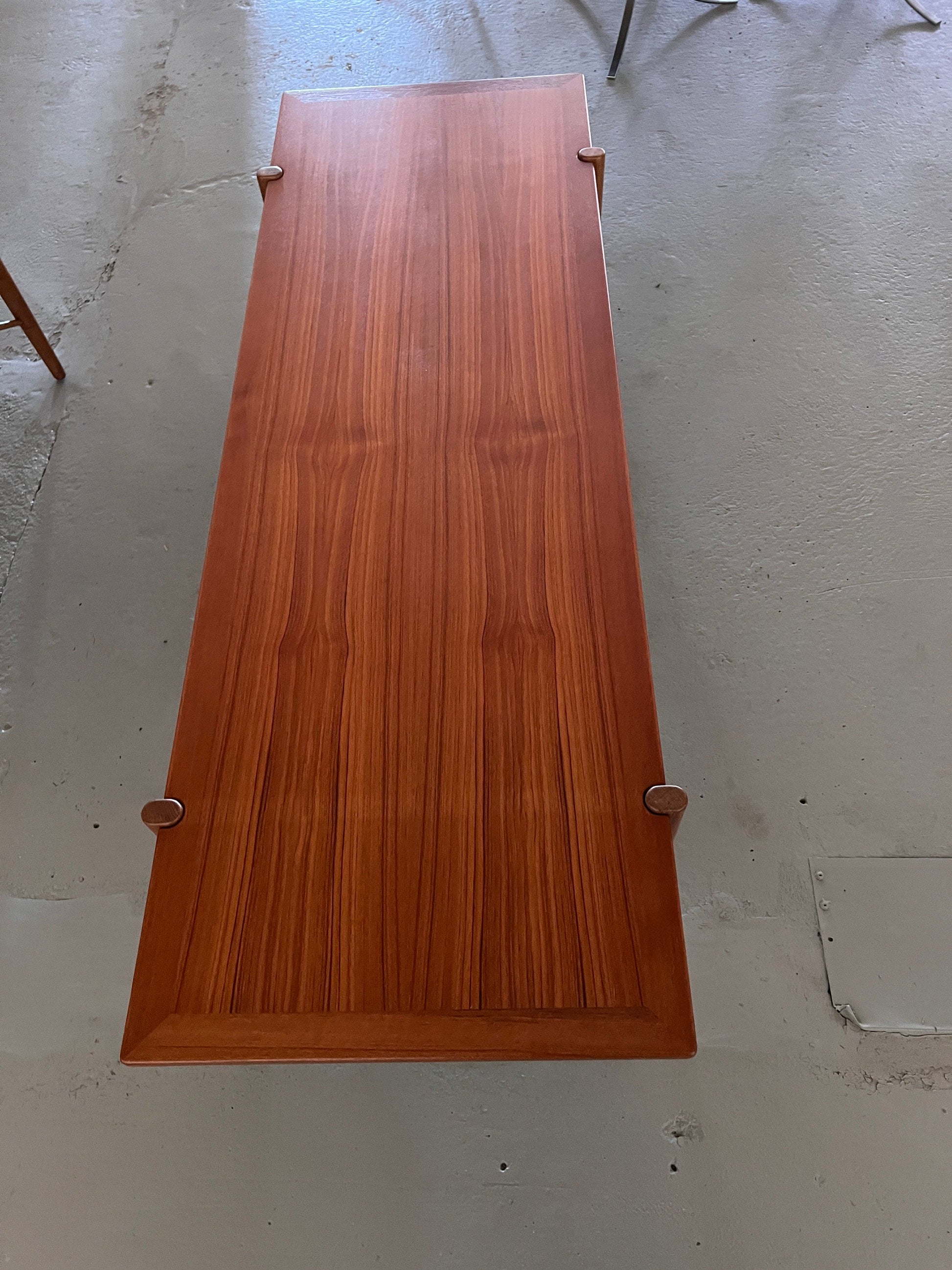 La table basse JH575 de Hans J. Wegner allie fonctionnalité et sérénité dans un design épuré et minimaliste. Sa structure en teck supporte un plateau réversible – une caractéristique discrète et pratique, typique du design danois du milieu du XXe siècle. Des lignes précises, des courbes douces et des proportions harmonieuses définissent son style. La table s'intègre discrètement au salon tout en y apportant chaleur et authenticité. Un morceau d'histoire du design, pratique au quotidien – simple d'utilisation et robuste. Conçue par l'un des designers les plus influents du XXe siècle, elle reste intemporelle et accessible.