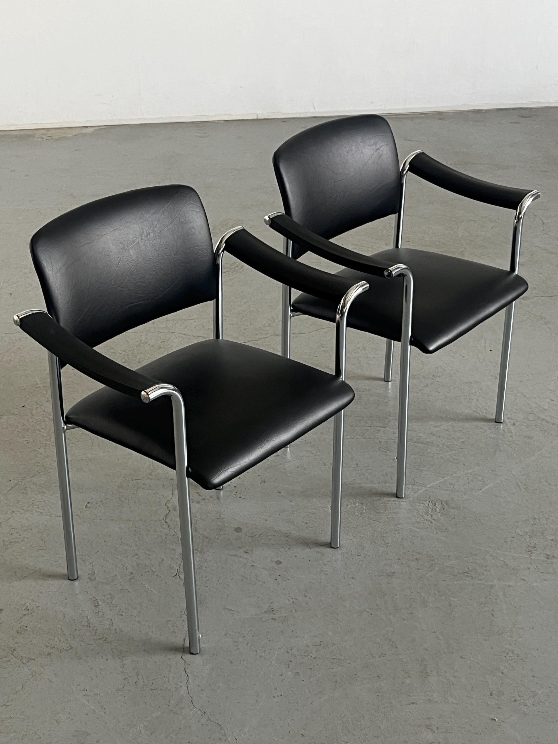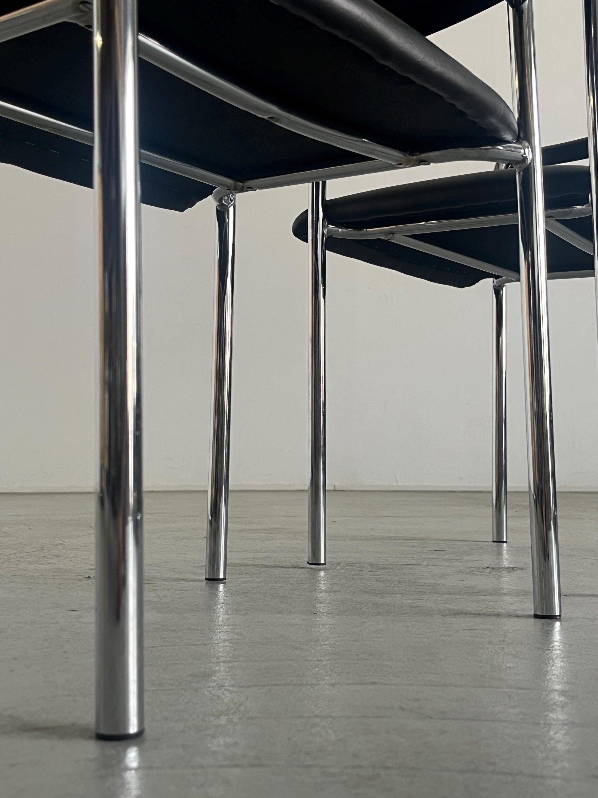 Chaise de salle à manger vintage en similicuir noir et acier chromé, Italie, années 1980