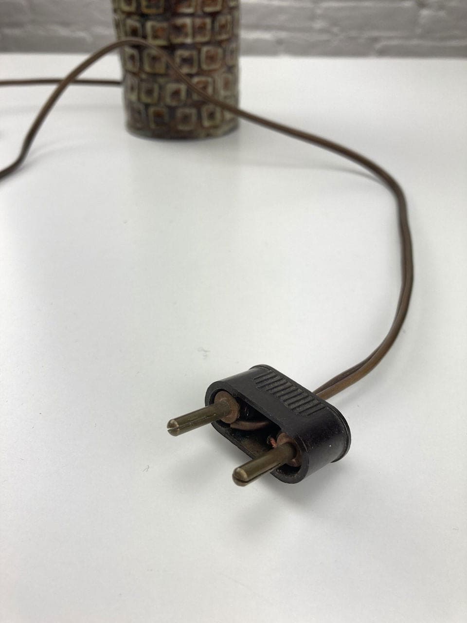 Cette lampe de table vintage est plus qu'une simple source de lumière : c'est une œuvre d'art. L'élégante base en céramique avec un motif géométrique dans des tons naturels confère à la lampe un caractère particulier, tandis que l'abat-jour original en fibres naturelles diffuse une lumière chaleureuse et accueillante. La combinaison de matériaux de haute qualité et d'un design intemporel fait de cette lampe de table un point fort polyvalent et fonctionnel.