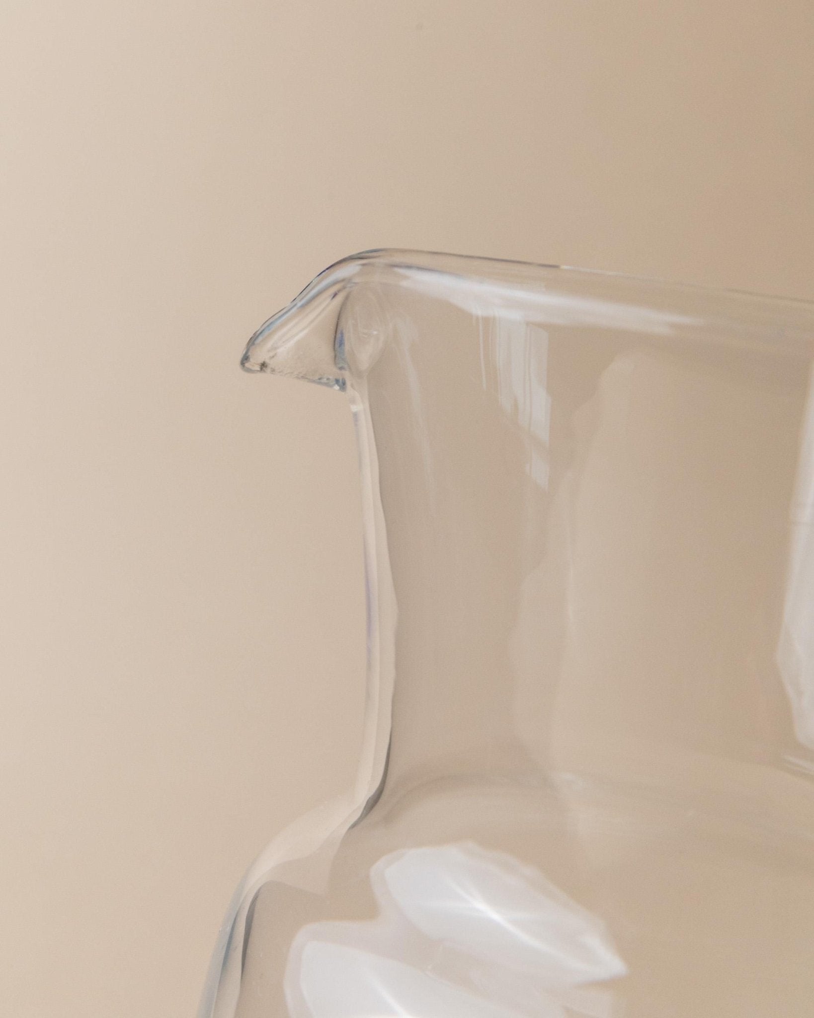 Pichet vintage en verre transparent et anse bleue - Design Mid-Century Italie années 1970