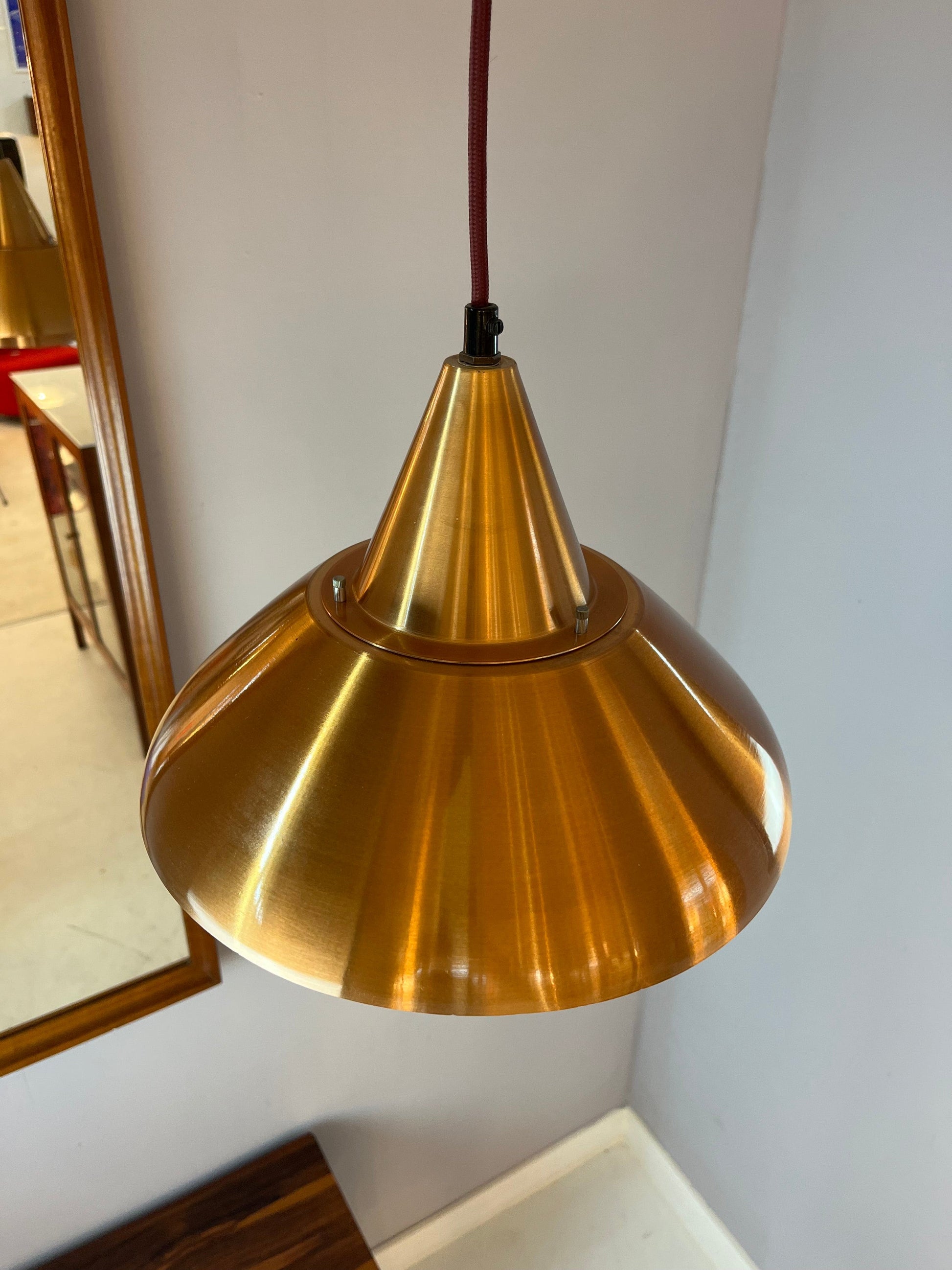 Ajoutez une touche de charme rétro à votre intérieur avec cette suspension vintage cuivrée et orange. Elle séduit par son élégante finition extérieure en cuivre mat et son intérieur laqué orange vif. Ses fines lamelles diffusent une lumière agréable, créant une atmosphère chaleureuse et cosy. Son jeu de couleurs contrastées en fait un véritable accroche-regard et confère à n'importe quelle pièce une allure moderne et élégante.