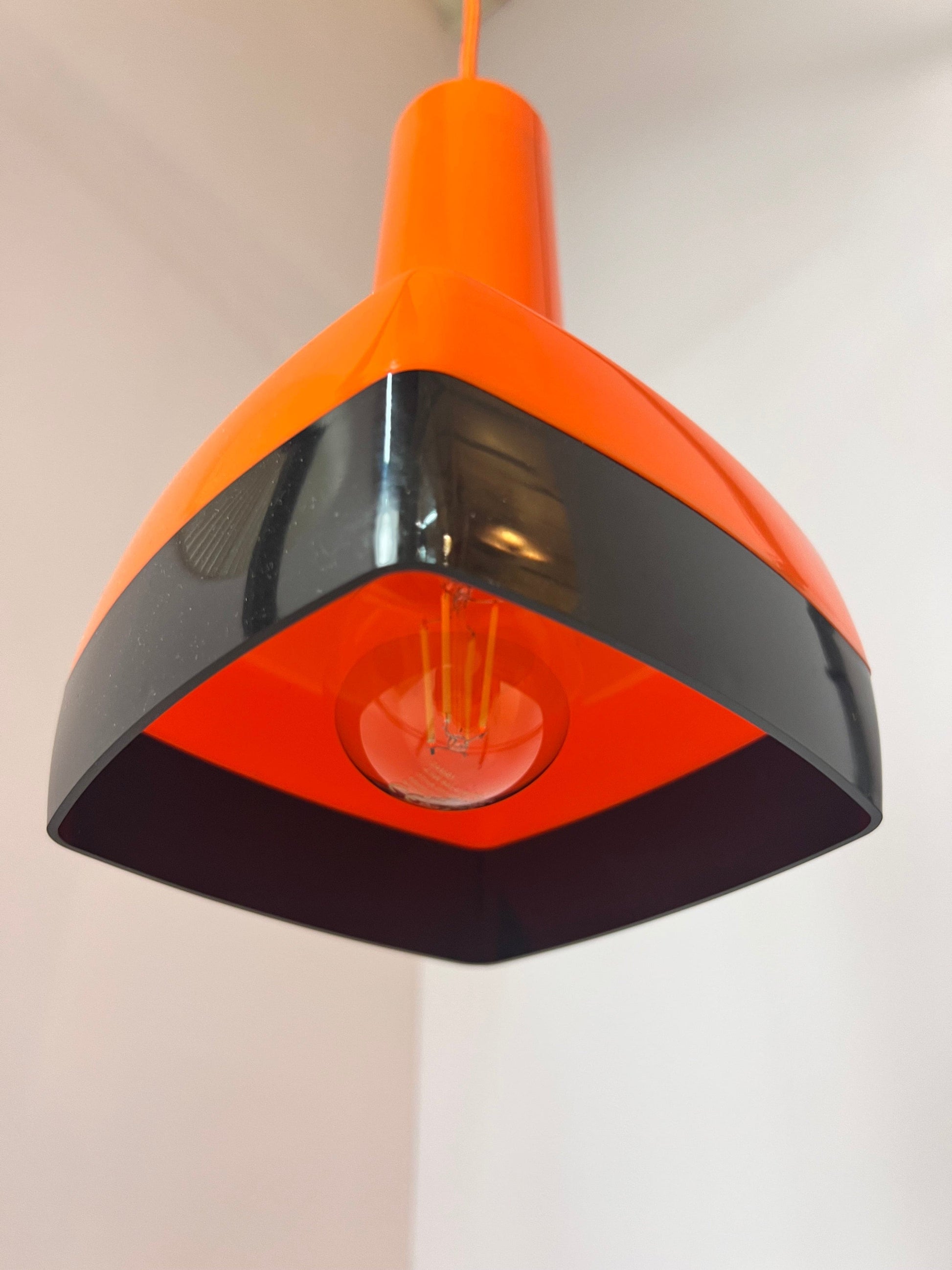 Apportez une touche de charme années 70 à votre intérieur avec la suspension vintage de Bent Karlby pour Schrøder-Kemi. Son design pop art saisissant, décliné en orange vif et noir, en fait un véritable accroche-regard dans n'importe quelle pièce. Fabriquée en plastique de haute qualité, elle séduit par sa forme épurée et intemporelle. Nous pouvons personnaliser la longueur et la couleur du câble selon vos envies ; la version actuelle est livrée avec un câble textile orange de 2 mètres.