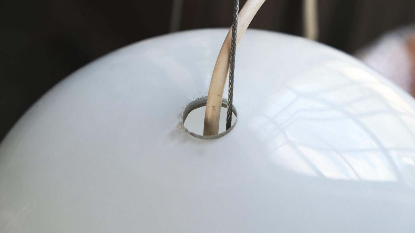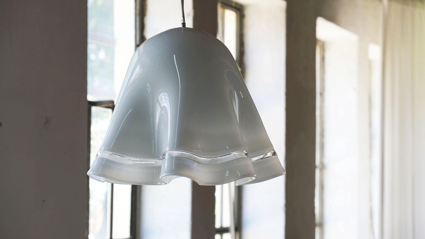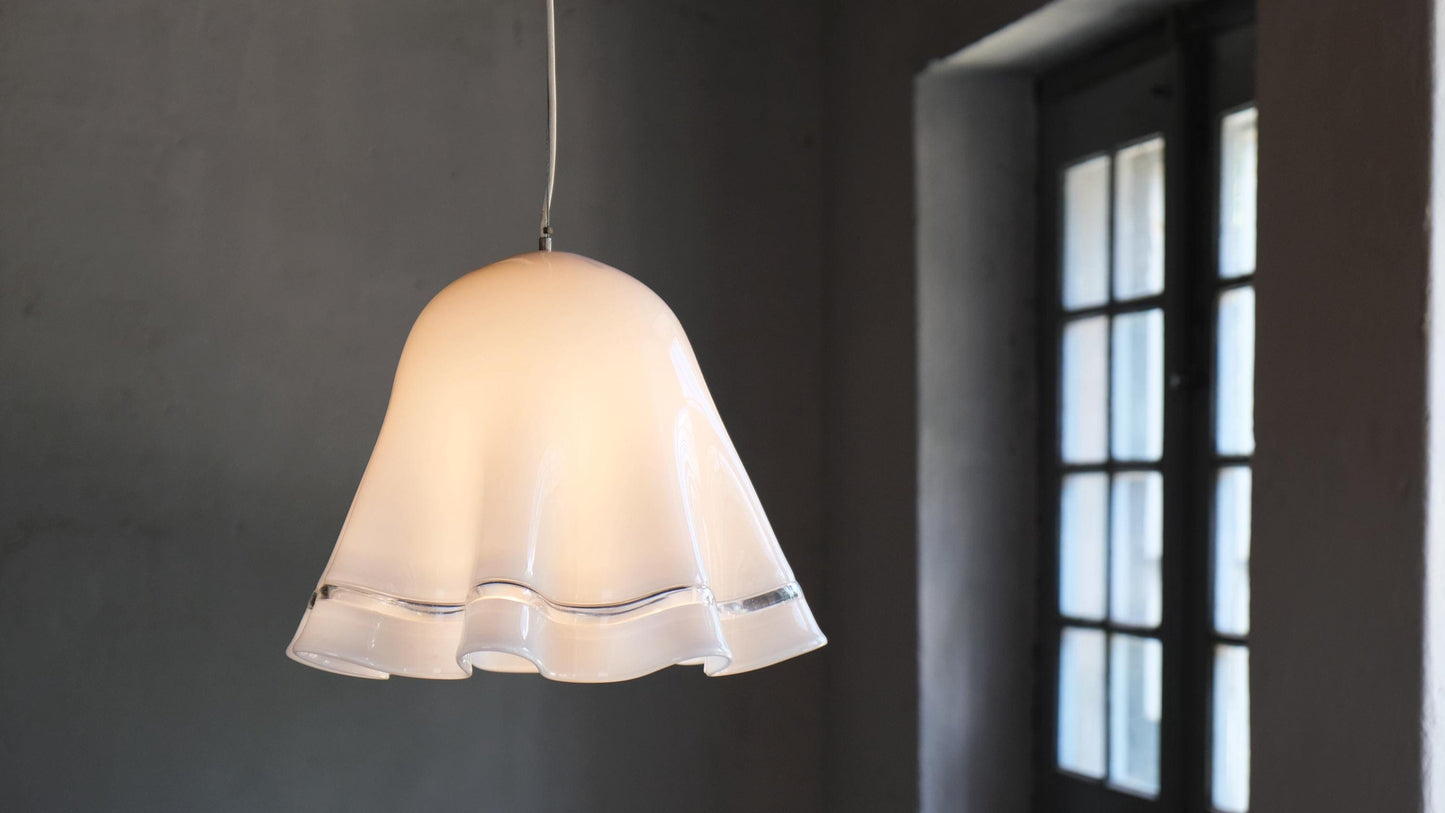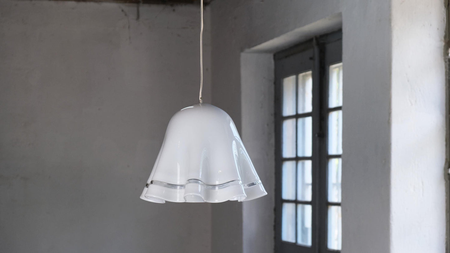Exceptionnelle suspension des années 1970 / Italie; réalisée en verre artisanal blanc.