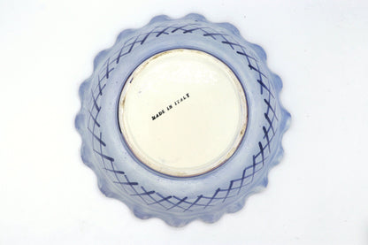 Bol Vintage en Céramique Italienne Fleurs Peintes à la Main Bleu Années 1980