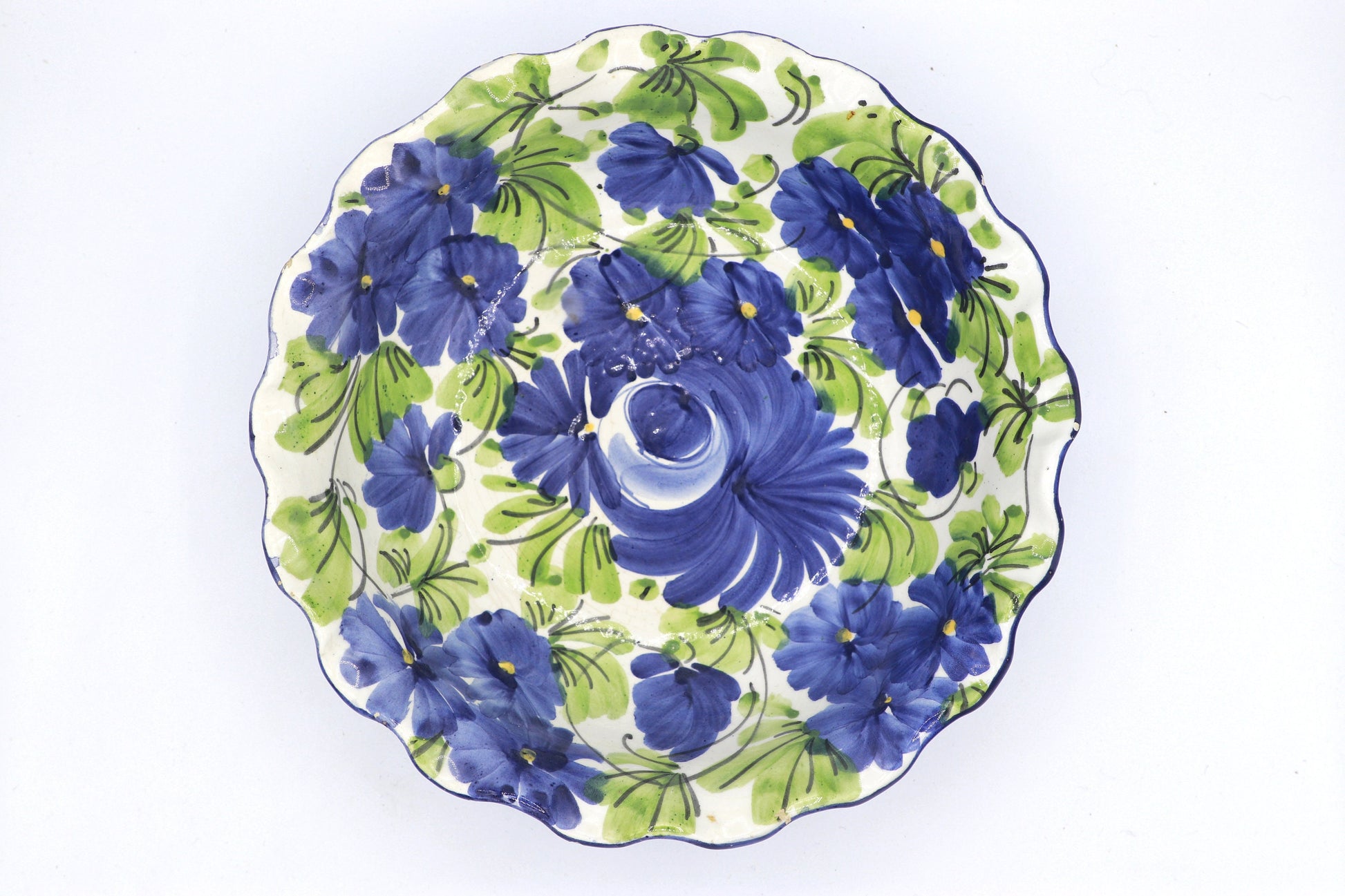 Bol en céramique peint à la main, décoré de belles fleurs dans les tons bleus. Fabriqué en Italie