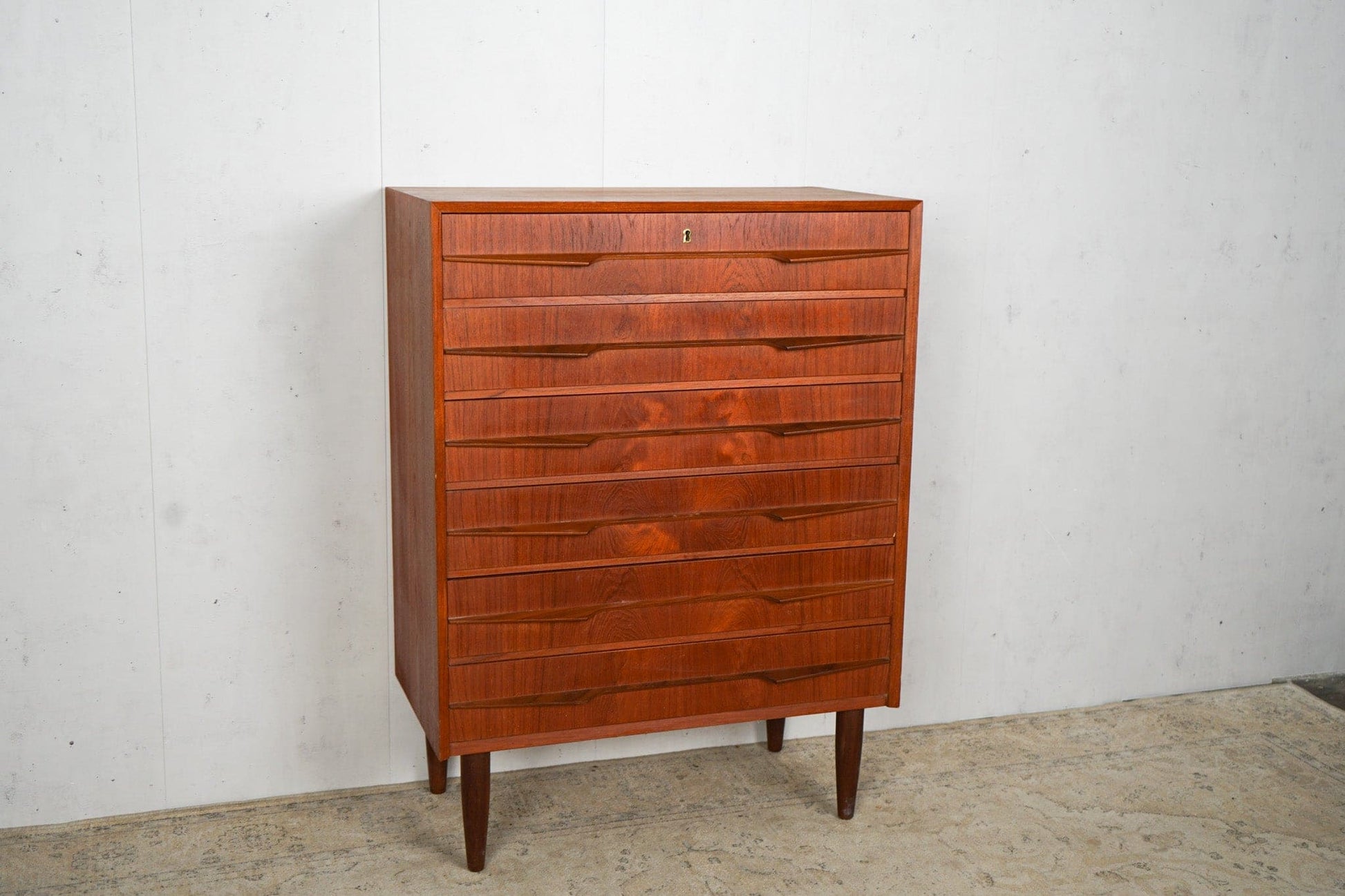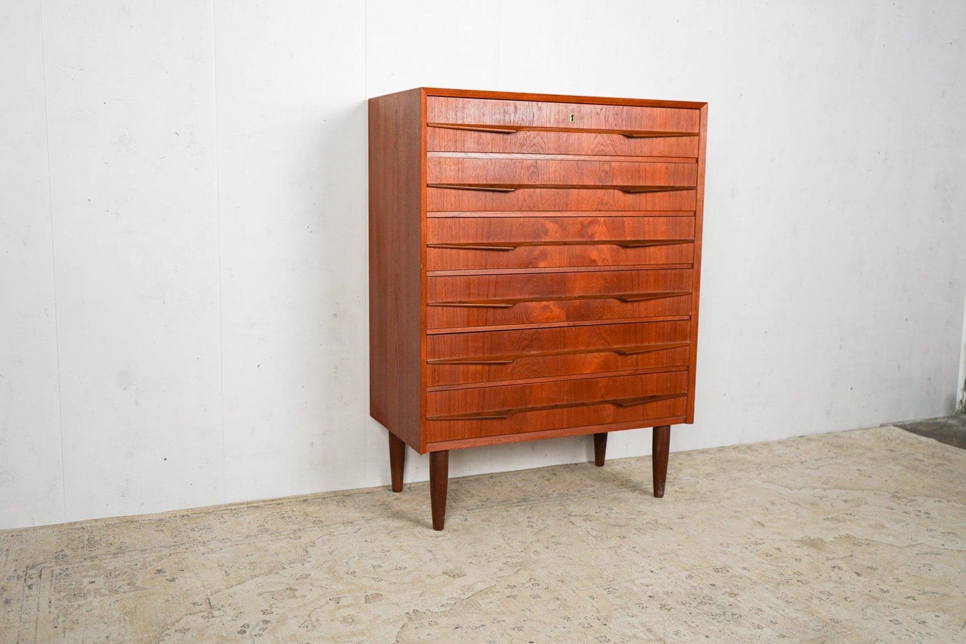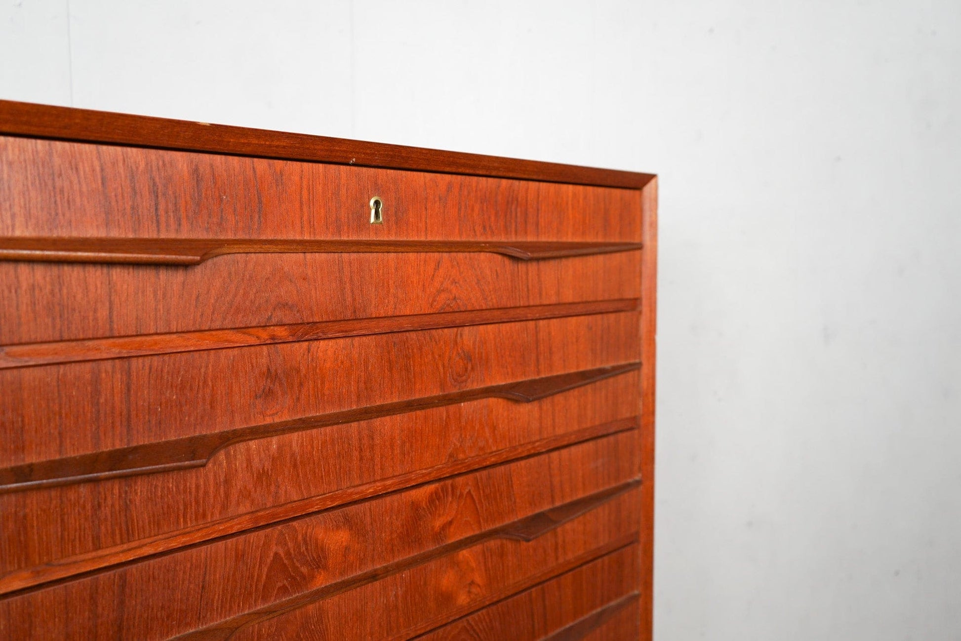Commode vintage en teck avec serrure et poignée continue, de conception danoise