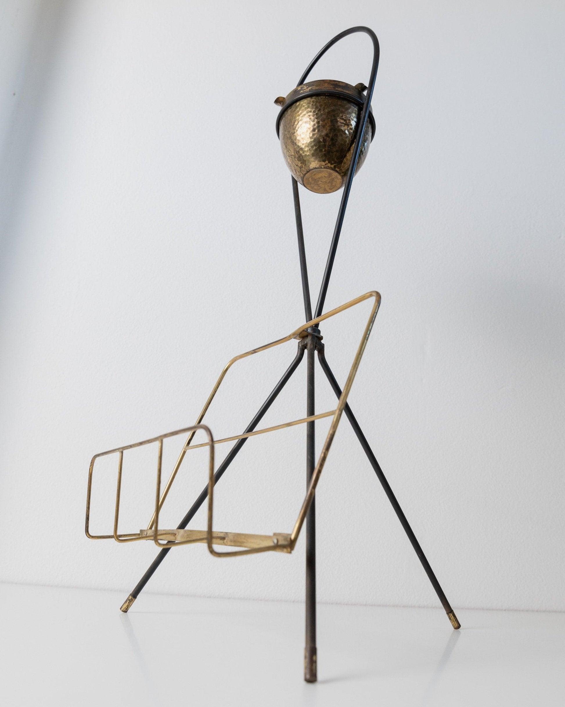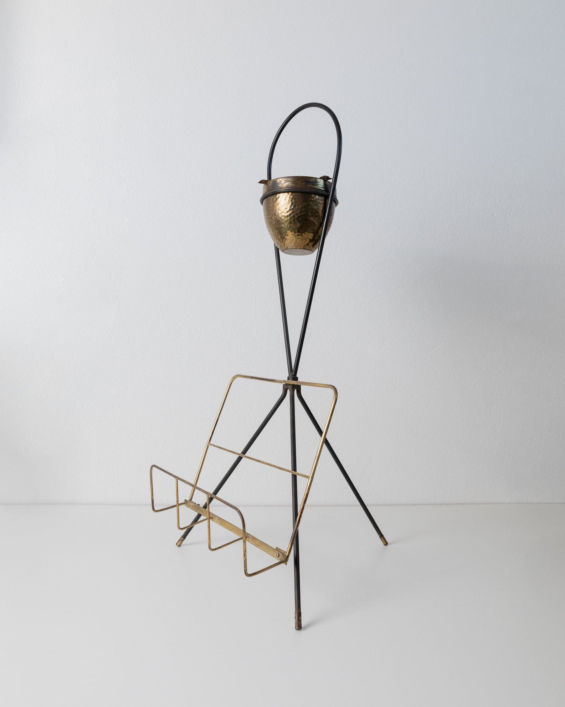 Découvrez le charme des années 60 avec cet élégant porte-revues vintage en laiton, doté d'un cendrier intégré. Cette pièce unique d'Italie allie fonctionnalité et style dans un design intemporel du milieu du siècle. Les détails en laiton fabriqués à la main ajoutent une touche luxueuse à n'importe quelle pièce et en font un accessoire parfait pour votre maison. Que ce soit dans le salon, au bureau ou sur la terrasse, ce porte-revues est un véritable accroche-regard.