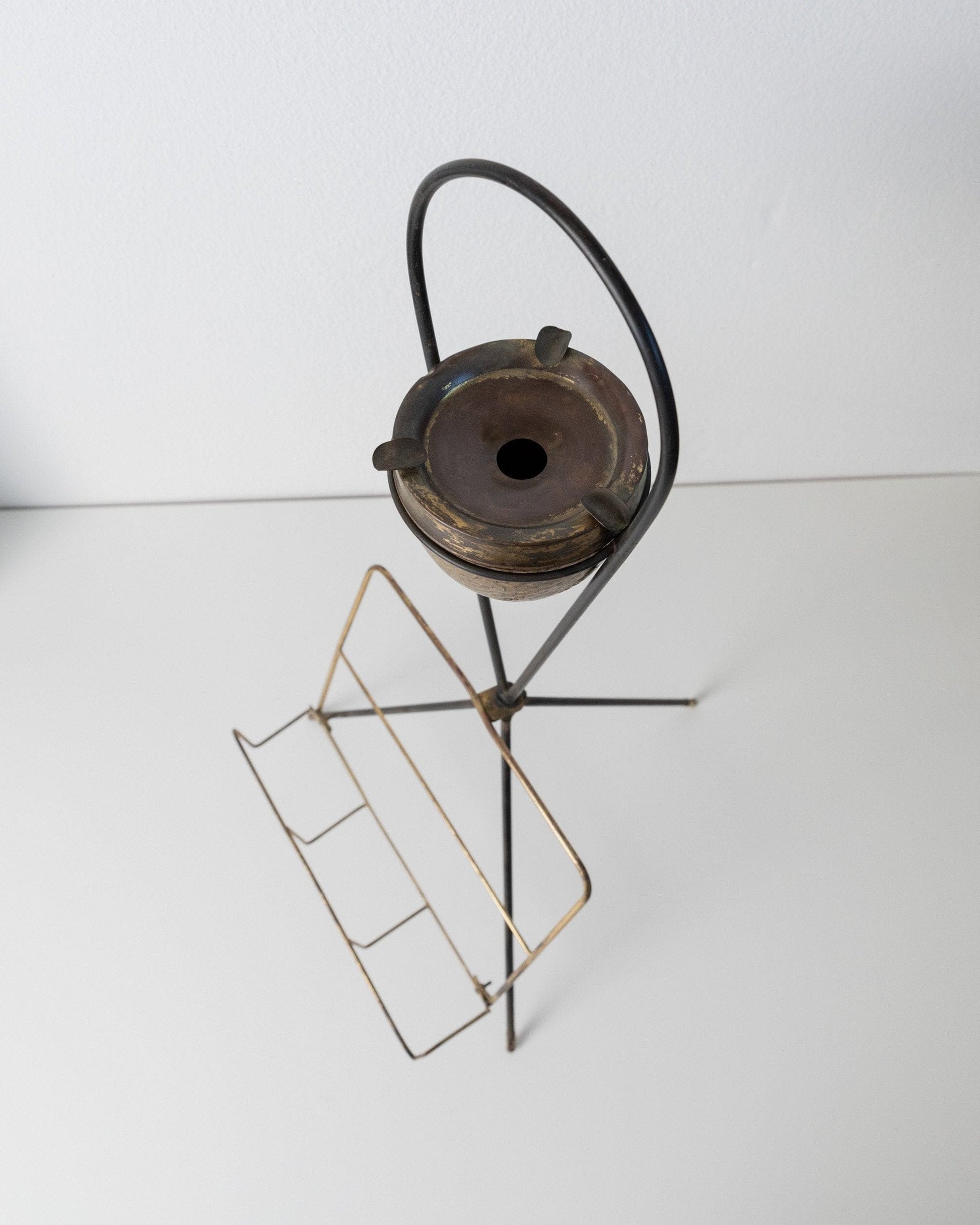 Porte-revues vintage en laiton et cendrier design du milieu du siècle années 1960 élégant