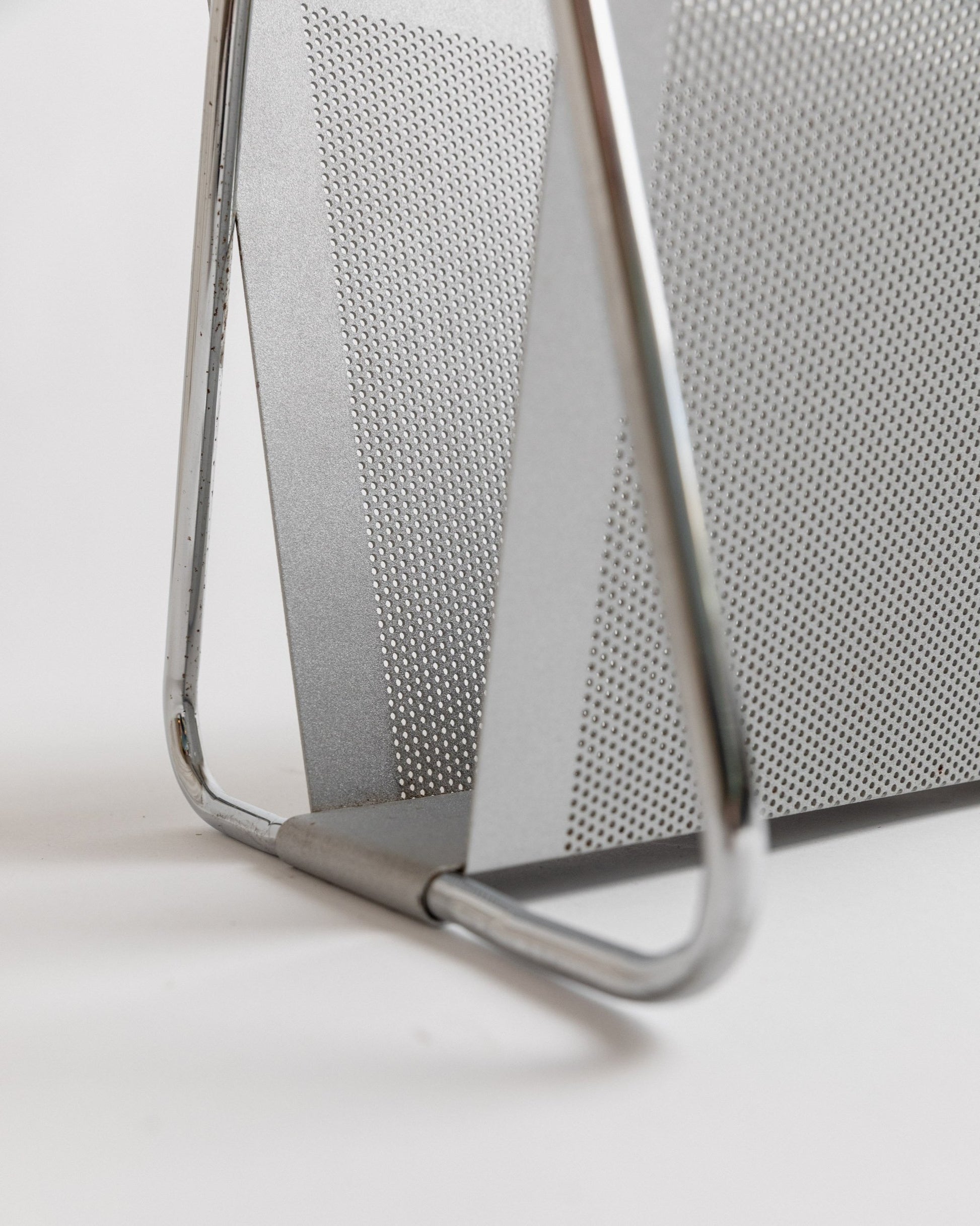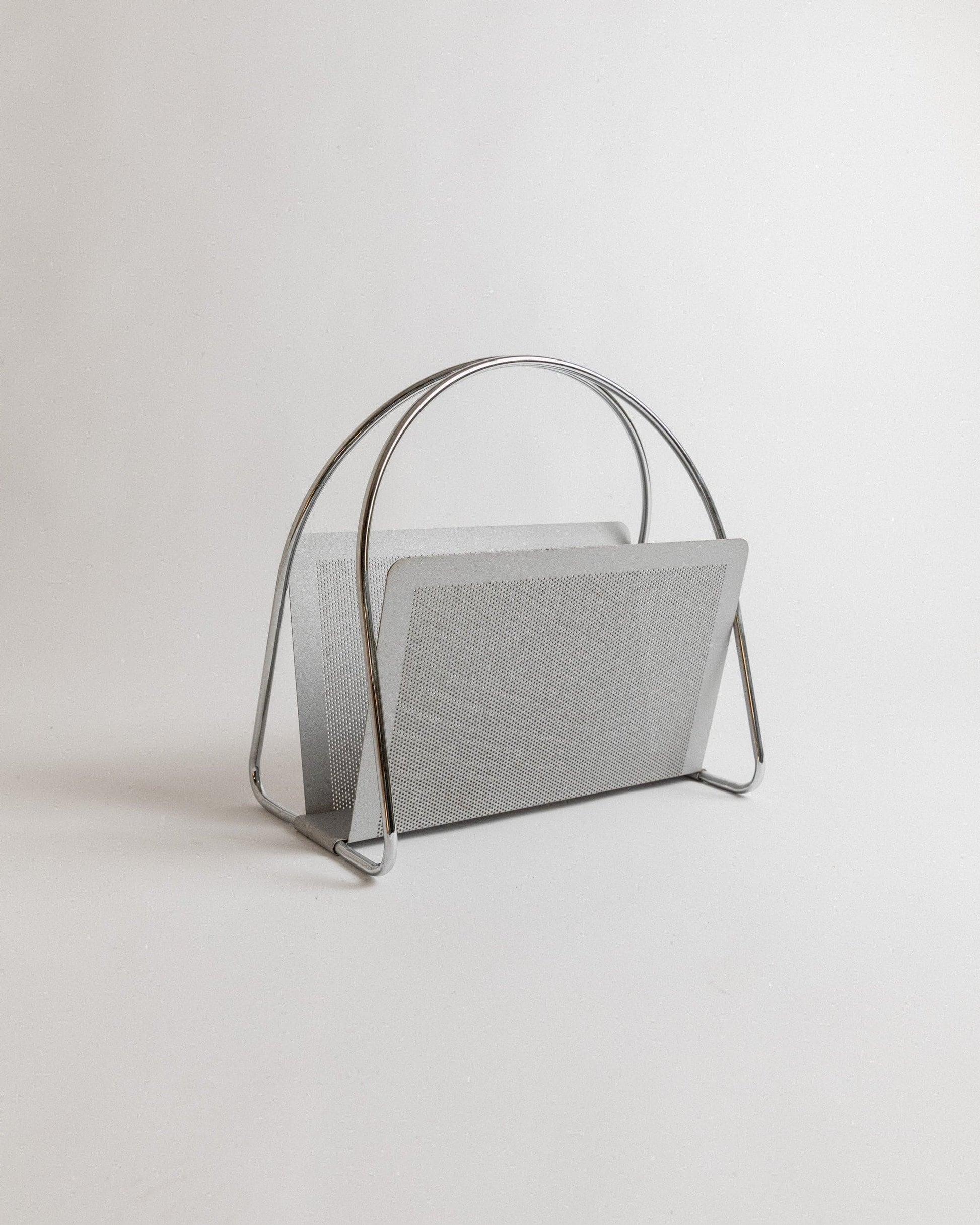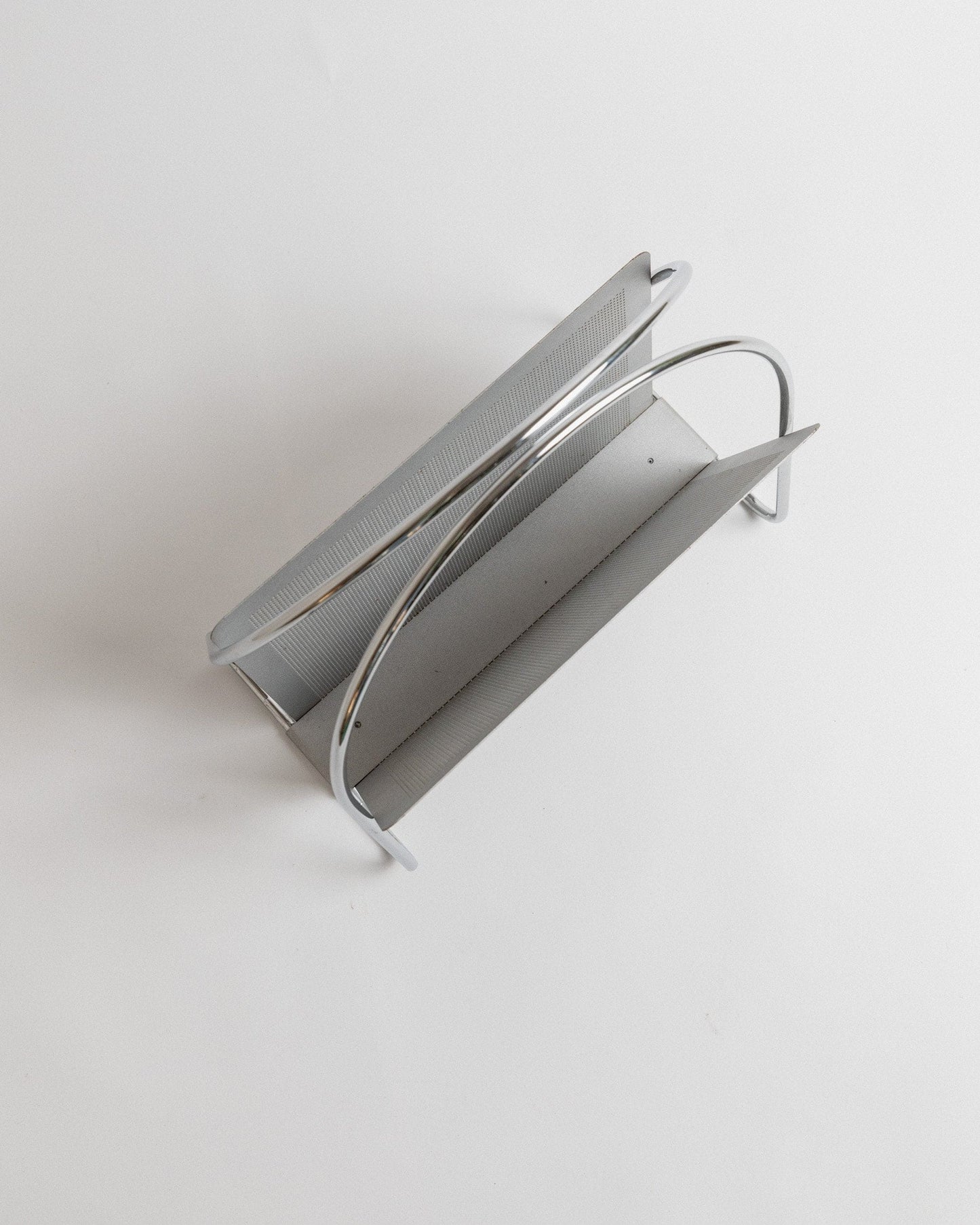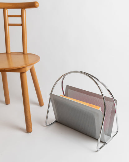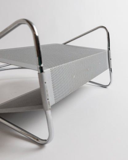 Porte-revues vintage perforé chromé Space Age Design Italie années 70 par Mascagni