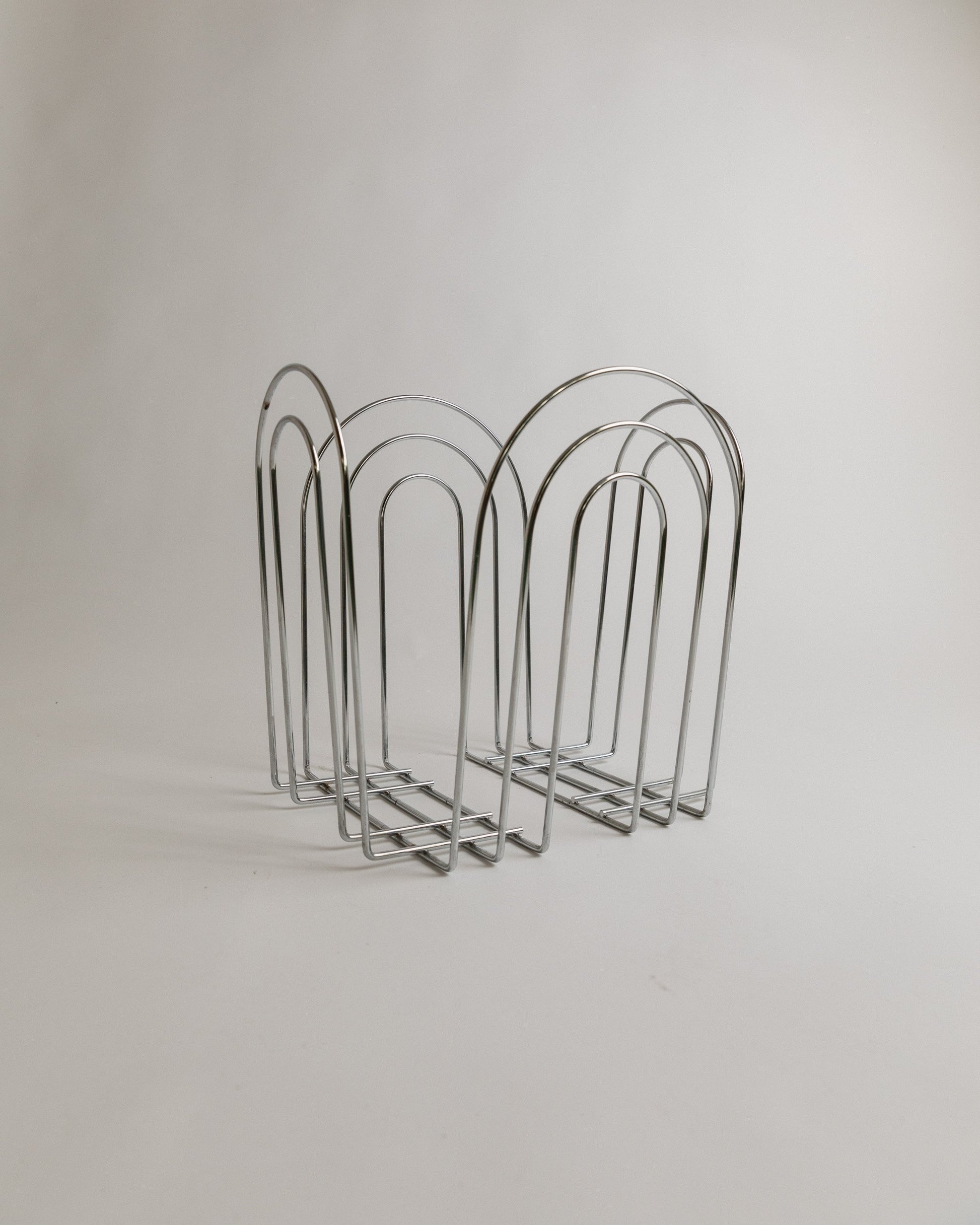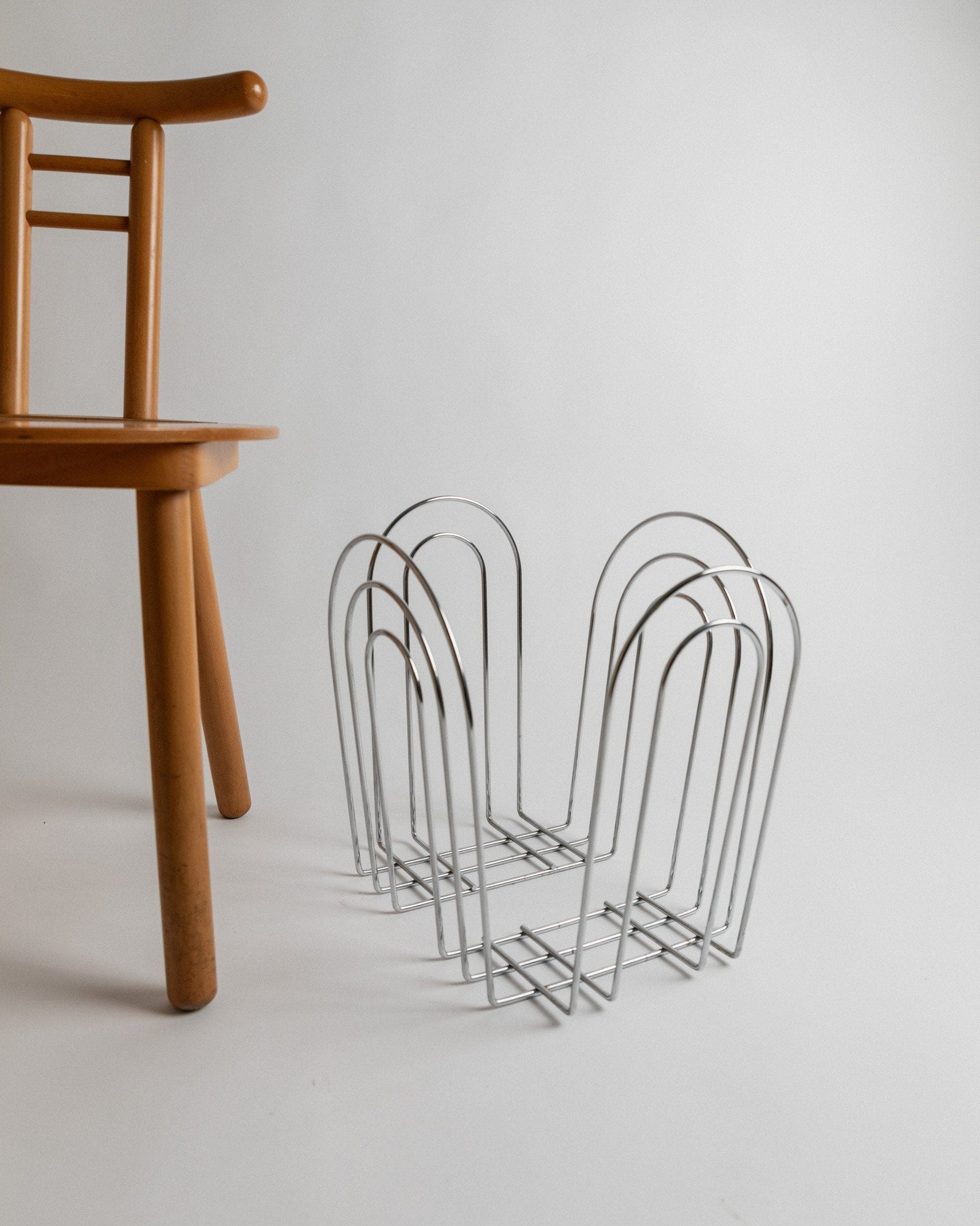 Ajoutez une touche de charme rétro à votre maison avec ce panier en métal vintage au design spatial des années 1980. Parfait pour le rangement décoratif de magazines, de couvertures, de serviettes ou même de bois de chauffage, la forme incurvée et intemporelle de ce panier s'intégrera parfaitement dans tout intérieur d'inspiration moderne ou rétro. En tant que pièce de déclaration élégante, elle attire l'attention de tous et constitue également une excellente idée de cadeau.