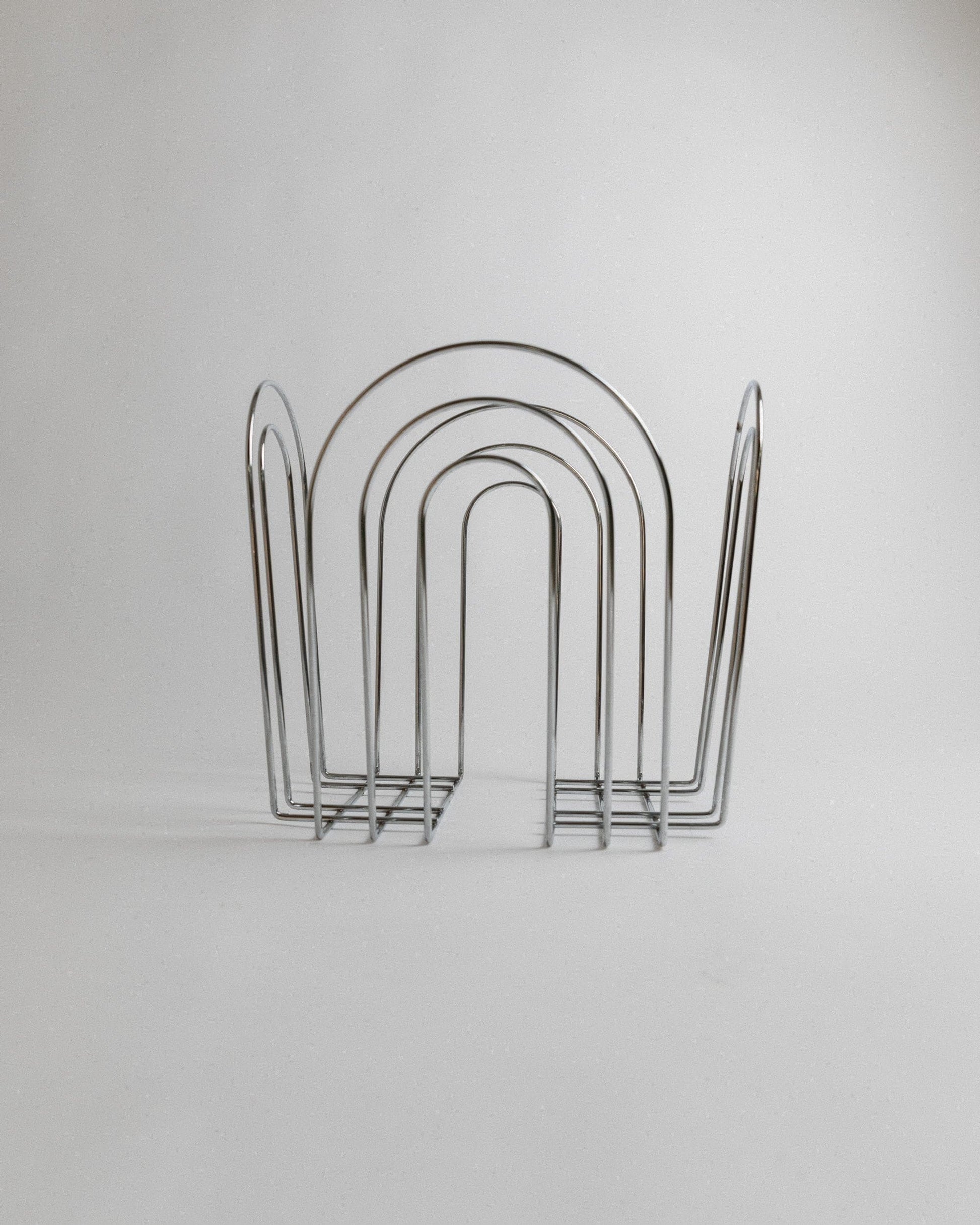 Panier en métal chromé vintage Space Age Design 1980s Retro Idée cadeau