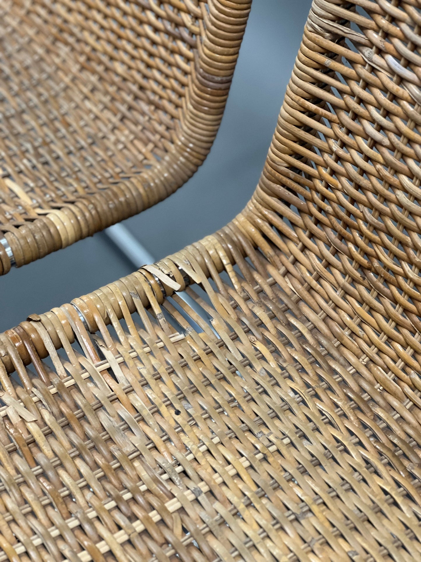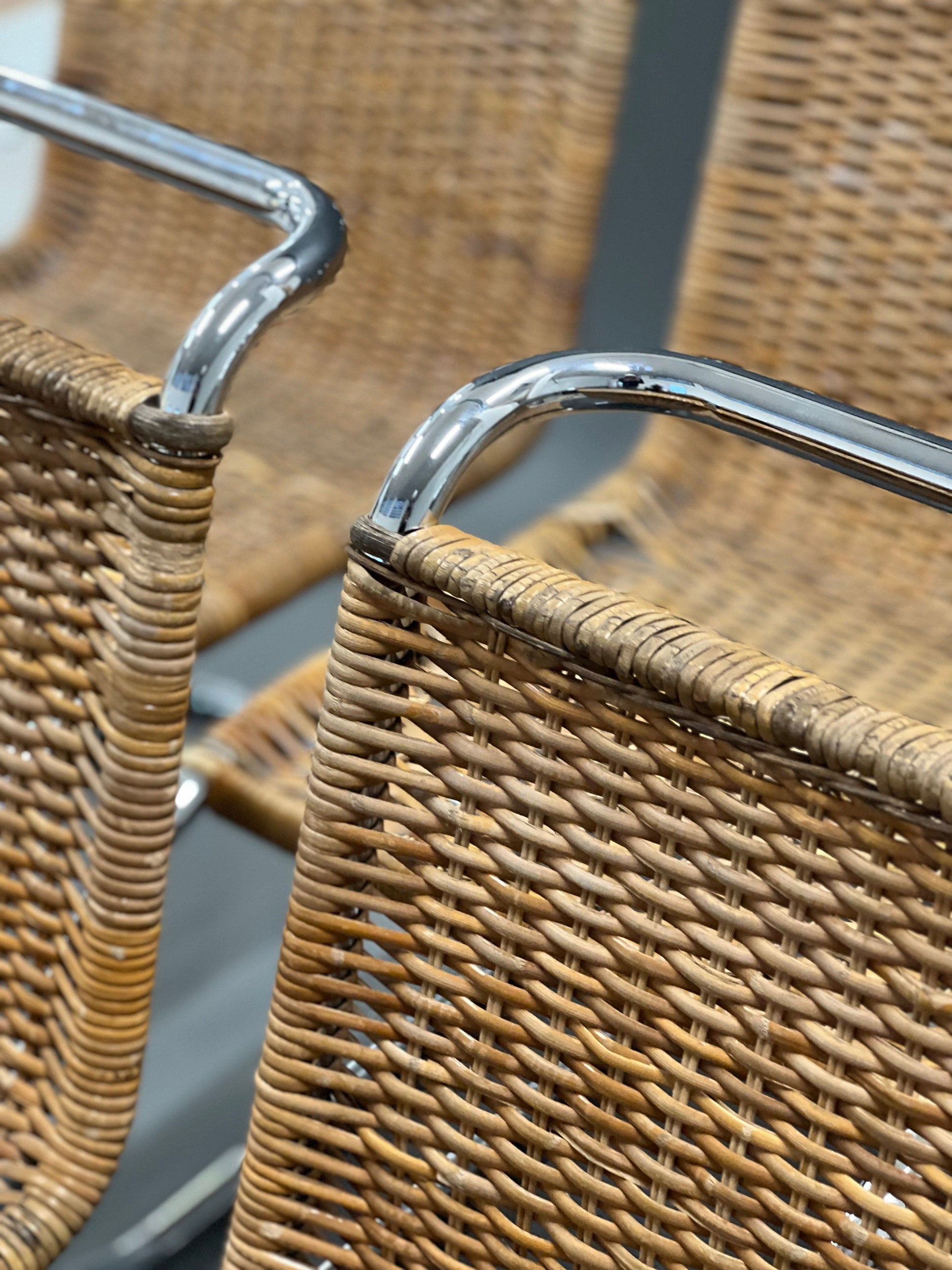 La chaise MR10 de Mies van der Rohe incarne l'essence du Bauhaus : minimalisme, proportion et confort. Cet ensemble de six chaises vintage met en valeur les lignes épurées et aériennes du design. Elle s'intègre harmonieusement aux espaces contemporains. Fine et sereine, elle est idéale pour une table à manger ou un bureau. Un design historique, exécuté avec une élégance discrète et une présence sobre. Pour les amateurs d'icônes subtiles. Prix de l'ensemble : 16 000 €. Les chaises structurent l'espace sans l'alourdir. Leur souplesse contribue au confort.