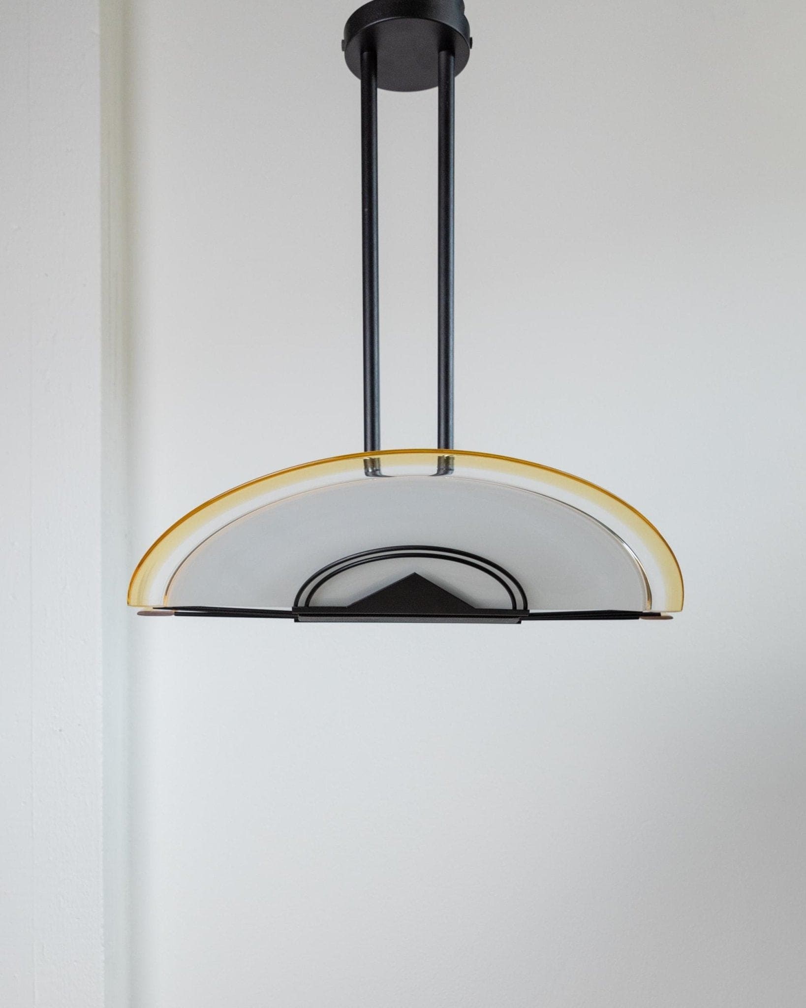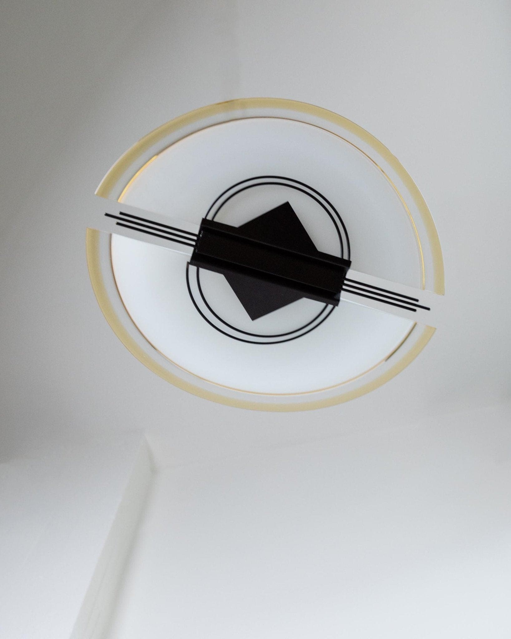 Ce plafonnier est une pièce de collection rare, alliant savoir-faire italien et design emblématique de Memphis. Sur demande, nous pouvons personnaliser gratuitement la douille et la prise selon votre pays. Apportez une touche d'élégance à votre intérieur avec cette pièce au design unique !