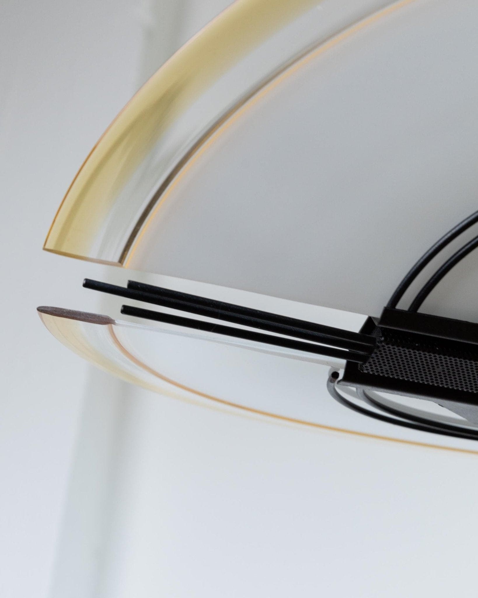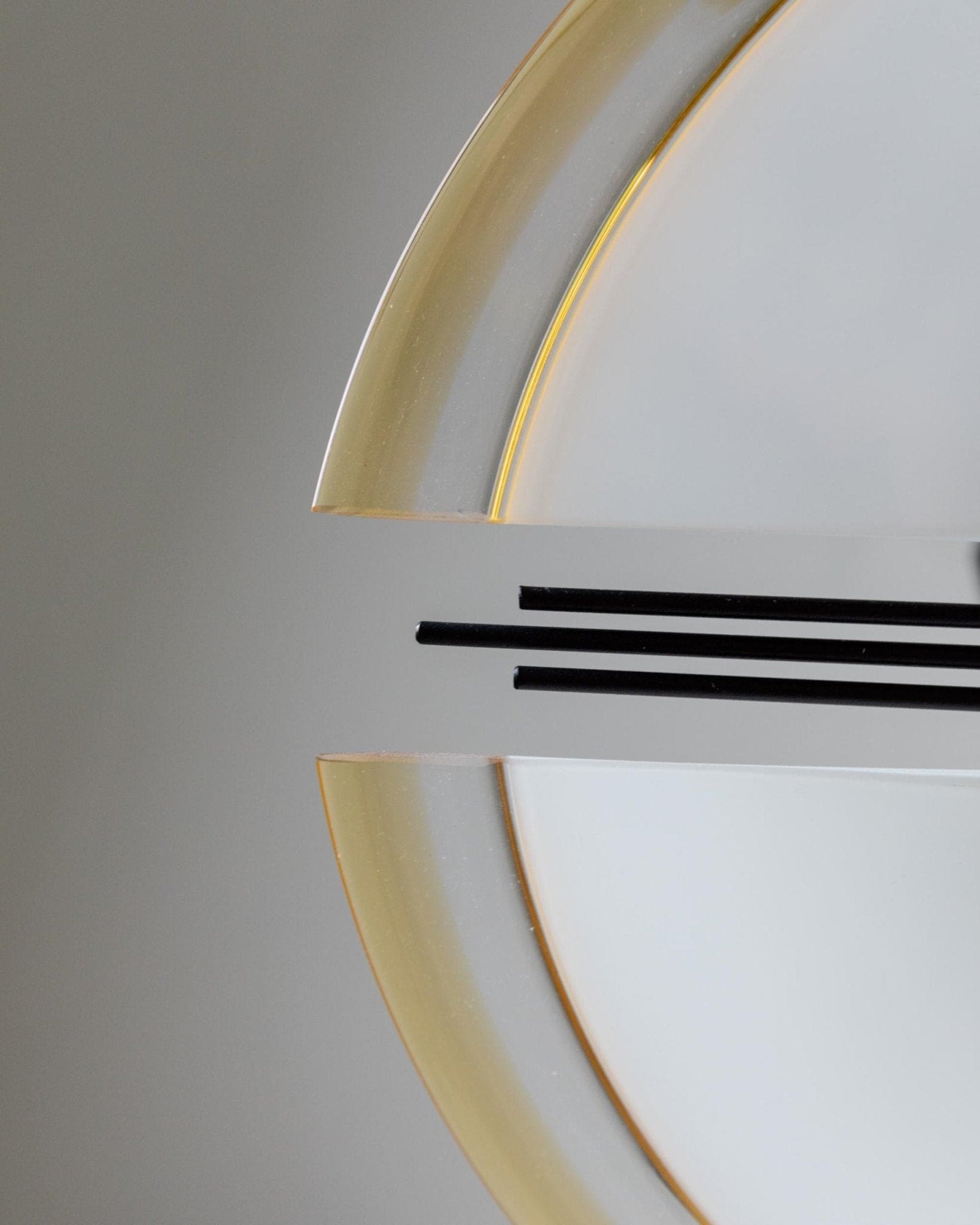 - Très bonne qualité : Cadre en métal noir avec trois montants géométriques, deux grandes plaques semi-circulaires en verre de Murano