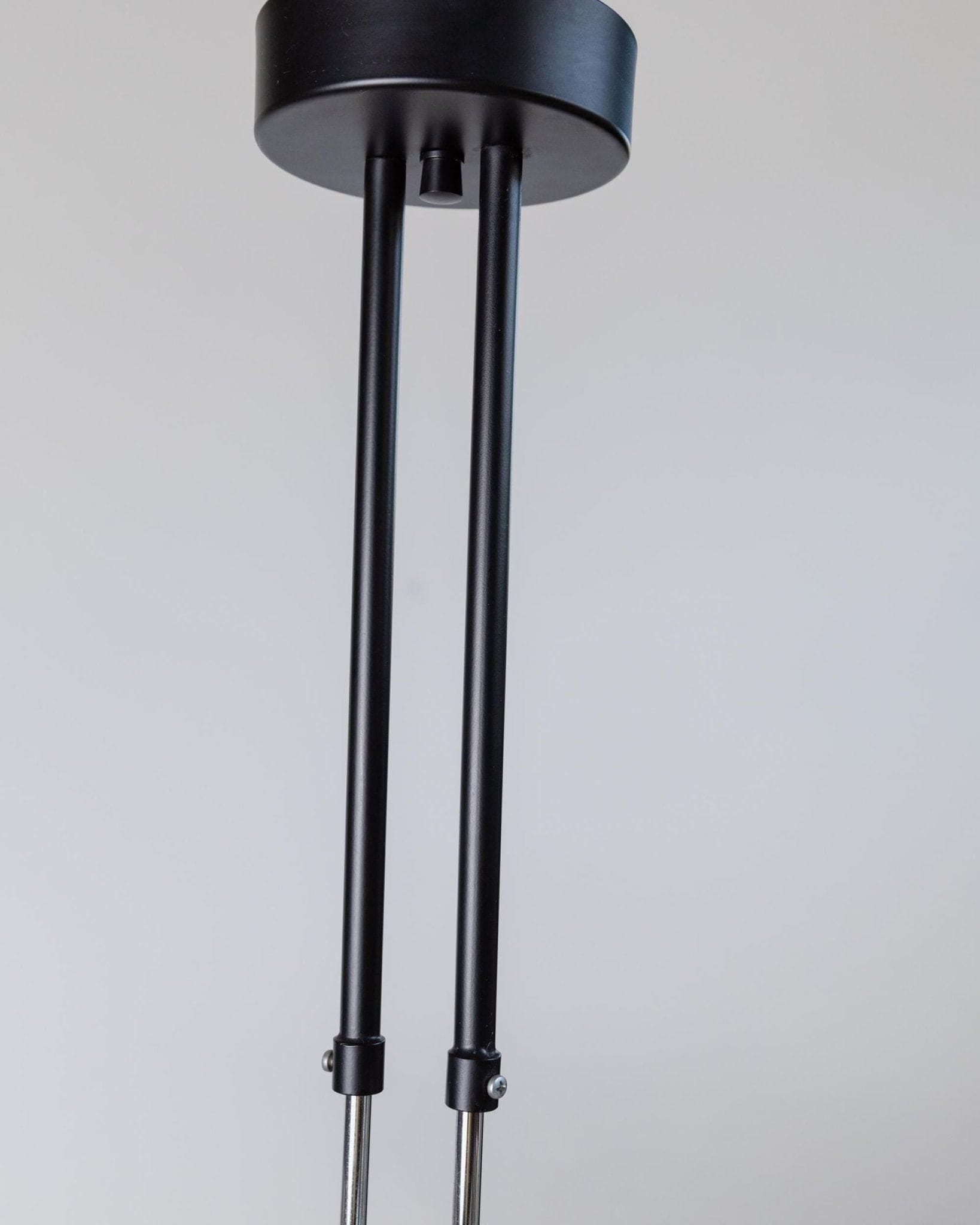 - Cadre minimaliste en métal noir, deux grands abat-jour en verre de Murano coloré