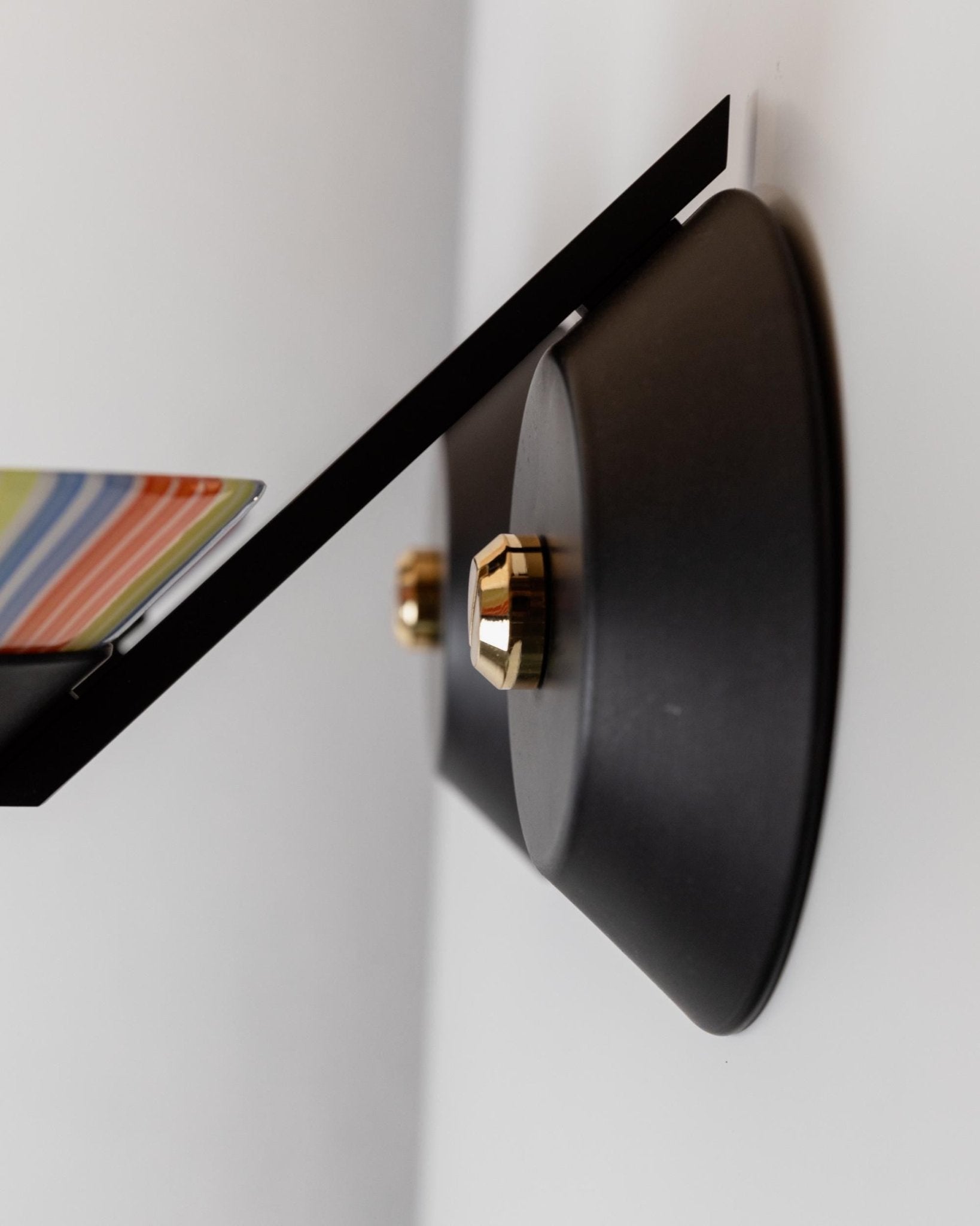 - Abat-jour en verre rayé coloré sur base en métal noir mat
