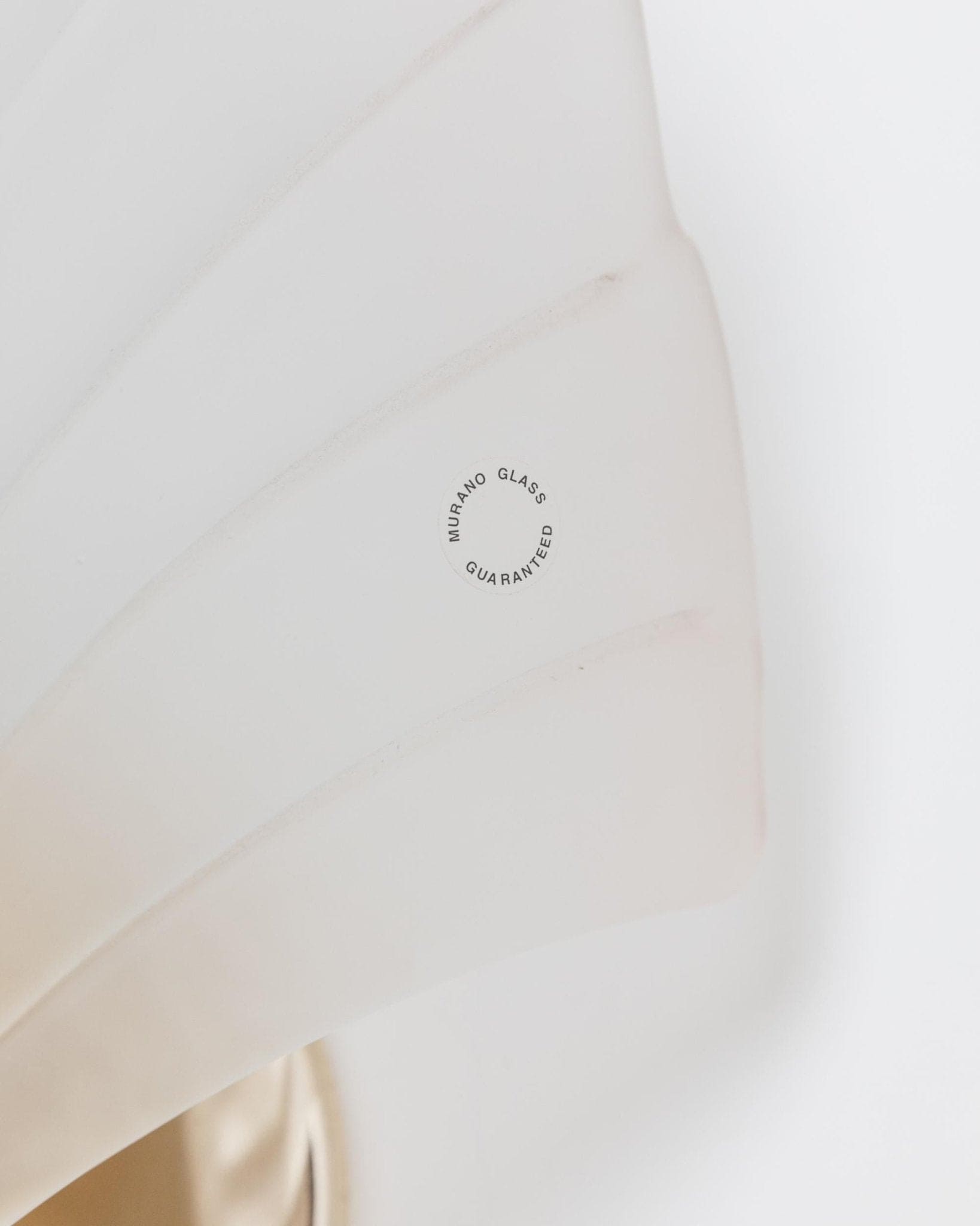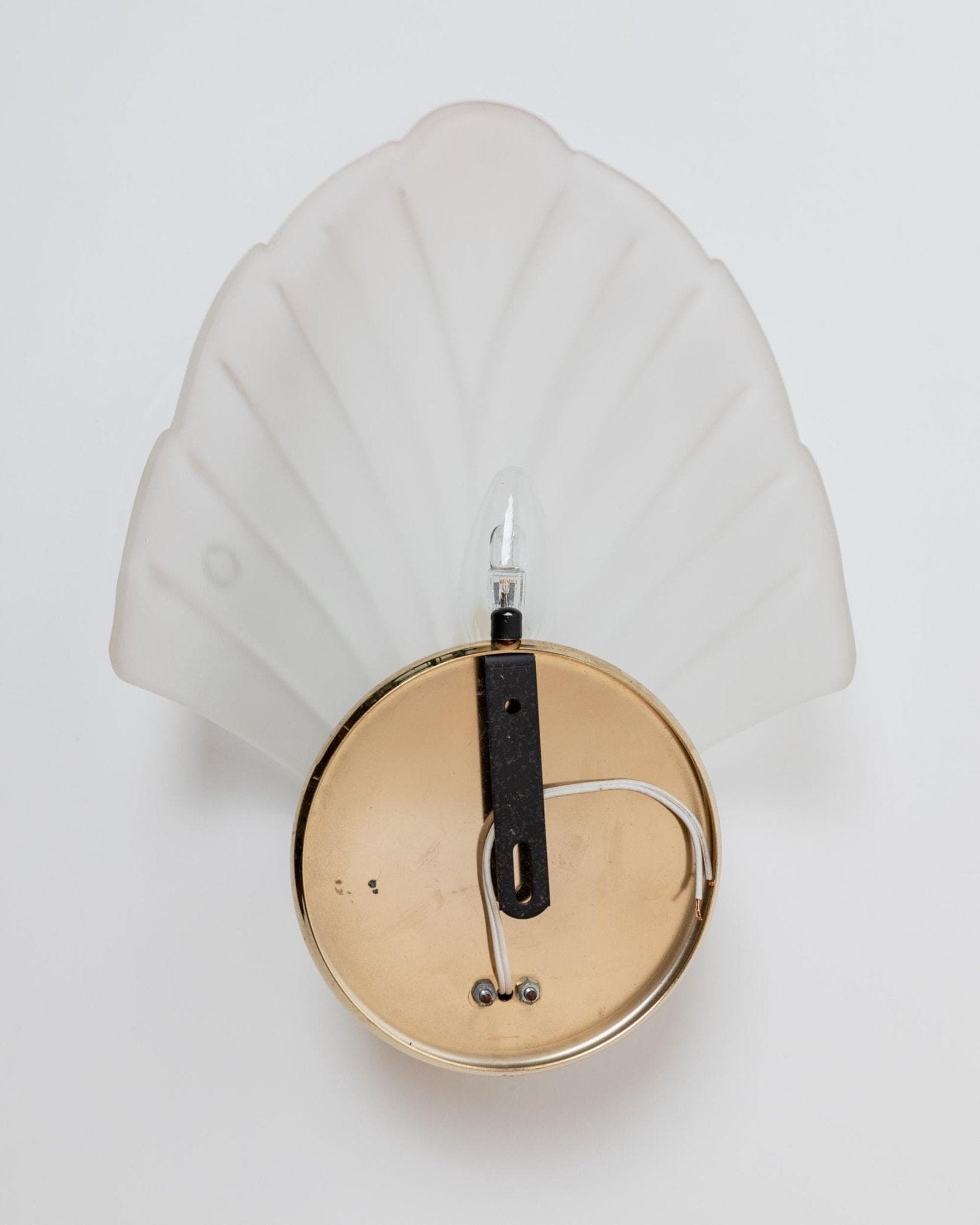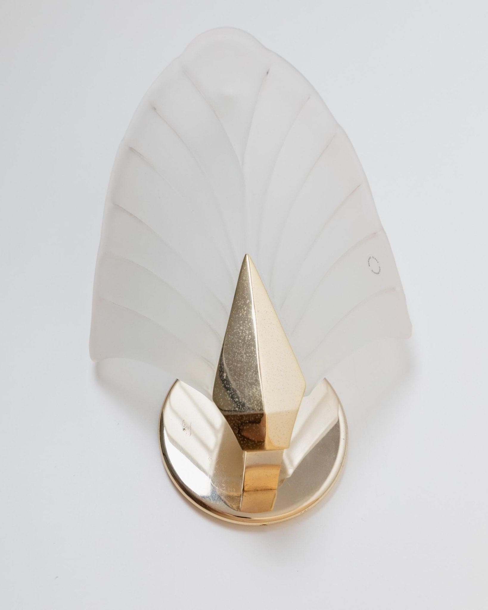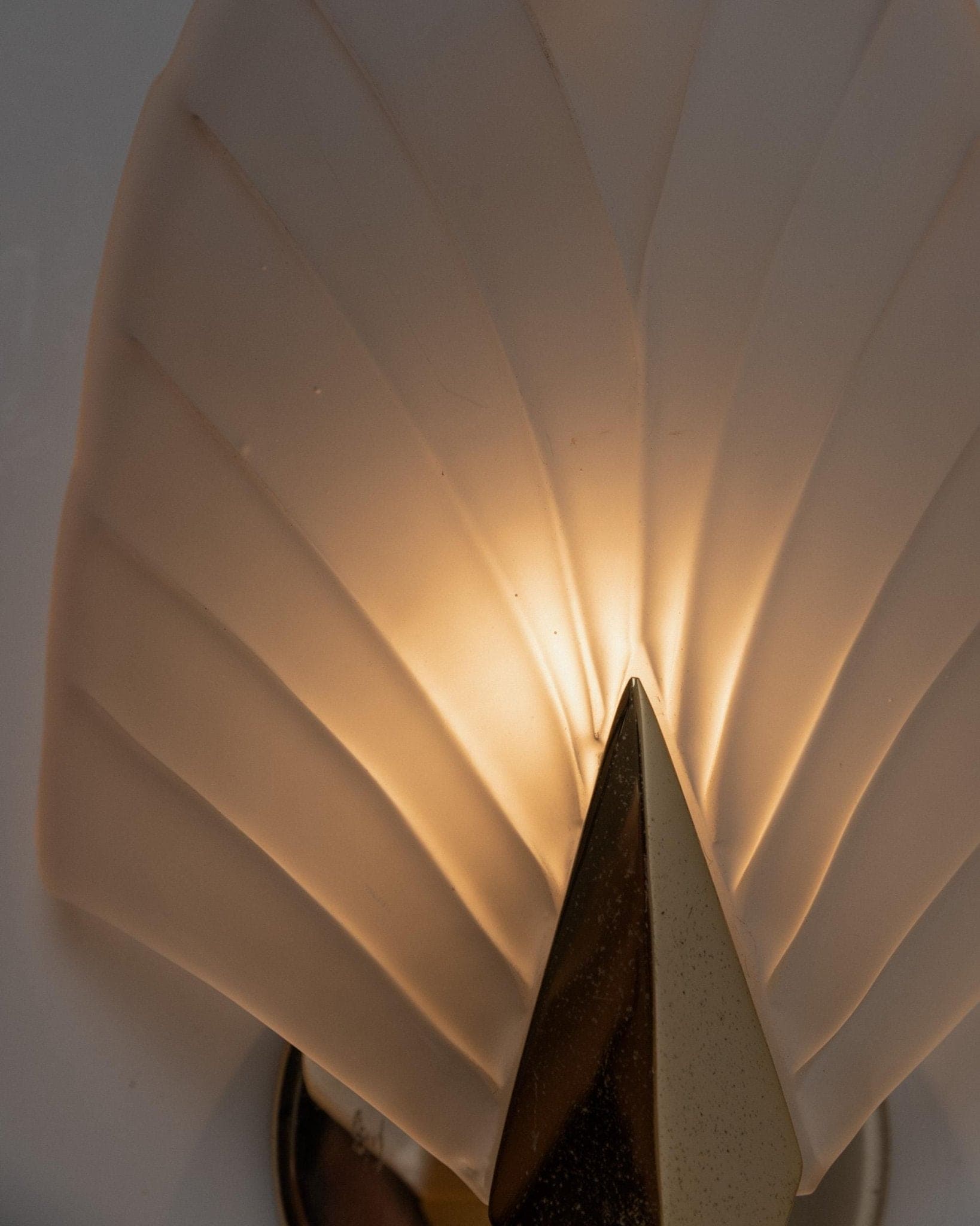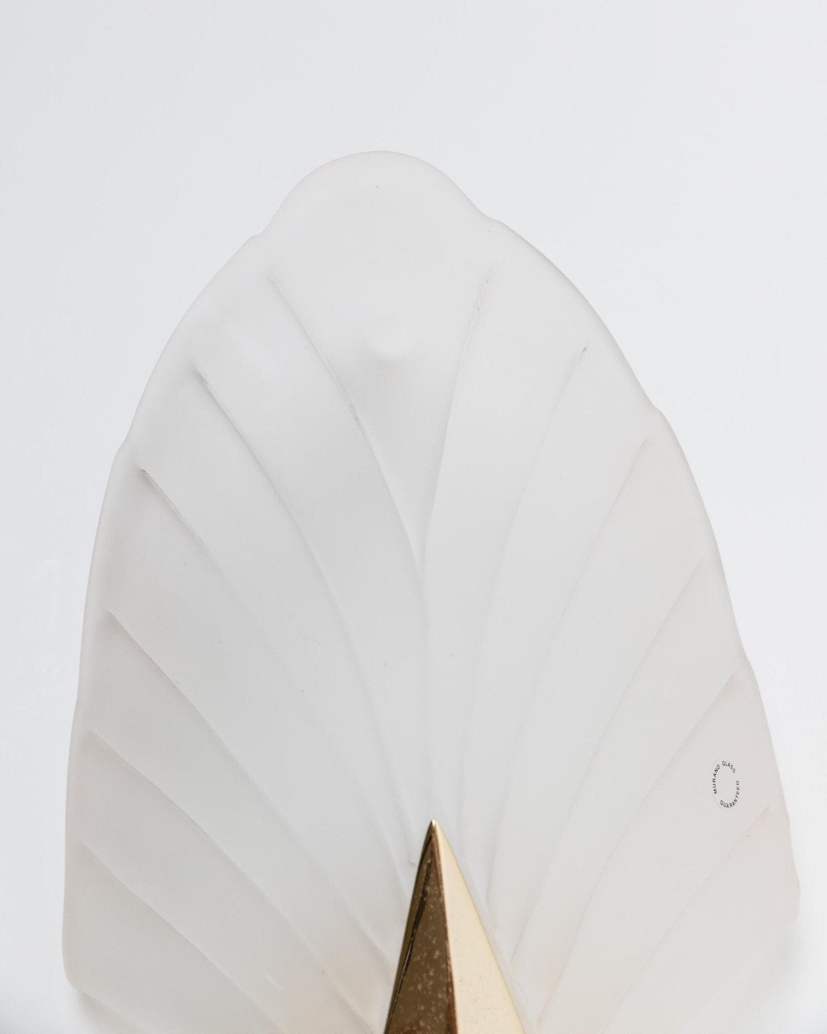 Laissez-vous séduire par l'art du verre italien avec cette applique murale vintage en verre de Murano en forme de coquillage, datant des années 1970. Son design unique, inspiré de l'ère spatiale, associe un verre épais et dépoli à un élégant luminaire en métal doré, apportant une touche de modernité Mid-Century à n'importe quelle pièce. Son esthétique Art déco minimaliste lui confère une allure intemporelle, tandis que la lumière crée des effets hypnotiques sur le mur. Cette applique murale est un véritable atout pour les amateurs de vintage et un cadeau élégant pour les passionnés de design.