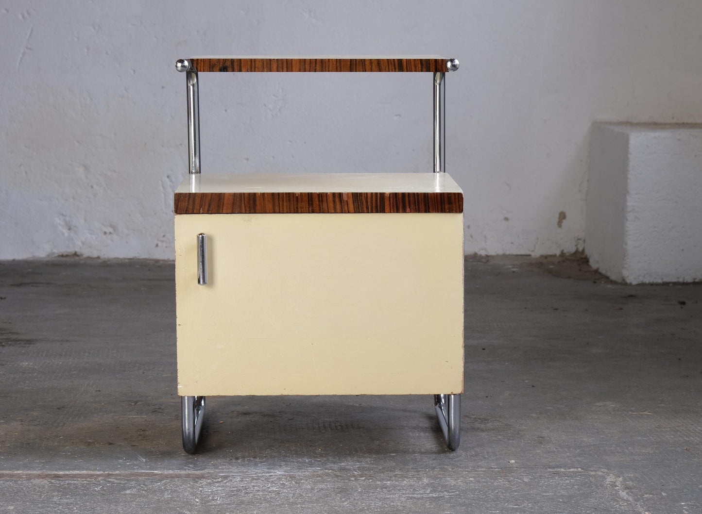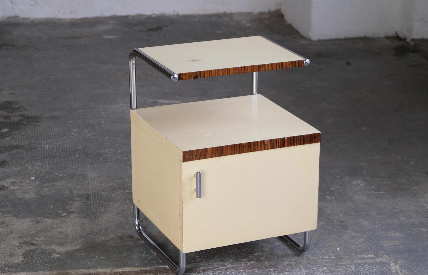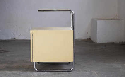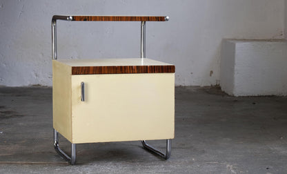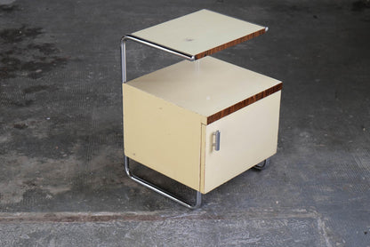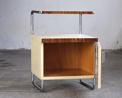 Table de chevet vintage par Mücke Melder Bauhaus années 1930 bois chromé