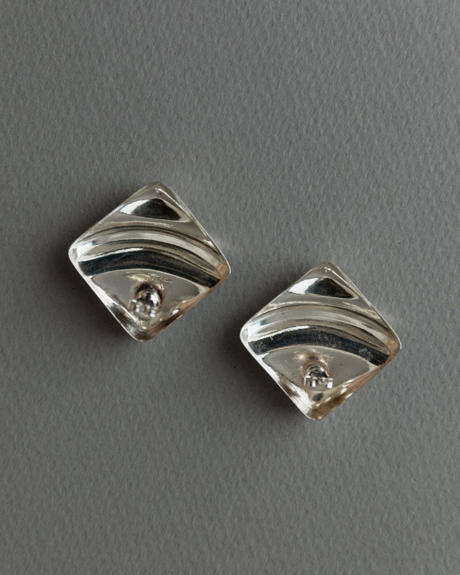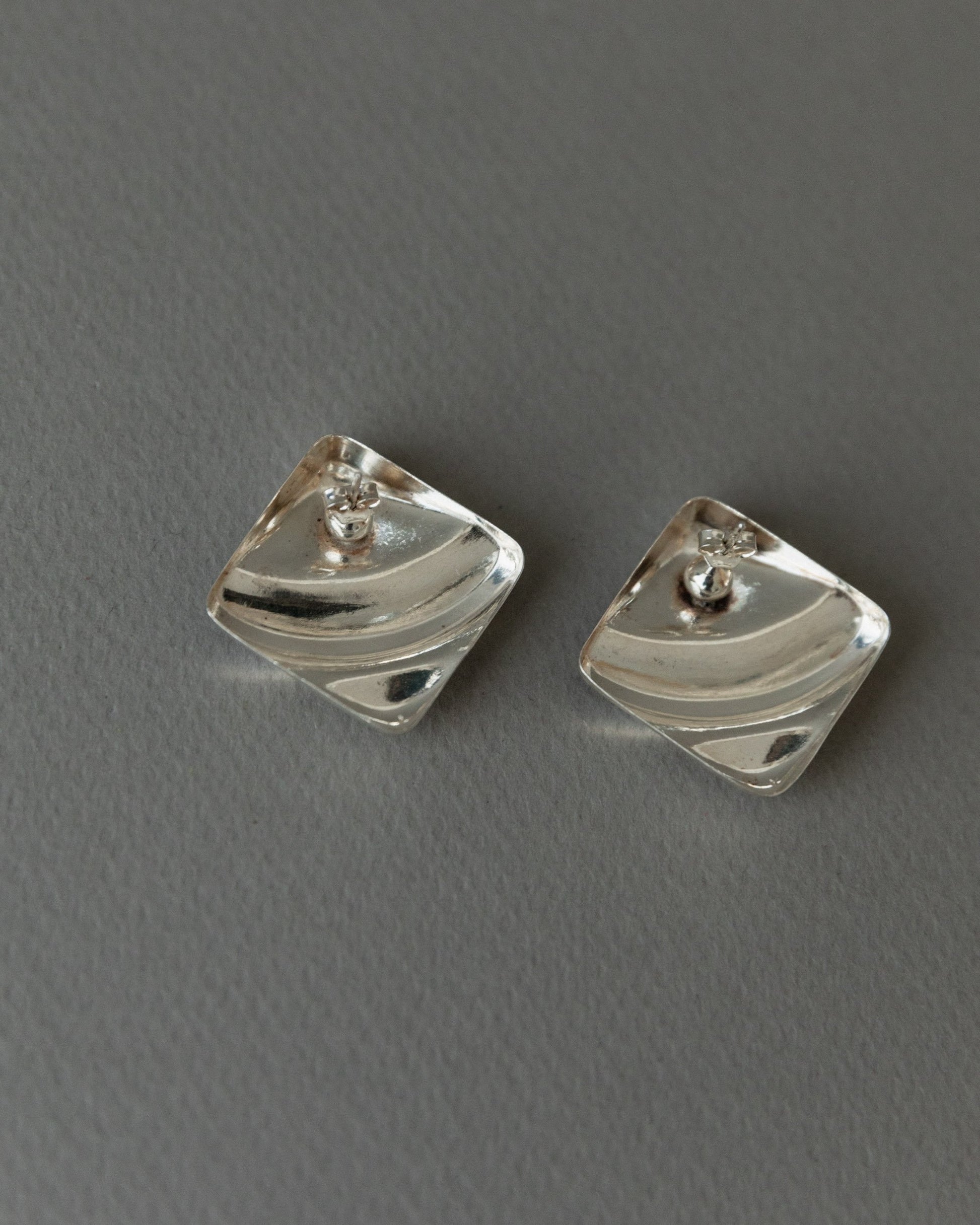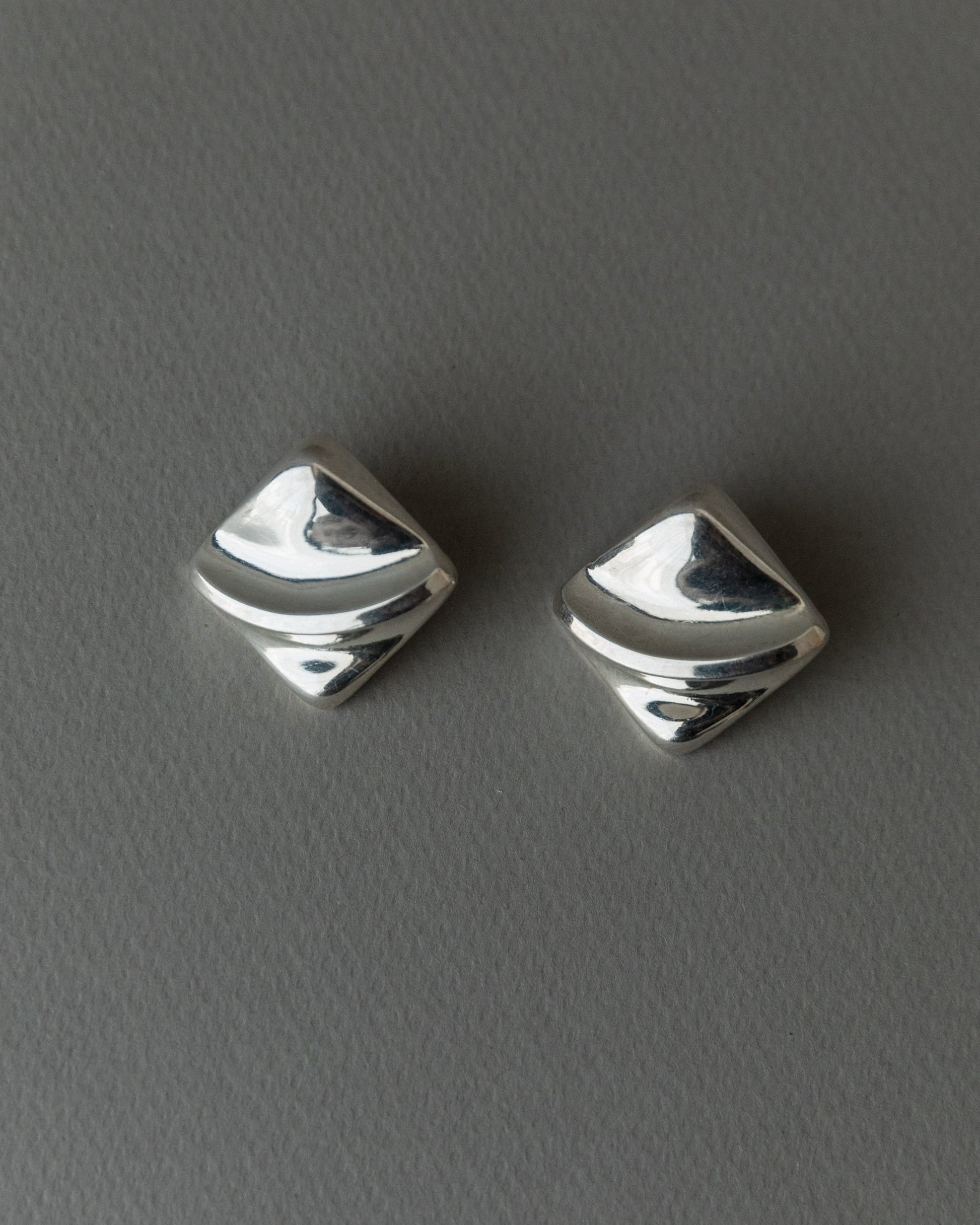 Boucle d'oreille vintage en argent carré design intemporel relief Italie années 1970 rétro