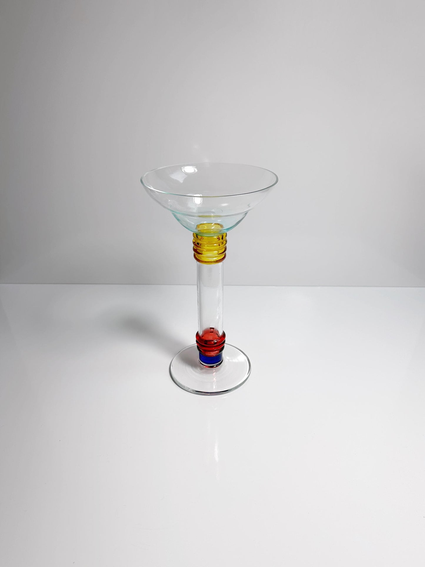 Vase en verre vintage par Leonardo Transparent Géométrique Memphis Milano années 90