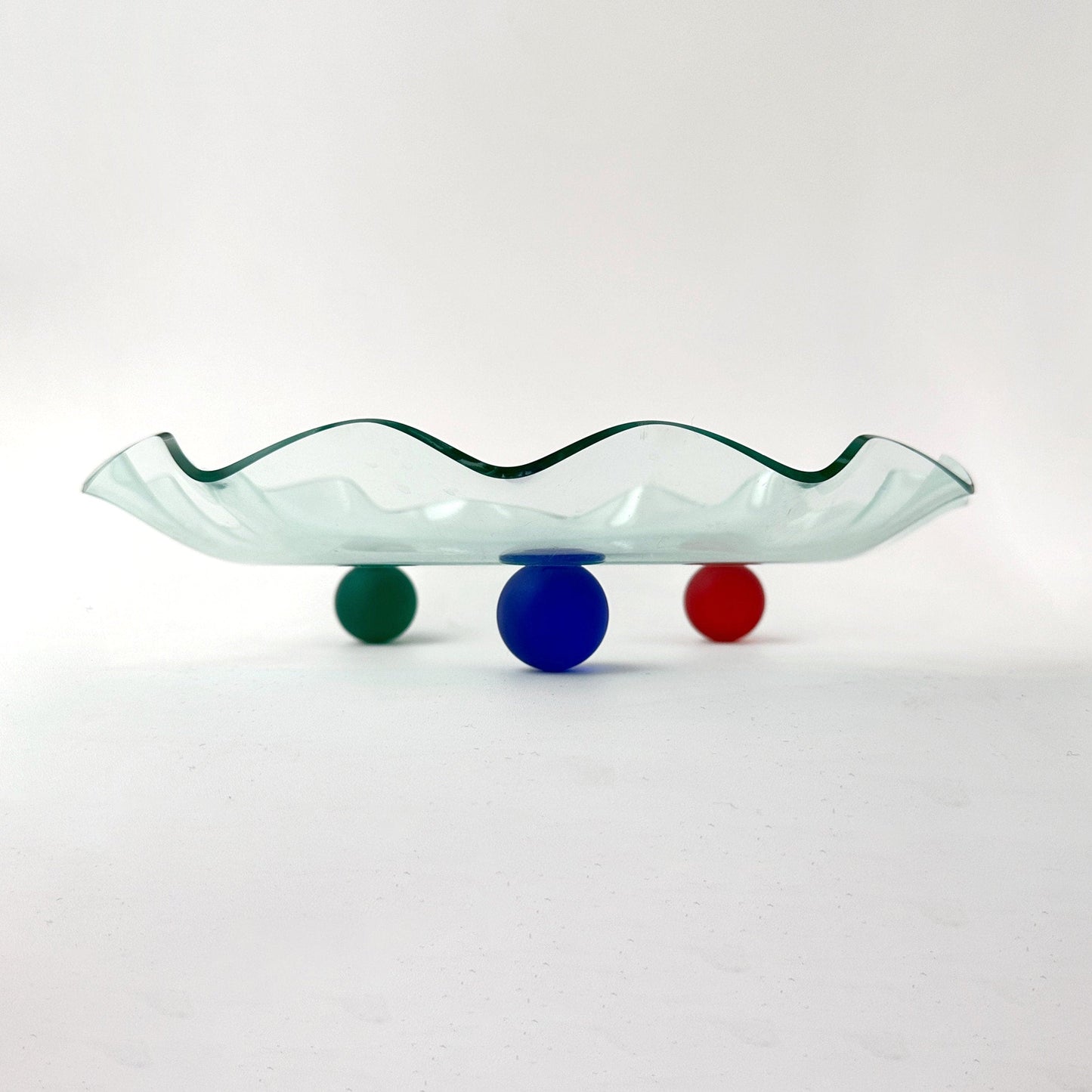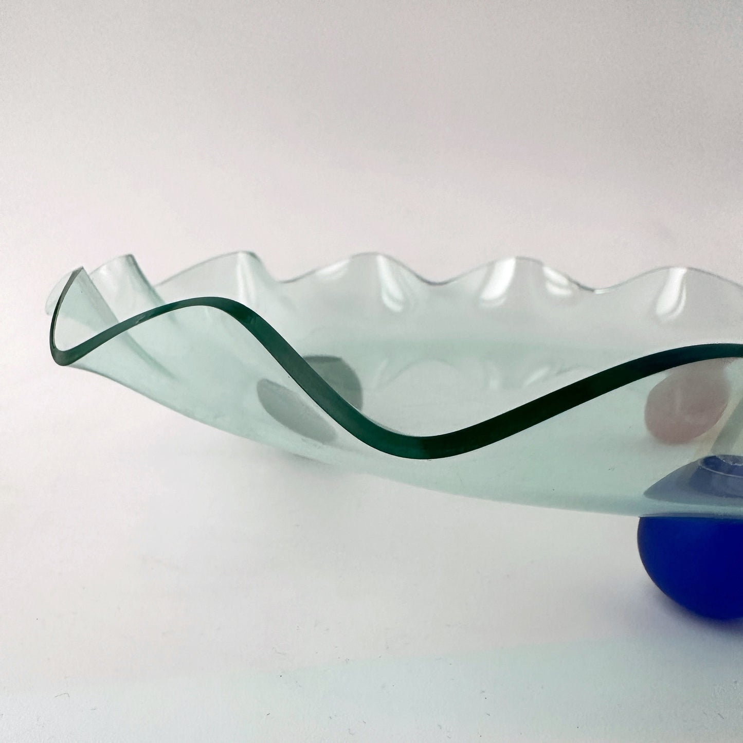 Bol en verre vintage de Laica Cristalleria en verre transparent en forme de vague, Italie, années 1990