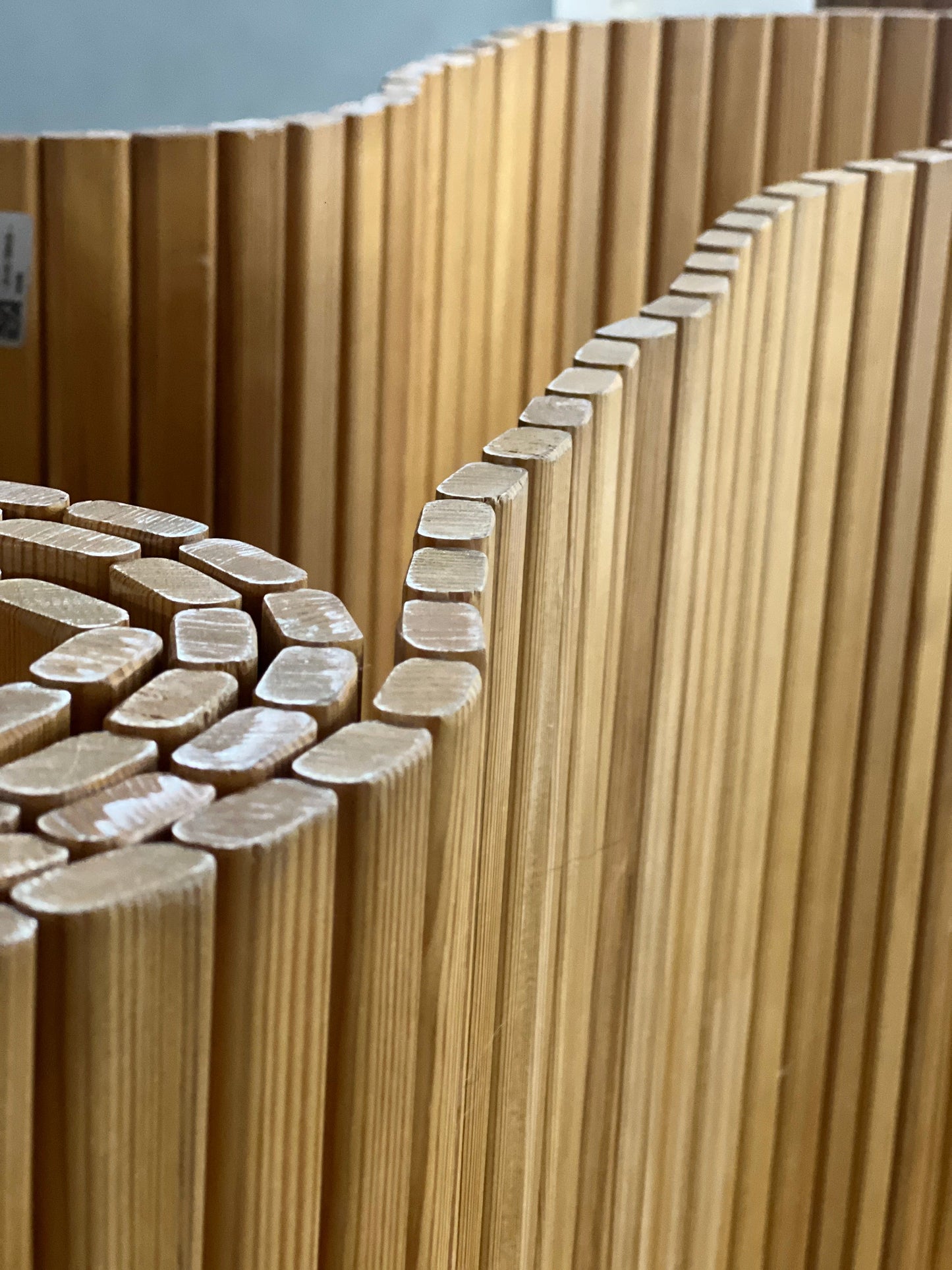 Le paravent Model 100 d'Alvar Aalto, au style vintage, structure subtilement les espaces. Sa structure rythmée et son bois de pin clair apportent une chaleur discrète. Design mid-century avec une touche futuriste, il est à la fois épuré et fonctionnel. Il délimite les espaces, oriente la lumière et les perspectives, et s'adapte à un usage quotidien. Mesurant 200 cm de long et 150 cm de haut, il s'intègre aussi bien dans les espaces de vie que de travail. Fabriqué par Artek d'après le design d'Aalto, c'est un objet intemporel et élégant qui allie fonctionnalité et esthétique. Sa présence est sereine, sa fonction évidente.