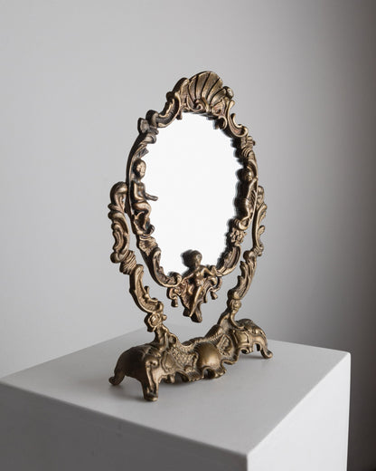 Ce miroir de maquillage de style baroque vintage est un incontournable pour les amateurs de design moderne du milieu du siècle et de l'ère spatiale. La très bonne qualité et la patine authentique lui confèrent un caractère distinctif. Un véritable objet de collection qui apporte histoire et style à votre intérieur.