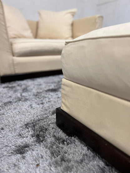 Un fauteuil pour des moments de calme : Ecume de Christian Liaigre, avec son repose-pieds assorti. Sa silhouette est épurée, ses proportions harmonieuses. De subtiles touches de modernité du milieu du siècle se mêlent à l'élégance discrète de Liaigre. La teinte beige crée une atmosphère apaisante et se fond naturellement avec les matériaux existants. L'assise offre un bon maintien sans être encombrante ; le repose-pieds prolonge l'espace et invite à la détente. Une pièce idéale pour le salon, un coin lecture ou un espace de calme – confortable, intemporelle et d'une présence affirmée. L'alliance de lignes épurées et d'un revêtement doux inspire la sérénité sans être austère. Ce fauteuil s'intègre naturellement à différents intérieurs tout en y apportant une touche d'originalité.