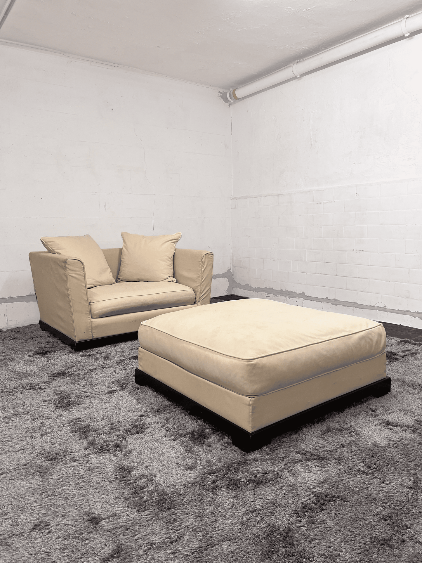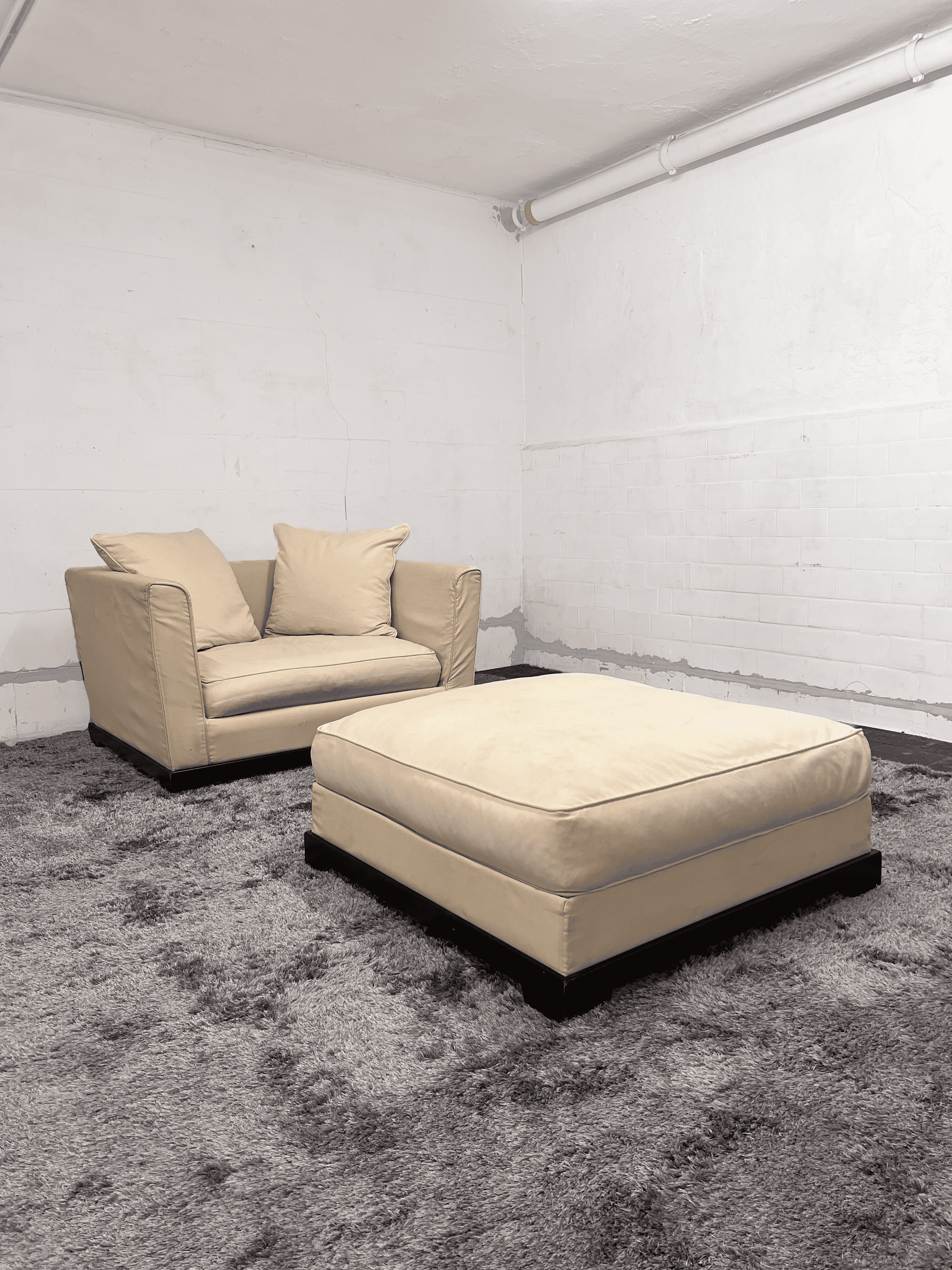 Fauteuil vintage Ecume avec ottoman par Christian Liaigre
