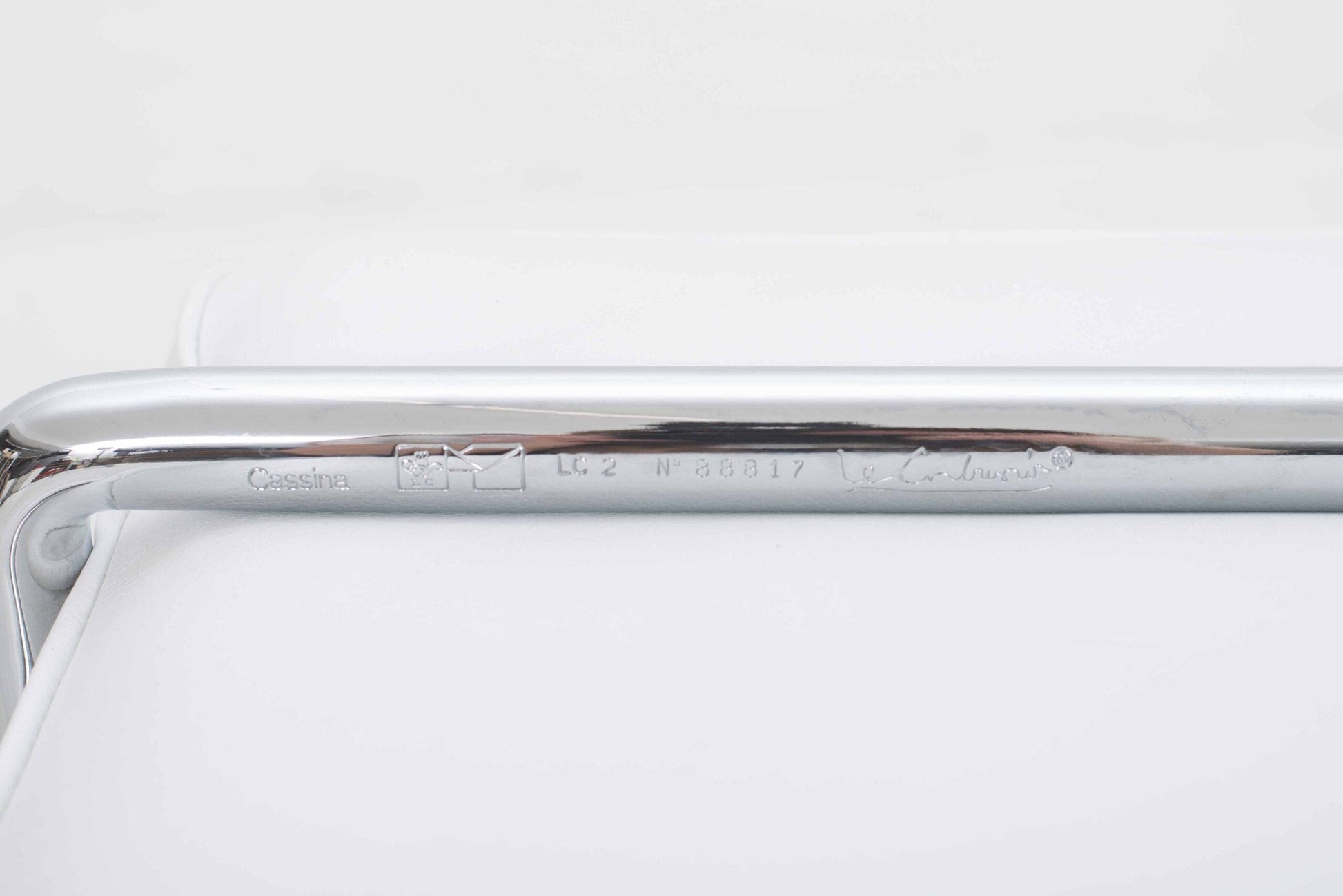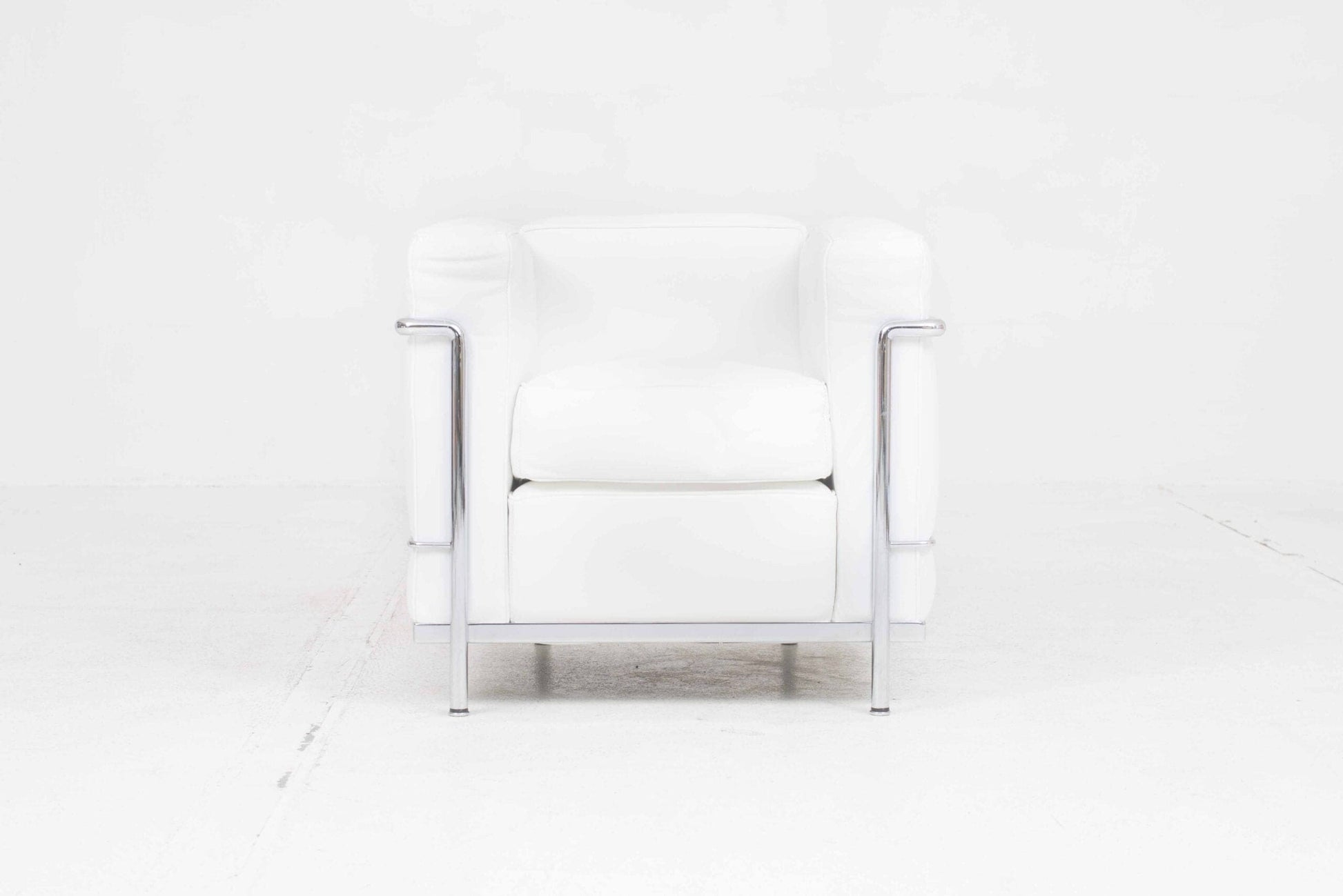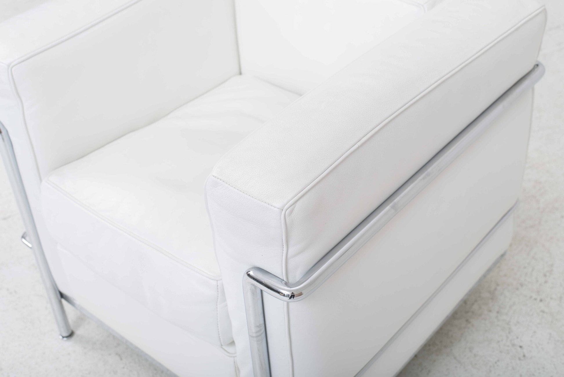 Fauteuil vintage LC2 de Le Corbusier pour Cassina en cuir blanc