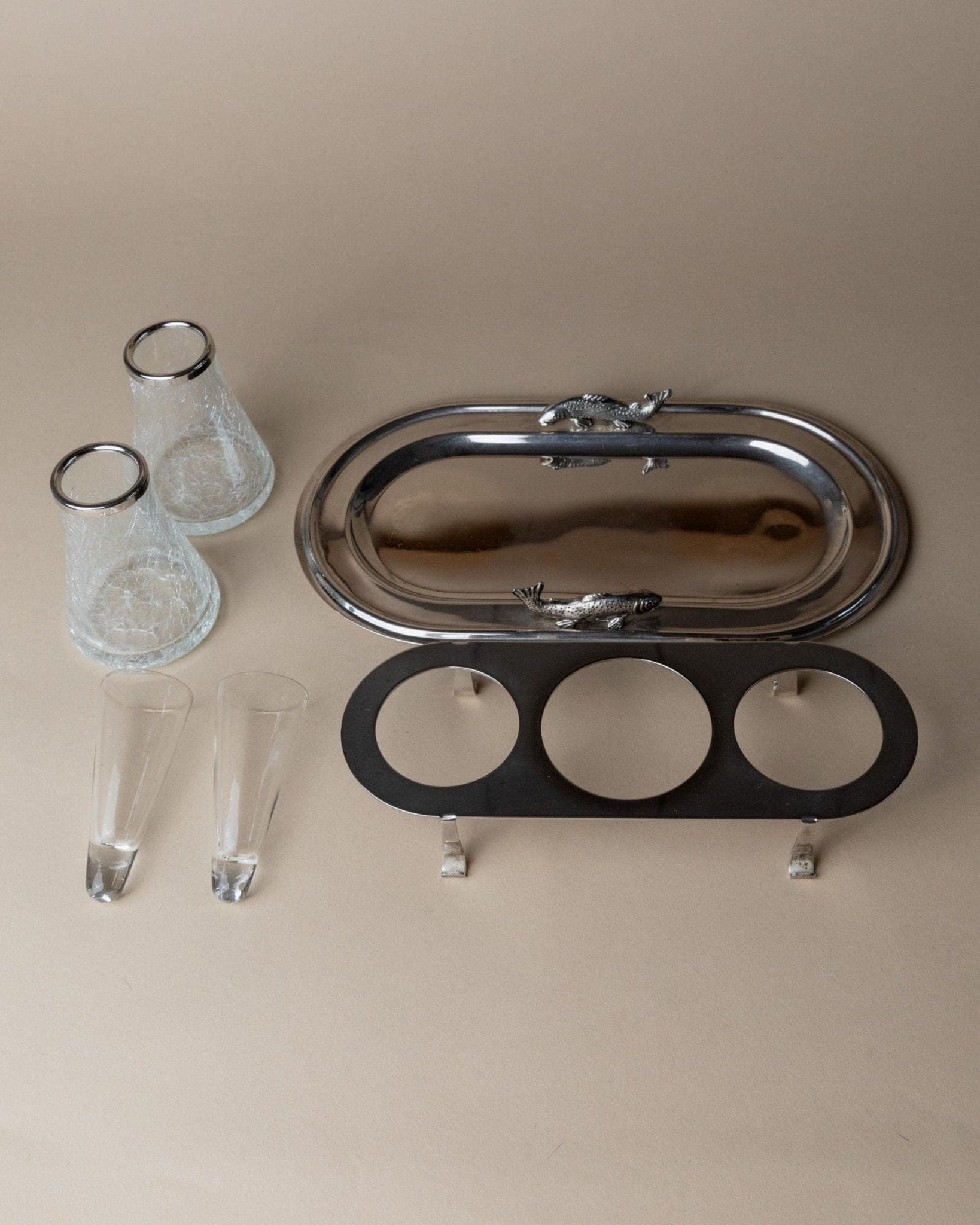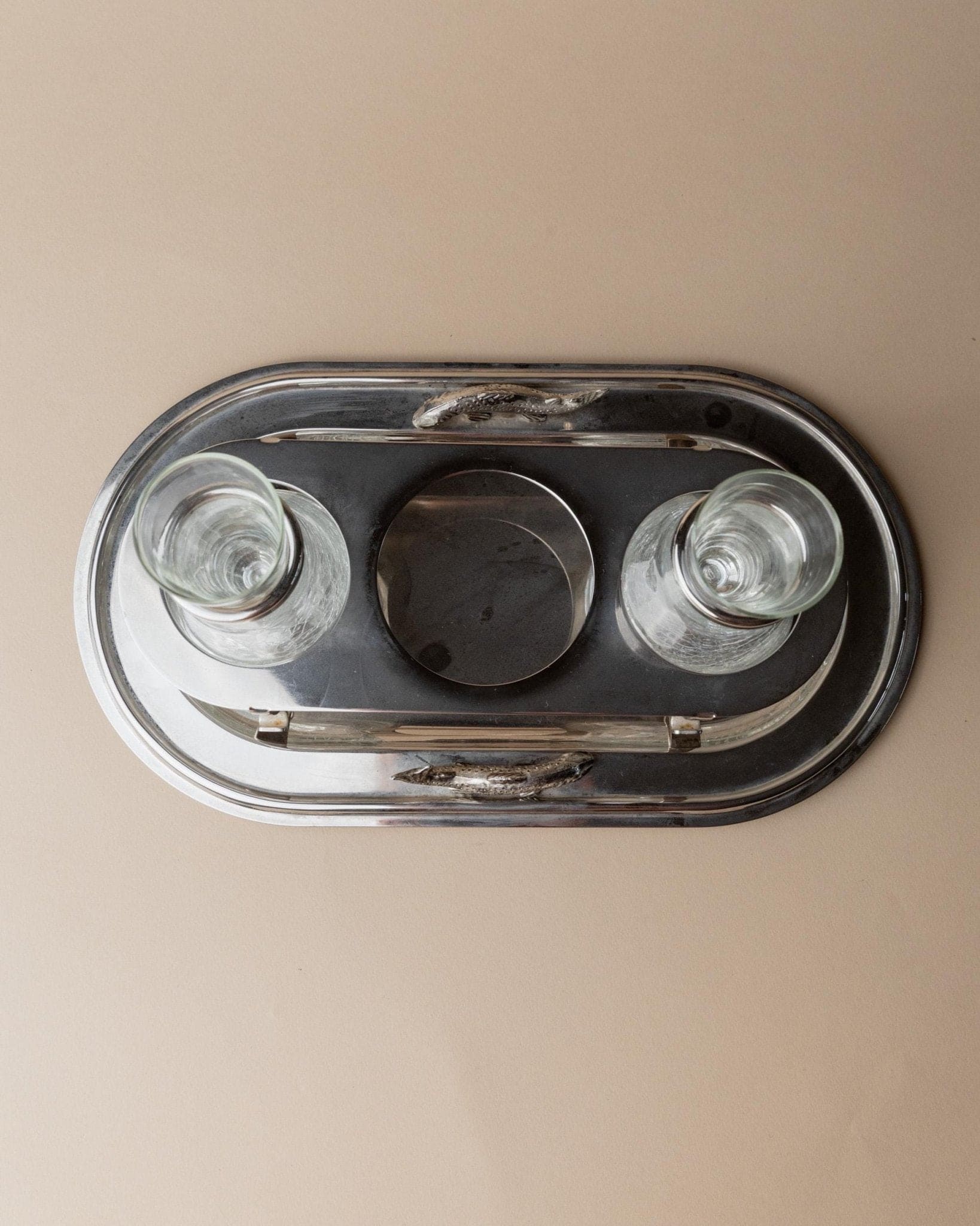 Service vintage argenté pour shots ou caviar Italie années 70 décoration de table