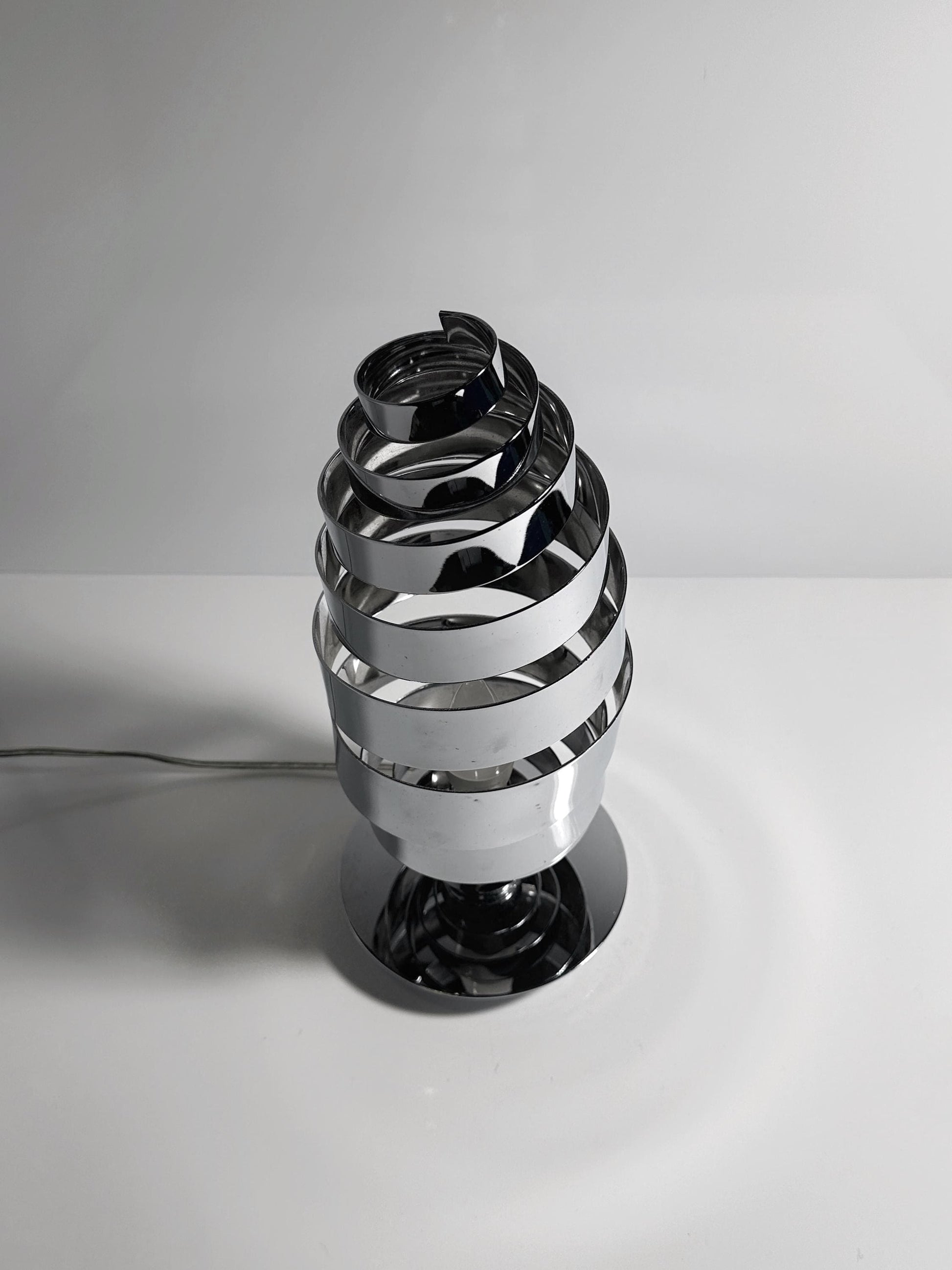 Lampe de table vintage chromée de style Space Age Spoutnik, milieu du siècle, années 60-70, spirale futuriste