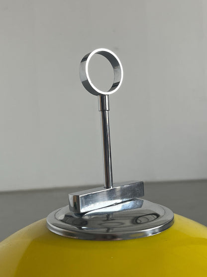 Découvrez l'élégance intemporelle de la lampe de bureau vintage Space Age des années 1980. Cette superbe lampe associe une structure en acier chromé à un abat-jour jaune vif, apportant une touche rétro-futuriste à n'importe quelle pièce. Inspirée des créations emblématiques d'Harvey Guzzini, cette création italienne des années 1970 apporte le charme de l'ère spatiale à votre intérieur. Parfaite pour les amateurs de pièces modernes et vintage du milieu du siècle.