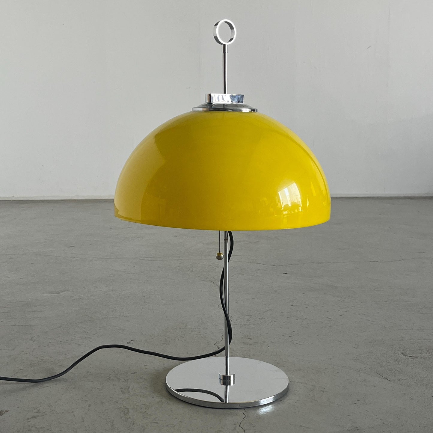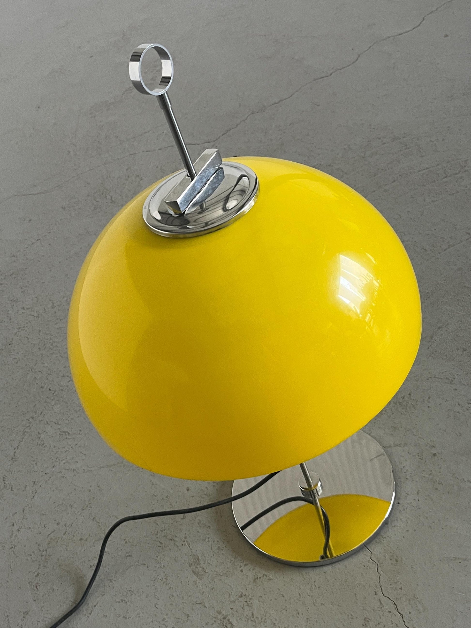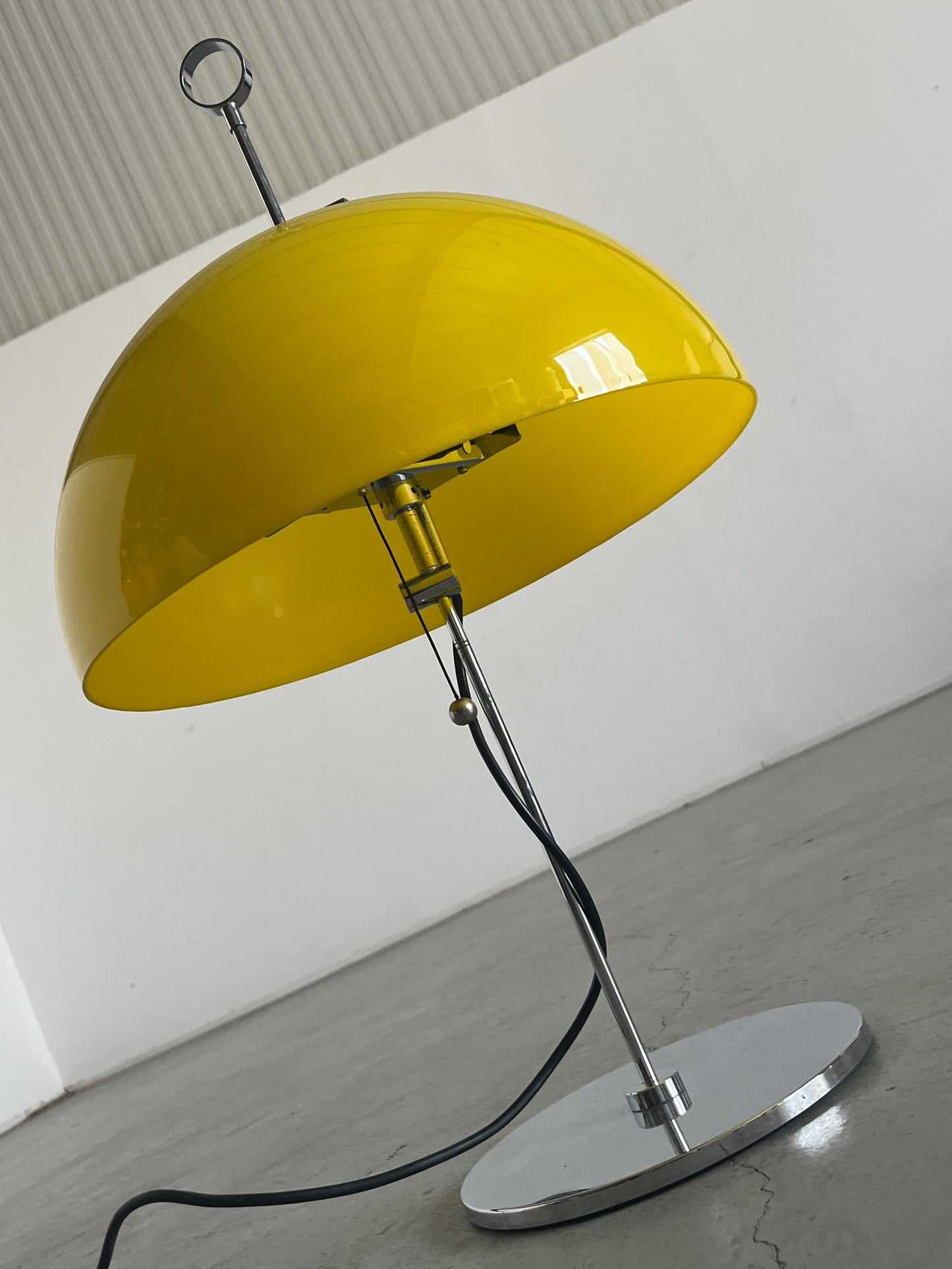 Lampe de bureau vintage Space Age en plastique jaune et acier chromé, Italie, années 1980